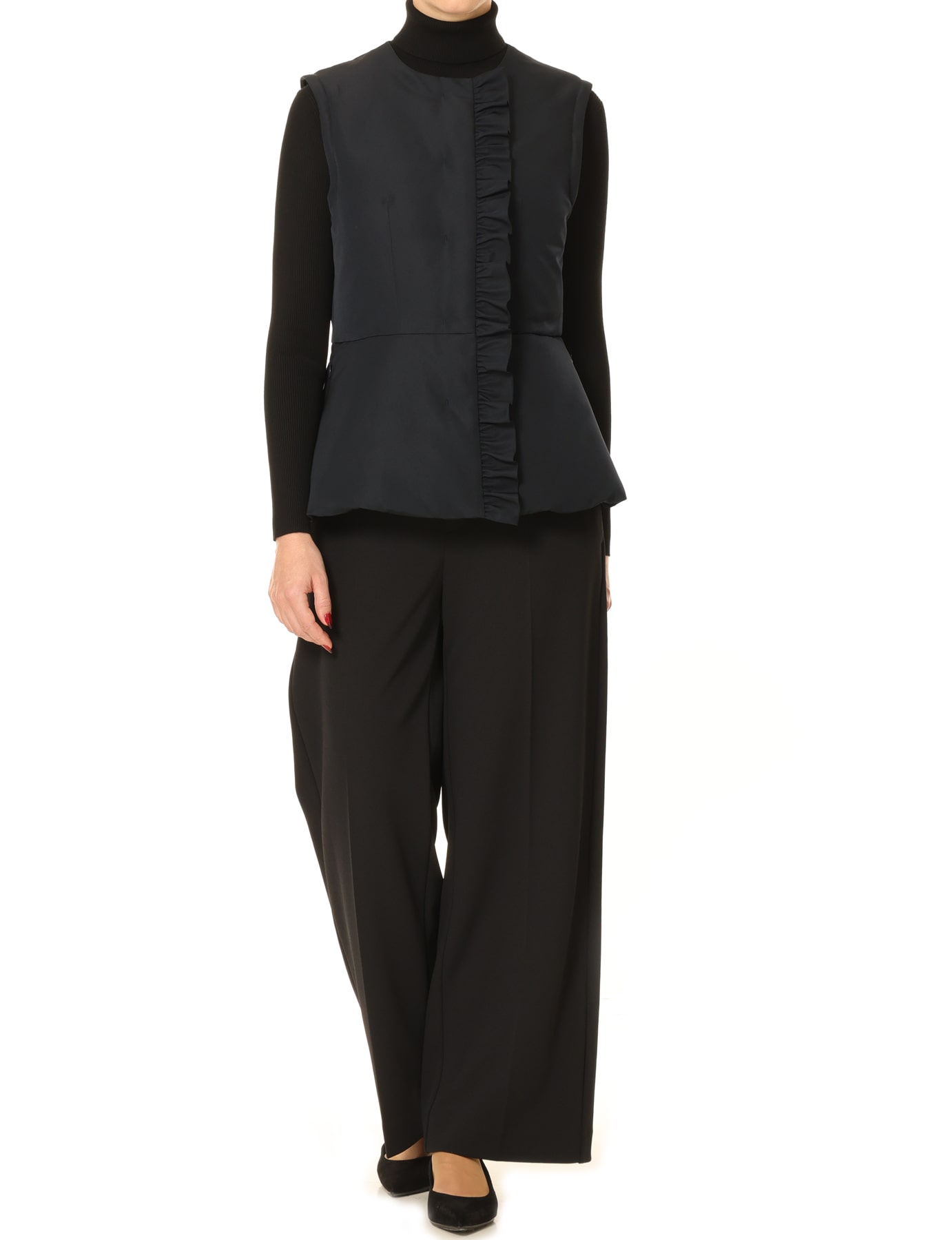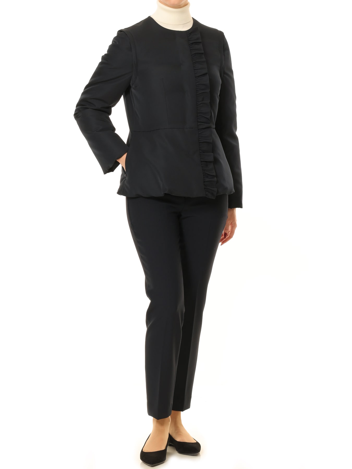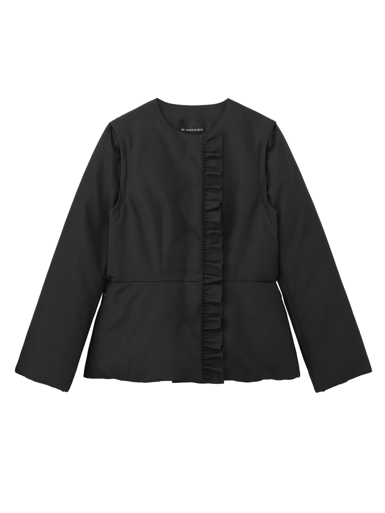 ペプラムシルエットが女性らしく、前身頃に施されたフリルデザインが目を惹くショートダウンコート。アーム部分が取り外せて、2通りの着こなしを楽しめます。保温性に優れ上質な柔らかさと軽さが魅力のダウンに、安定したシルエットへ導くフェザー素材をプラス。程良い丈感ですっきりとした印象に仕上がり、すっきりとしたレギンスやテーパードパンツに合わせていただくとバランスよくお召し頂けます。 ※こちらの商品は、デザインの都合上、脇下部分に開きがあります。何卒ご了承ください。 ・袖はファスナーで取り外し可能(脇下に空きがあります) ・裏地あり ・ファスナー付きポケットあり ・重量約580g ・ジャストフィット。通常サイズをおすすめします。 ・モデル身長171cm/バスト82cm/ウエスト60cm/ヒップ88cm/36サイズ着用 【お問い合わせ品番】 A243-011
