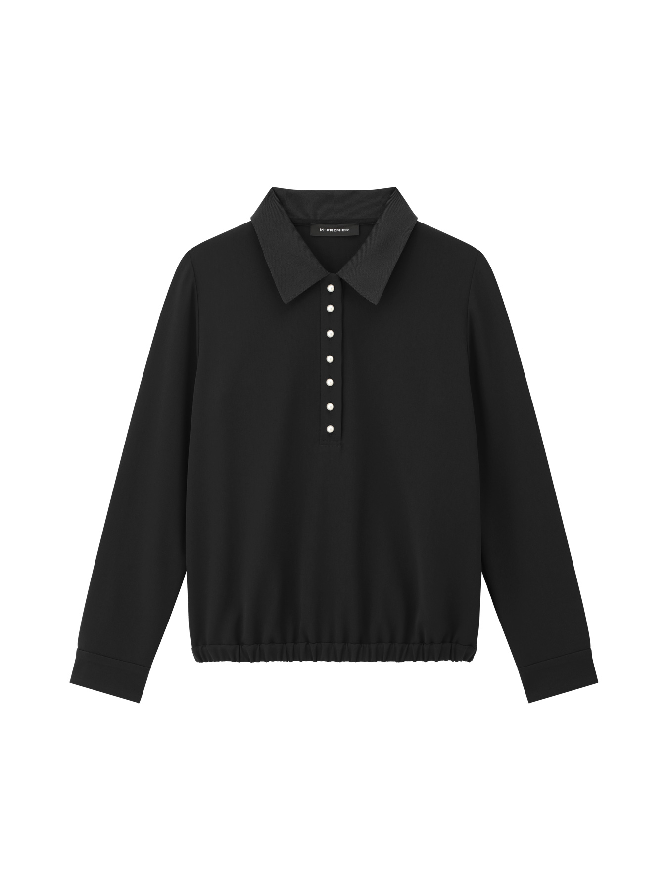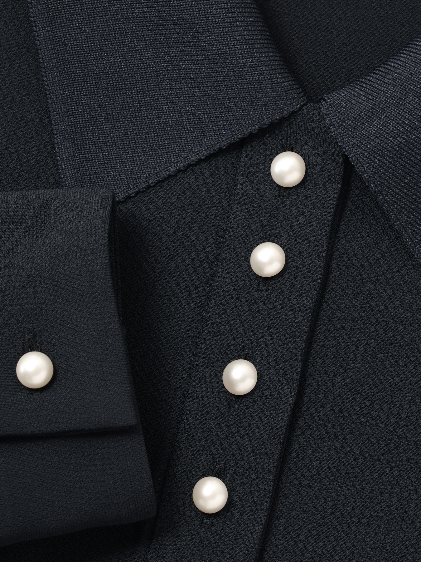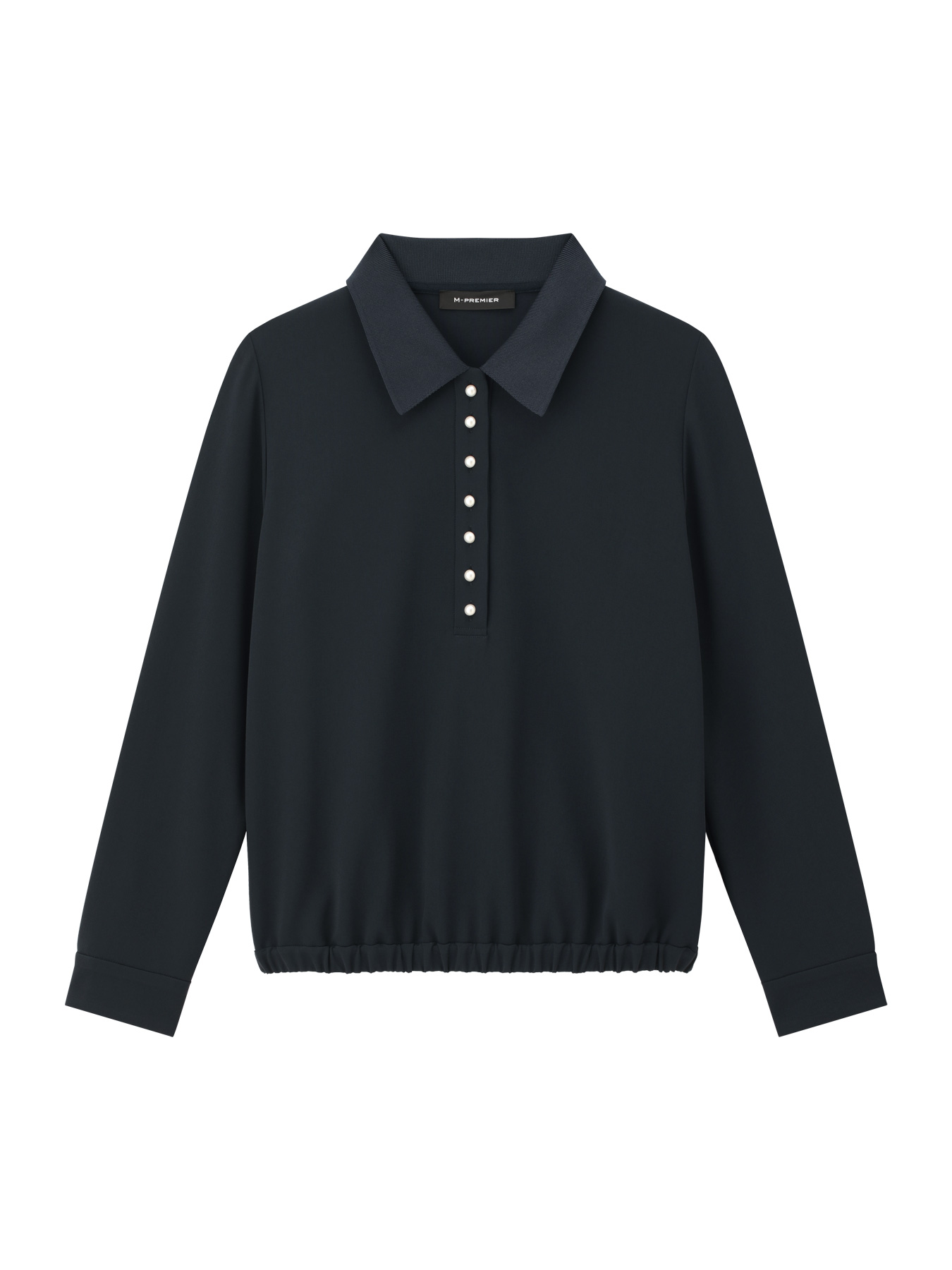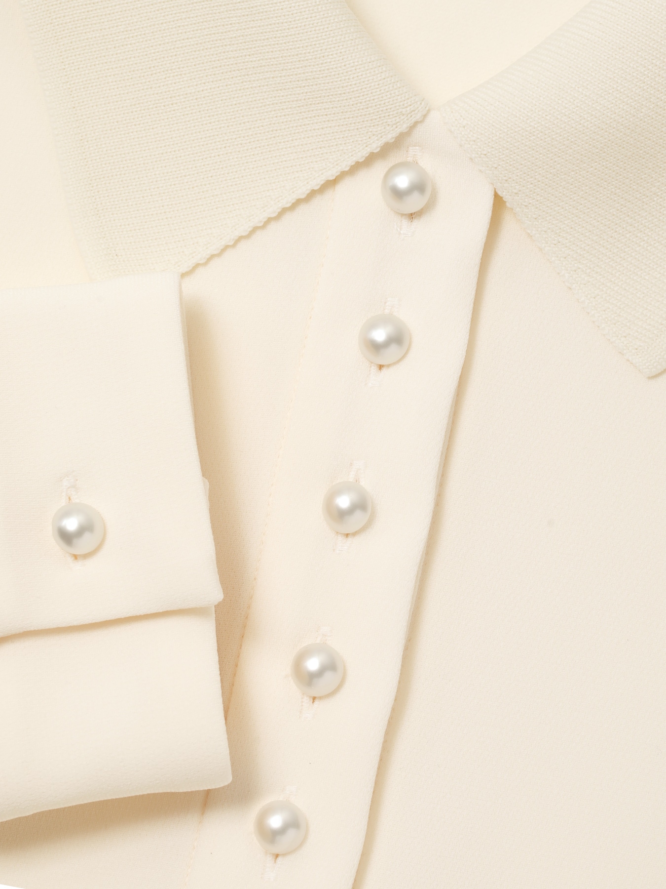 エレガントな雰囲気を保ちながら、デイリーにも取り入れやすいポロデザインのブラウス。薄手の軽やかなダブルクロス素材が、動くたびにふわりと揺れ、上品な印象を引き立てます。裾にゴムを入れることでウエスト位置が自然と整い、どんなボトムともバランスよくスタイリングできるのも魅力です。オフィスでは、テーパードパンツやタイトスカートと合わせてきちんと感のある装いに。オフの日には、柔らかなフレアスカートやワイドパンツと合わせれば、抜け感のある大人のリラックススタイルが完成します。シーンを選ばず活躍し、1枚あるとコーディネートの幅が広がる万能トップスです。 ・ご家庭で手洗いが可能 ・裾ゴム入り ・OFF WHITEは透け感あり ・スチーム可能 ・ジャストフィット。通常サイズをおすすめします。 【お問い合わせ品番】 A347-001