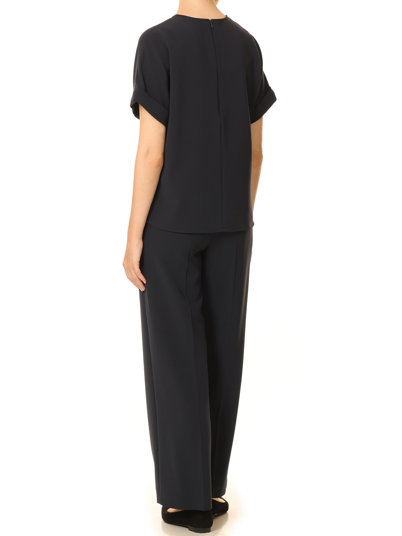前後に配したセンタープレスラインが美脚効果を叶えてくれ、大人で上品な雰囲気のコーディネートへと導くワイドパンツ。ウエストは総ゴム仕様によってストレスフリーで、前立ては飾りなのでウエスト周りがすっきりとお召いただけます。レッグラインを拾わないこちらのワイドパンツを取り入れていただくと、オンオフ問わずきちんと感がありながらも旬なスタイルが完成します。高級感漂うダブルクロスの素材感はシルエットの美しさを際立たせ、ストレッチ性によりストレスフリーな着心地も魅力。合わせるアイテム次第でロングシーズン活躍させていただけます。同素材を使用したダブルクロスラグランロールアップスリーブカットソー(A346-011)とセットアップで着用いただくのもおすすめ。 ・ご家庭で手洗い可能 ・ポケットあり ・ウエストゴムあり ・飾り前立て ・スチーム可能ですが、過度なスチームを当てることにより、水分を多く含んでしまうと縮みや波打ちが発生しやすくなりますのでご注意ください。 ・ジャストフィット。通常サイズをお勧めします。 【お問い合わせ品番】 A546-010