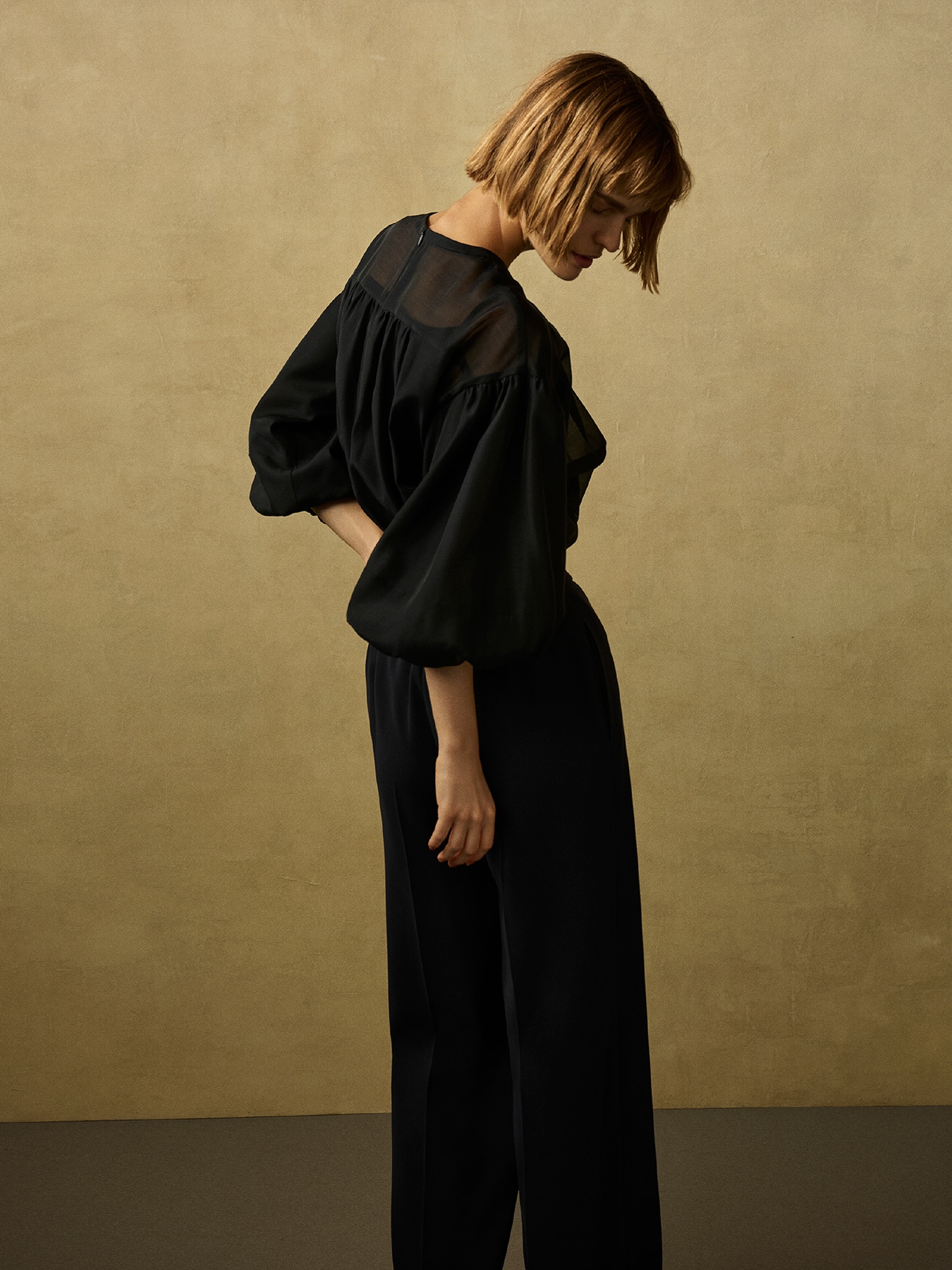 前後に配したセンタープレスラインが美脚効果を叶えてくれ、大人で上品な雰囲気のコーディネートへと導くワイドパンツ。ウエストは総ゴム仕様によってストレスフリーで、前立ては飾りなのでウエスト周りがすっきりとお召いただけます。レッグラインを拾わないこちらのワイドパンツを取り入れていただくと、オンオフ問わずきちんと感がありながらも旬なスタイルが完成します。高級感漂うダブルクロスの素材感はシルエットの美しさを際立たせ、ストレッチ性によりストレスフリーな着心地も魅力。合わせるアイテム次第でロングシーズン活躍させていただけます。同素材を使用したダブルクロスラグランロールアップスリーブカットソー(A346-011)とセットアップで着用いただくのもおすすめ。 ・ご家庭で手洗い可能 ・ポケットあり ・ウエストゴムあり ・飾り前立て ・スチーム可能ですが、過度なスチームを当てることにより、水分を多く含んでしまうと縮みや波打ちが発生しやすくなりますのでご注意ください。 ・ジャストフィット。通常サイズをお勧めします。 【お問い合わせ品番】 A546-010