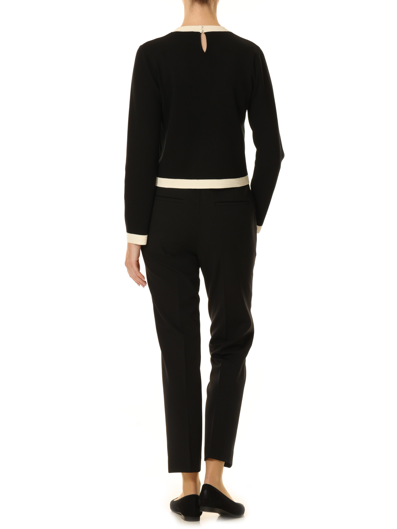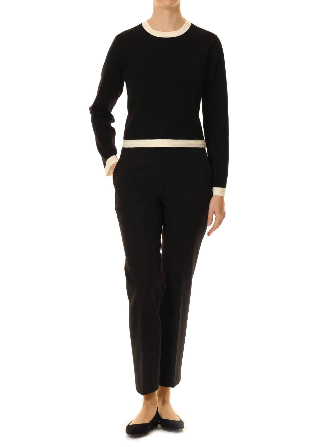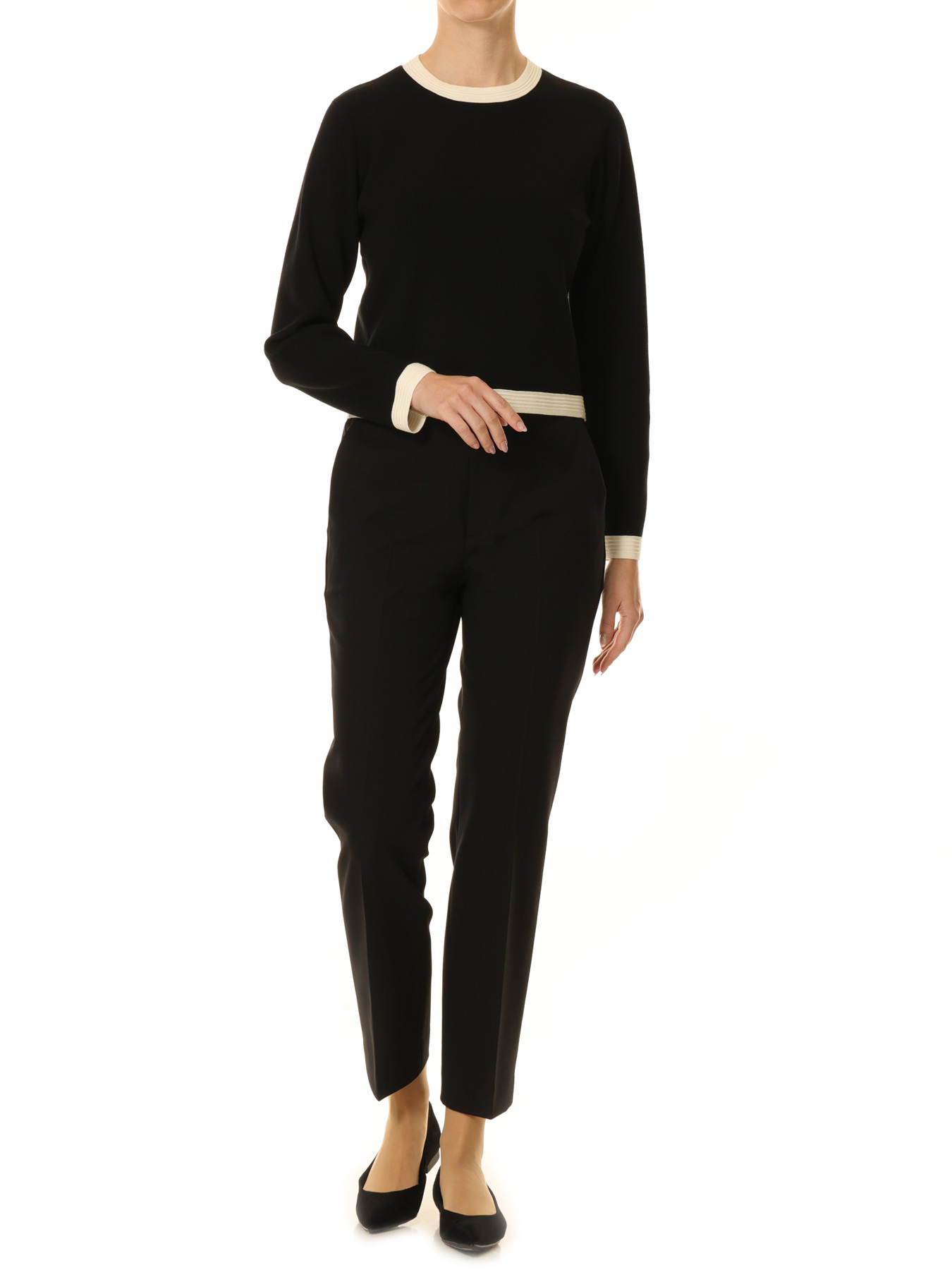 襟ぐりと袖口に施したコントラストの効いたバイカラーデザインが、シンプルな中に上品なアクセントを添えるニットプルオーバー。レーヨンをメインにしたしなやかなニット素材は、季節をまたいで活躍する快適な着心地が魅力です。やや短めのすっきりとした丈感がボトムスを選ばず、合わせるアイテム次第で表情が変わる万能な一枚。スカートと合わせれば女性らしくエレガントに、テーパードパンツと合わせれば知的で端正な印象に。デイリーからお仕事シーンまで、幅広くスタイリングをお楽しみいただけます。 ・ご家庭で手洗い可能 ・ジャストフィット。通常サイズをお勧めします。 【お問い合わせ品番】 A746-023
