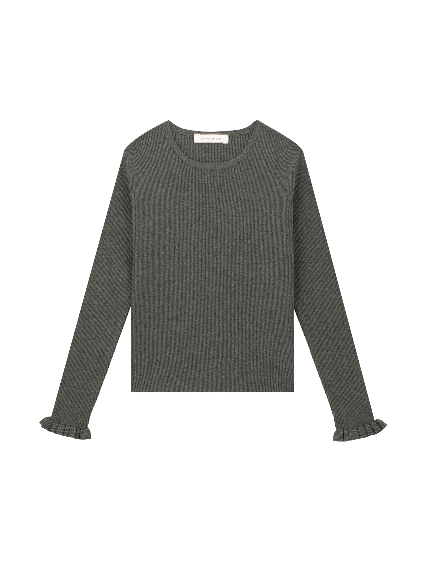 フリルスリーブリブニットプルオーバー