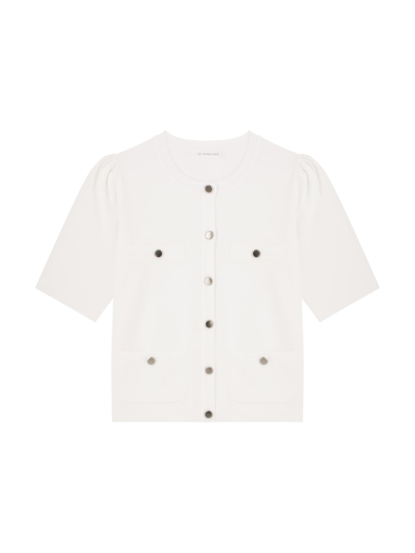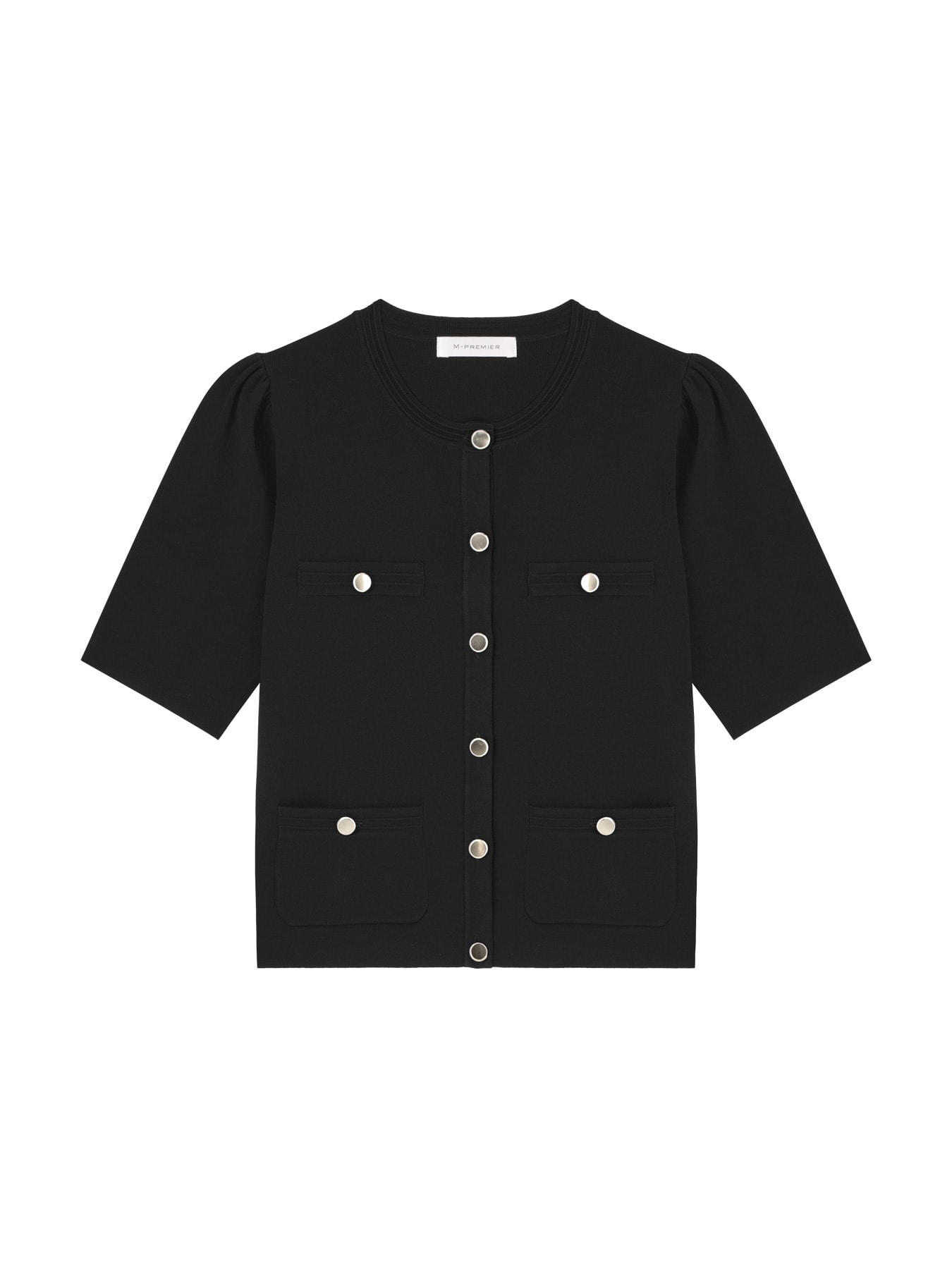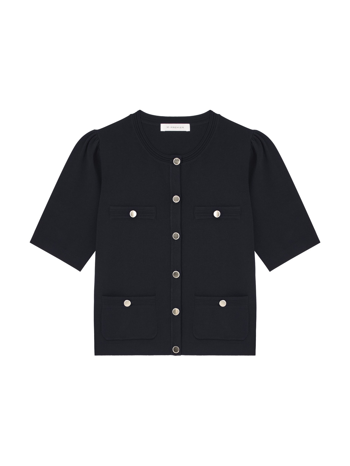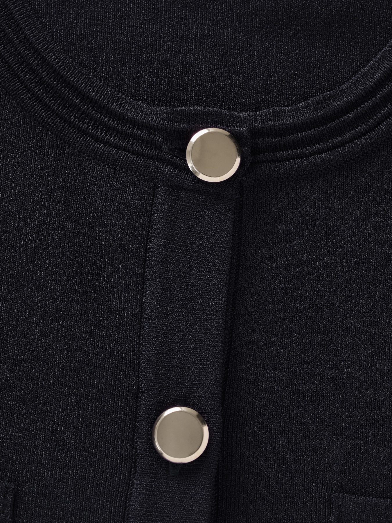 ミニマルなフォルムに上品なアクセントを効かせた、エレガントなニットカーディガン。フロントに並ぶメタルボタンが洗練された輝きを添え、シンプルな中にも凛とした存在感を放ちます。さらに、襟ぐりとポケット部分に施された繊細なピンタックデザインが、さりげない立体感と奥行きをプラスし、細部までこだわりを感じさせる一着に仕上がっています。コンパクトなシルエットが全体をすっきりとまとめ、女性らしいバランスの美しい着こなしを叶えてくれます。オンスタイルには、タイトスカートやセンタープレスパンツと合わせて、きちんと感のある洗練された装いに。ボタンを閉じてトップスとして着用すれば、よりミニマルで端正な印象を演出でき、ジャケットインにもおすすめです。オフシーンでは、デニムや軽やかなフレアスカートと合わせて、程よく力の抜けた大人のきれいめカジュアルに。ワンピースなどにはフロントを開けて羽織りとして取り入れることで、スタイリングに抜け感が生まれ、デイリーにも取り入れやすい一着として活躍します。シンプルながらもディテールで魅せるデザインが、オンにもオフにも寄り添い、幅広いシーンで上品なスタイルへと導いてくれるニットカーディガンです。 ・ご家庭で手洗いが可能 ・UVカット加工素材 ・WHITEは透け感あり ・ジャストフィット。通常サイズをおすすめします。 ・<WHITE>モデル身長171cm/バスト82cm/ウエスト60cm/ヒップ88cm/38サイズ着用 ・<BLACK>モデル身長170cm/バスト82cm/ウエスト59cm/ヒップ87cm/38サイズ着用 【お問い合わせ品番】 A747-006