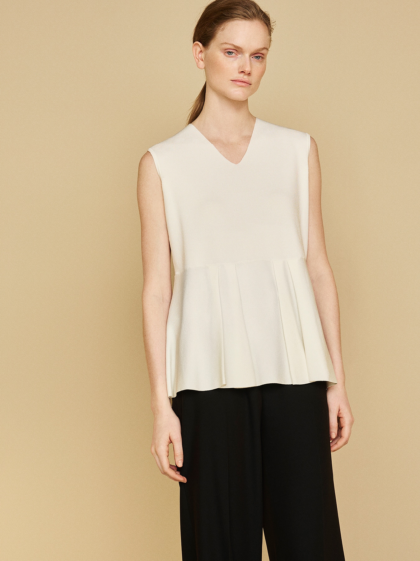 Vネックペプラムニットジレ