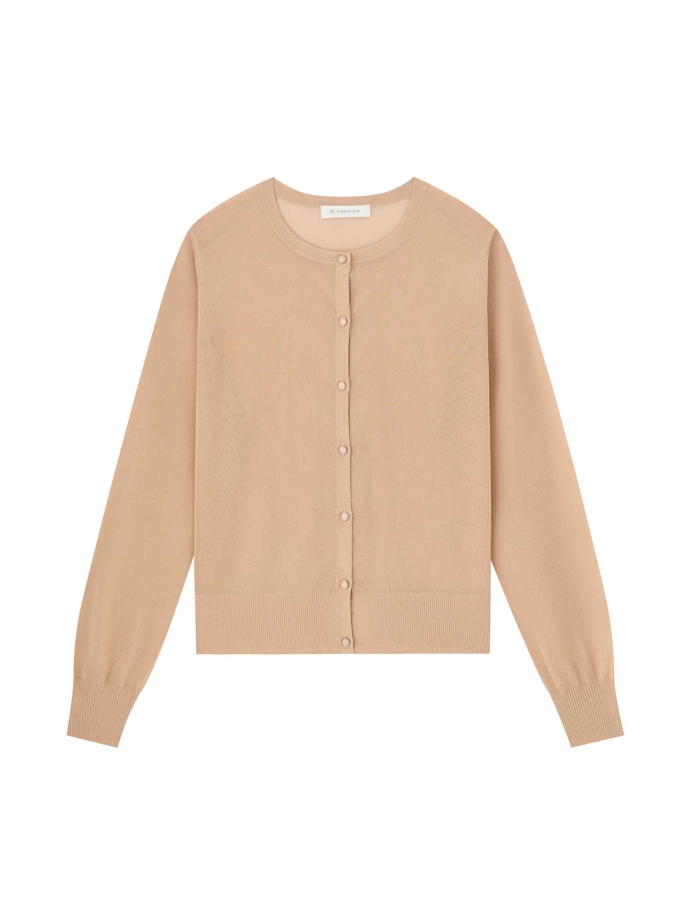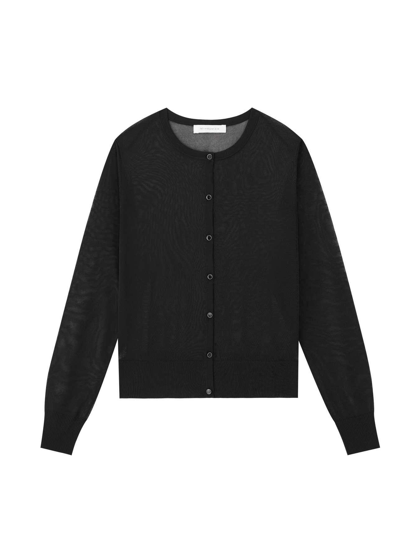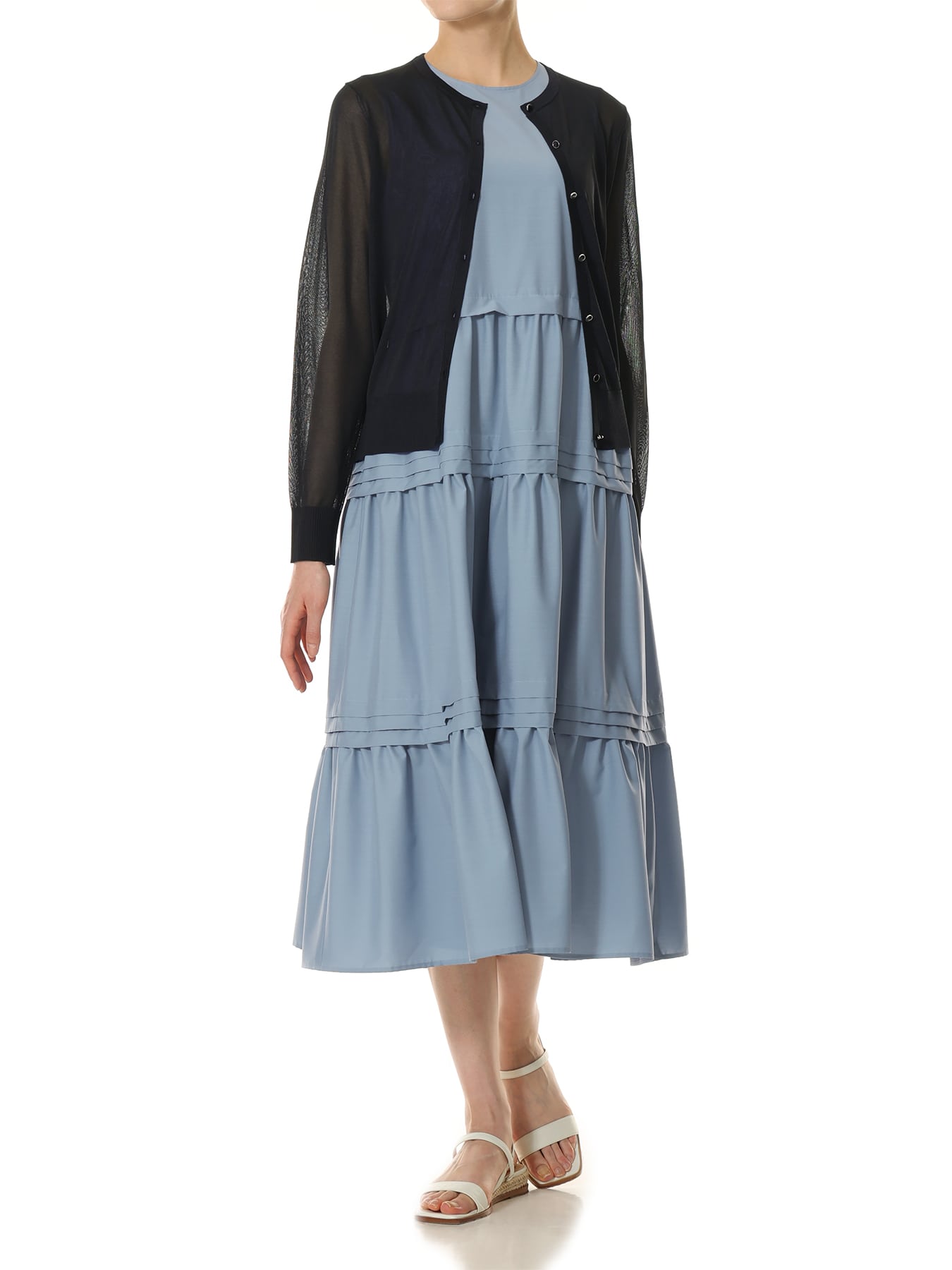 繊細な透け感が美しいシアー素材で仕立てた、軽やかで上品な印象のニットカーディガン。ポリエステル×レーヨン×ナイロンの混紡素材ならではのさらりとした肌離れの良さと、しなやかな風合いが心地よく、暑い季節にも快適にお召しいただけます。ミニマルなクルーネックデザインに、同系色で統一したボタンをあしらうことで、洗練されたエレガントな表情に。透け感がほどよい抜け感を生み、シンプルながらも軽やかな存在感を放ちます。コンパクトなシルエットはバランスが取りやすく、羽織りとしてはもちろん、ボタンを留めてトップスとしても活躍します。オンシーンには、センタープレスパンツやタイトスカートと合わせて、きちんと感のあるクリーンなスタイリングに。ワンピースの上に羽織れば、女性らしさを引き立てながら上品にまとまります。オフシーンには、デニムやワイドパンツと合わせてリラックス感のあるきれいめカジュアルに。ノースリーブトップスやキャミソールとレイヤードすることで、シアー素材ならではの軽やかさを活かした着こなしもお楽しみいただけます。シンプルでありながら素材の魅力が際立つ、シーズンスタイルに寄り添う一着です。 ・ご家庭で手洗いが可能 ・透け感あり ・スチーム可能 ・ジャストフィット。通常サイズをおすすめします。 ・(BEIGE)モデル身長171cm/バスト82cm/ウエスト60cm/ヒップ88cm/38サイズ着用 ・(NAVY)モデル身長173cm/バスト83cm/ウエスト59cm/ヒップ85cm/38サイズ着用 【お問い合わせ品番】 A747-015
