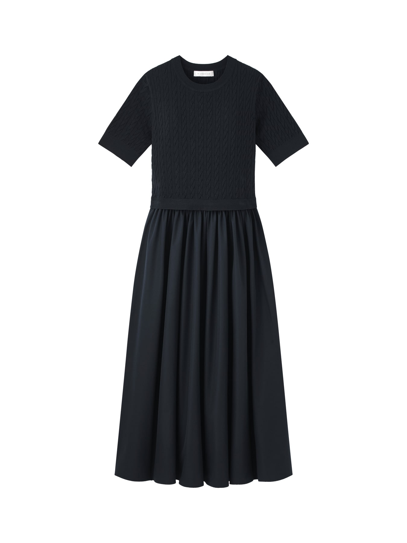 ブランド:M-PREMIER 素材:<ニット部分>レーヨン82% ポリエステル18% <スカート部分>複合繊維(ポリエステル)100% 【お問い合わせ品番】 A747-021 [COLOR CODE] NAVY BLUE:155 BLACK:005