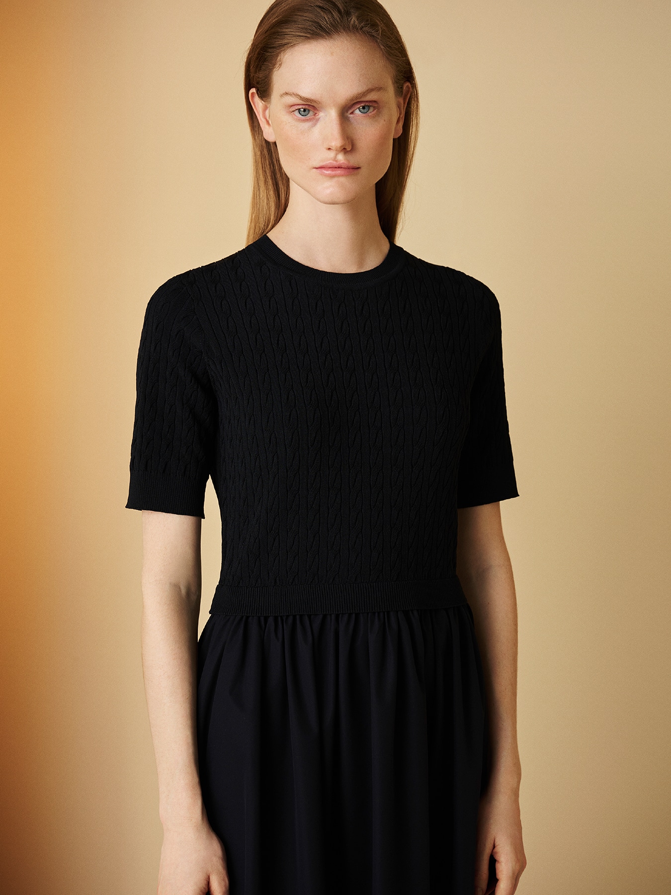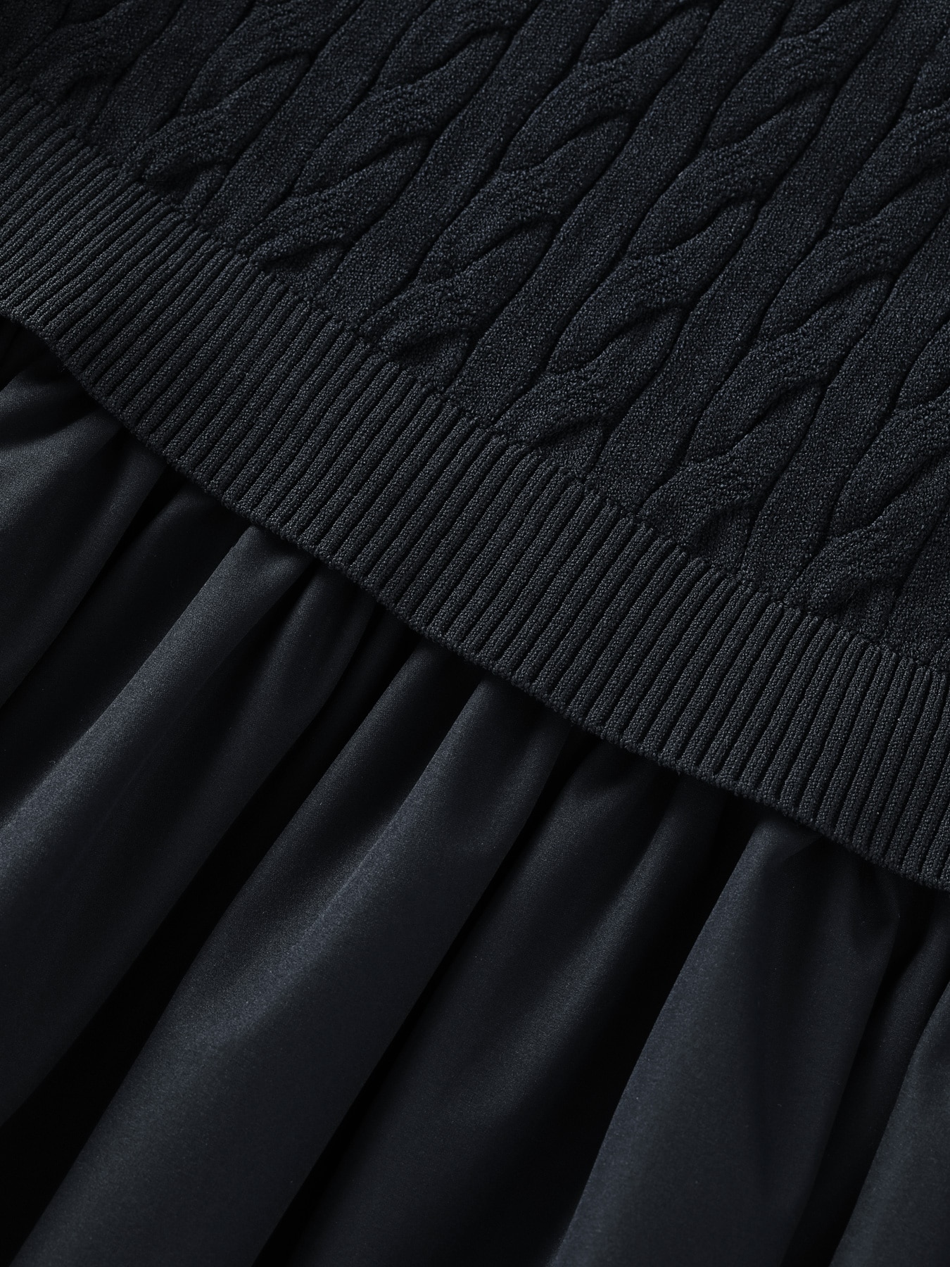 異素材切替ケーブルニットワンピース