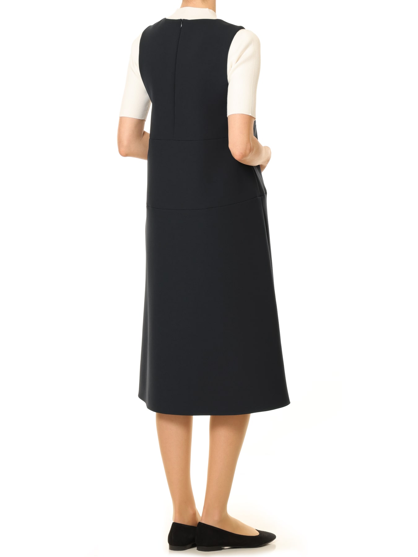 軽量でふくらみのあるしなやかな肌触りが特徴の上質な素材感を使用したジャンパースカート。深く開いたVネックラインは抜け感を生み、お顔をすっきりとシャープに魅せてくれる視覚効果が嬉しいところ。シンプルなデザインに裾に向かって緩やかに広がるシルエットは、ベーシックなリブニットなどコンパクトなアイテムと好相性でお召いただけます。深めのアームホールなのでボリュームスリーブや、厚手のニットを合わせていただくのも可能でコーディネートの幅が広がる一着です。 ・裏地あり ・バックコンシールファスナー開き ・スチーム可能ですが、過度なスチームを当てることにより、水分を多く含んでしまうと縮みや波打ちが発生しやすくなりますのでご注意ください。 ・ジャストフィット。通常サイズをお勧めします。 ・モデル身長173cm/バスト85cm/ウエスト62cm/ヒップ90cm/38サイズ着用 【お問い合わせ品番】 A942-005