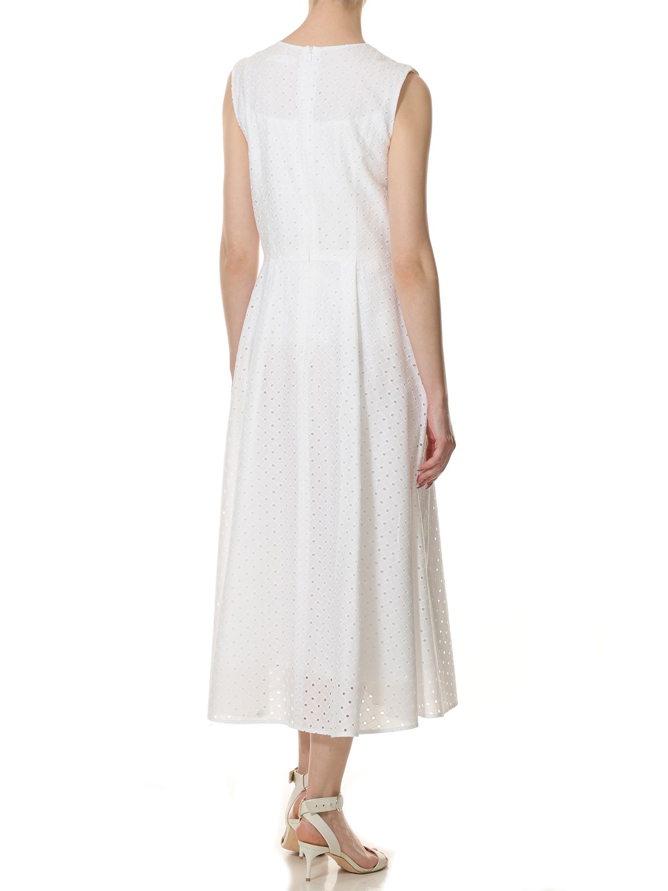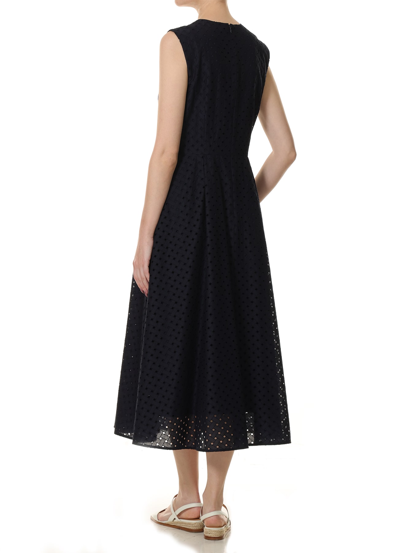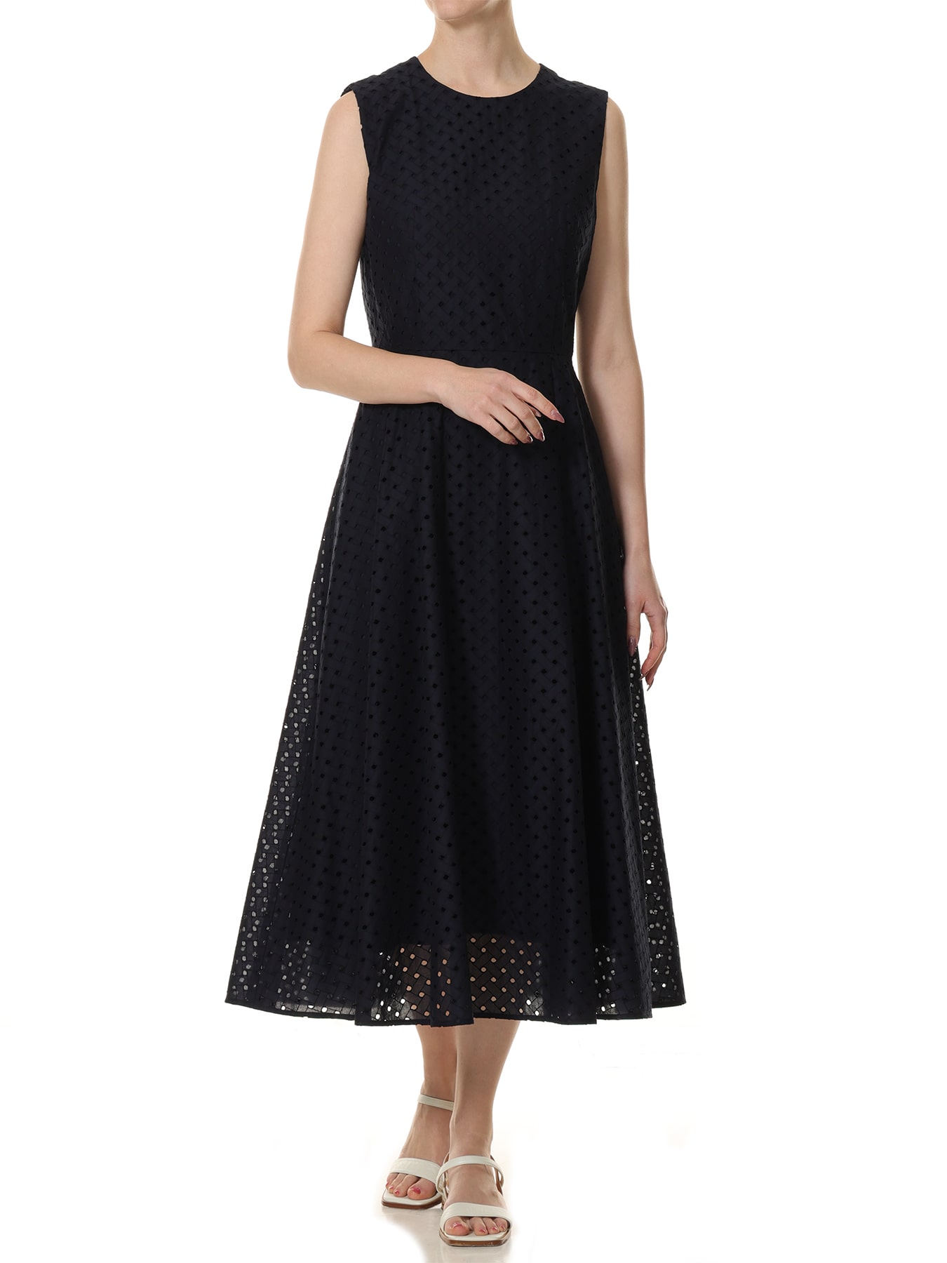 上質な総レース素材が繊細な表情を生み出す、エレガントなノースリーブワンピース。素材には、肌触りの良い綿100%の60ローンレースを使用しており、軽やかでやわらかな着心地と、ナチュラルな上質感を兼ね備えた一着に仕上げました。幾何学的に配されたレース柄が奥行きのある表情を生み出し、シンプルなデザインの中にさりげない華やかさを添えます。ウエスト位置で切り替えた立体的なパターンと、裾に向かって美しく広がるフレアシルエットが女性らしいラインを引き立て、一枚で洗練されたスタイルを完成させてくれるのも魅力。上品な透け感と軽やかな素材感が、季節感のあるエレガントな装いを演出します。デイリーシーンでは、フラットサンダルやローヒールを合わせて、軽やかで上品なリラックススタイルに。カーディガンや軽めのジャケットを羽織れば、きちんと感を保ちながらも柔らかな印象の通勤スタイルとしても活躍します。お食事やお出かけのシーンには、華奢なヒールやアクセサリーを合わせて、レースの繊細さを引き立てたエレガントな装いに。さらに、パーティーや特別なシーンではクラッチバッグや華やかなシューズを添えることで、上品な存在感を放つドレススタイルとしてもお楽しみいただけます。シンプルながらも美しいシルエットと素材の表情が際立つ、大人の女性にふさわしい一着です。 ・スチーム可能 ・WHITEは透け感あり ・バックコンシールファスナー開き ・ジャストフィット。通常サイズをお勧めします。 ・モデル身長171cm/バスト82cm/ウエスト60cm/ヒップ88cm/38サイズ着用 【お問い合わせ品番】 A947-006