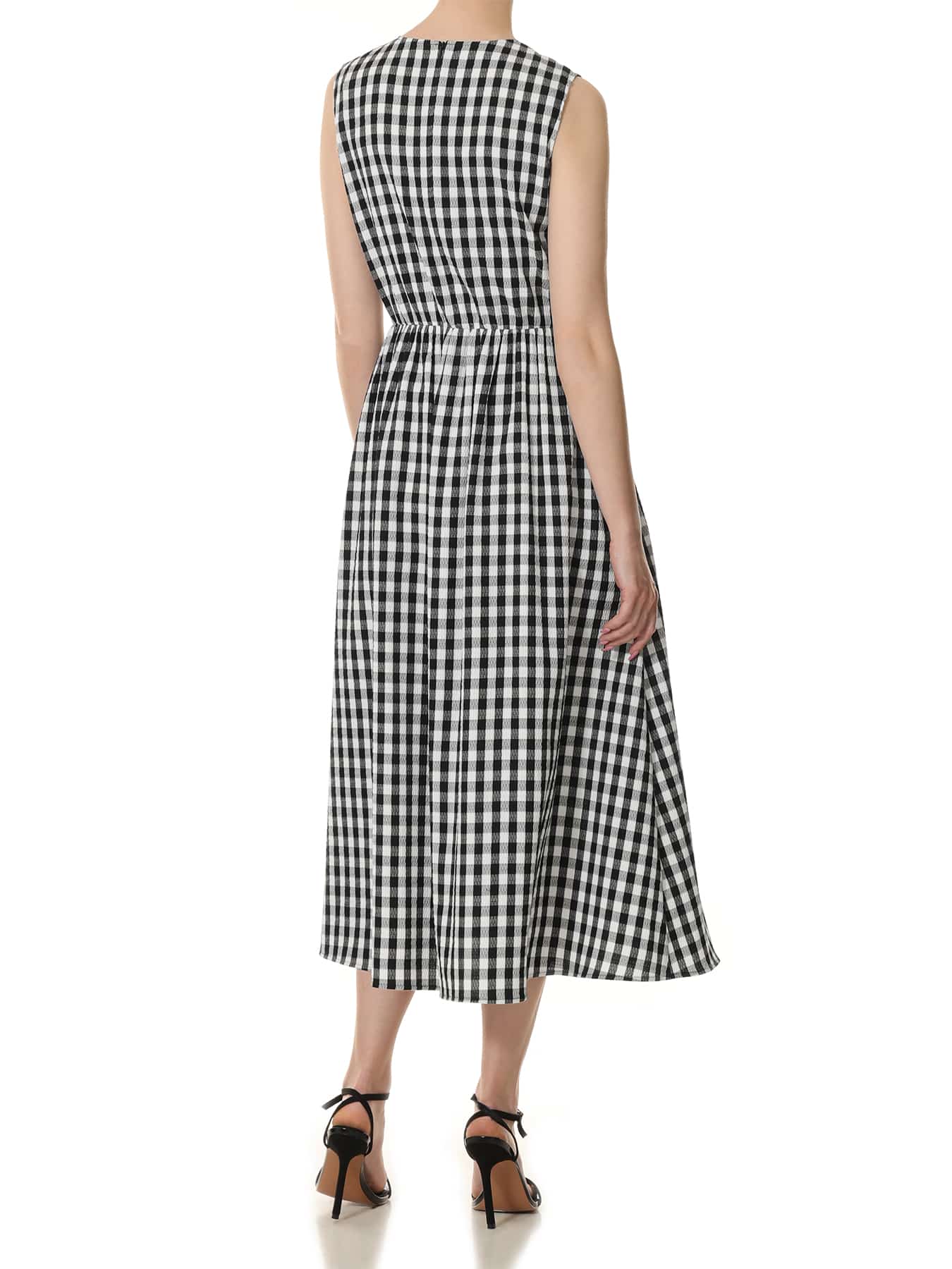 ギンガムチェックノースリーブワンピース