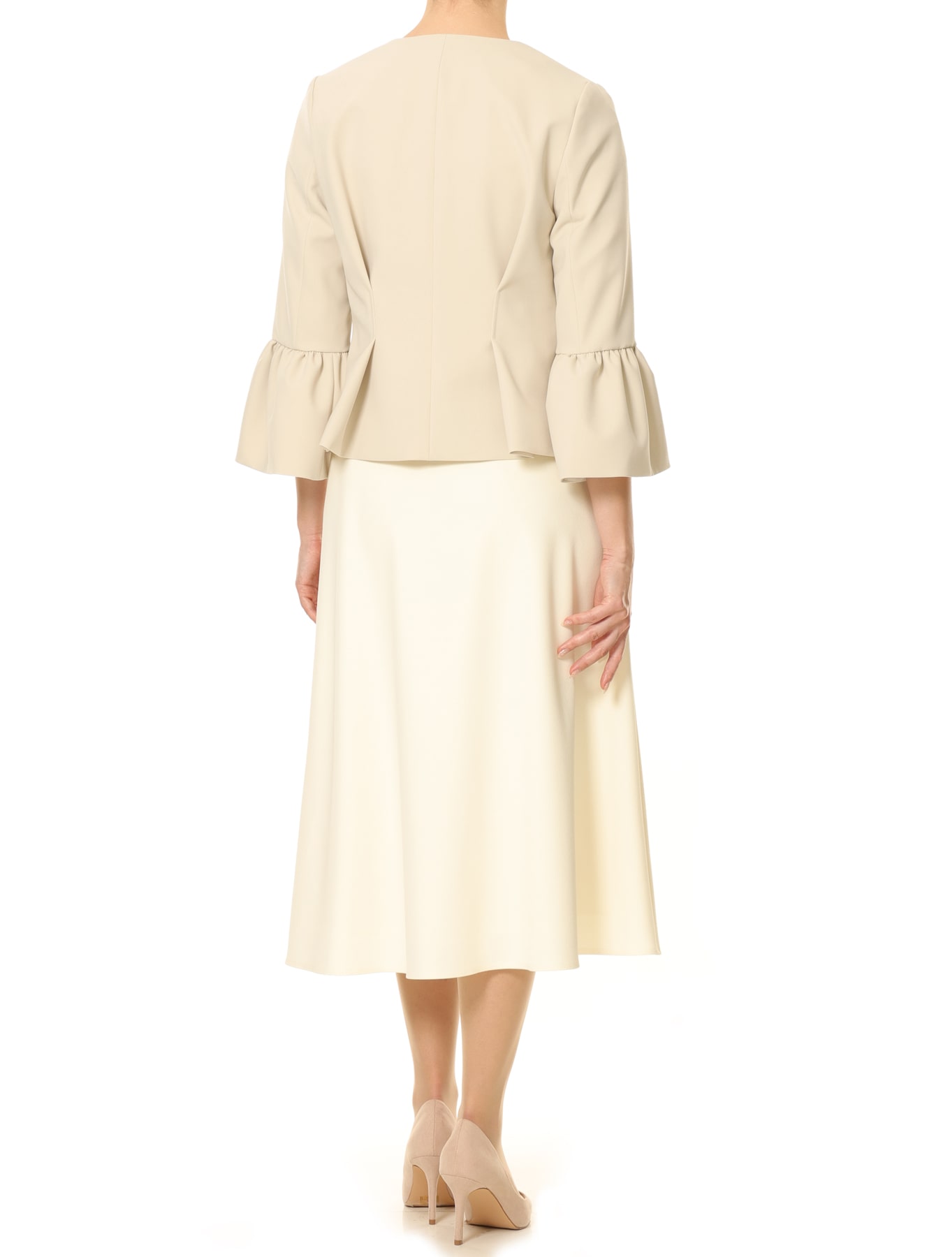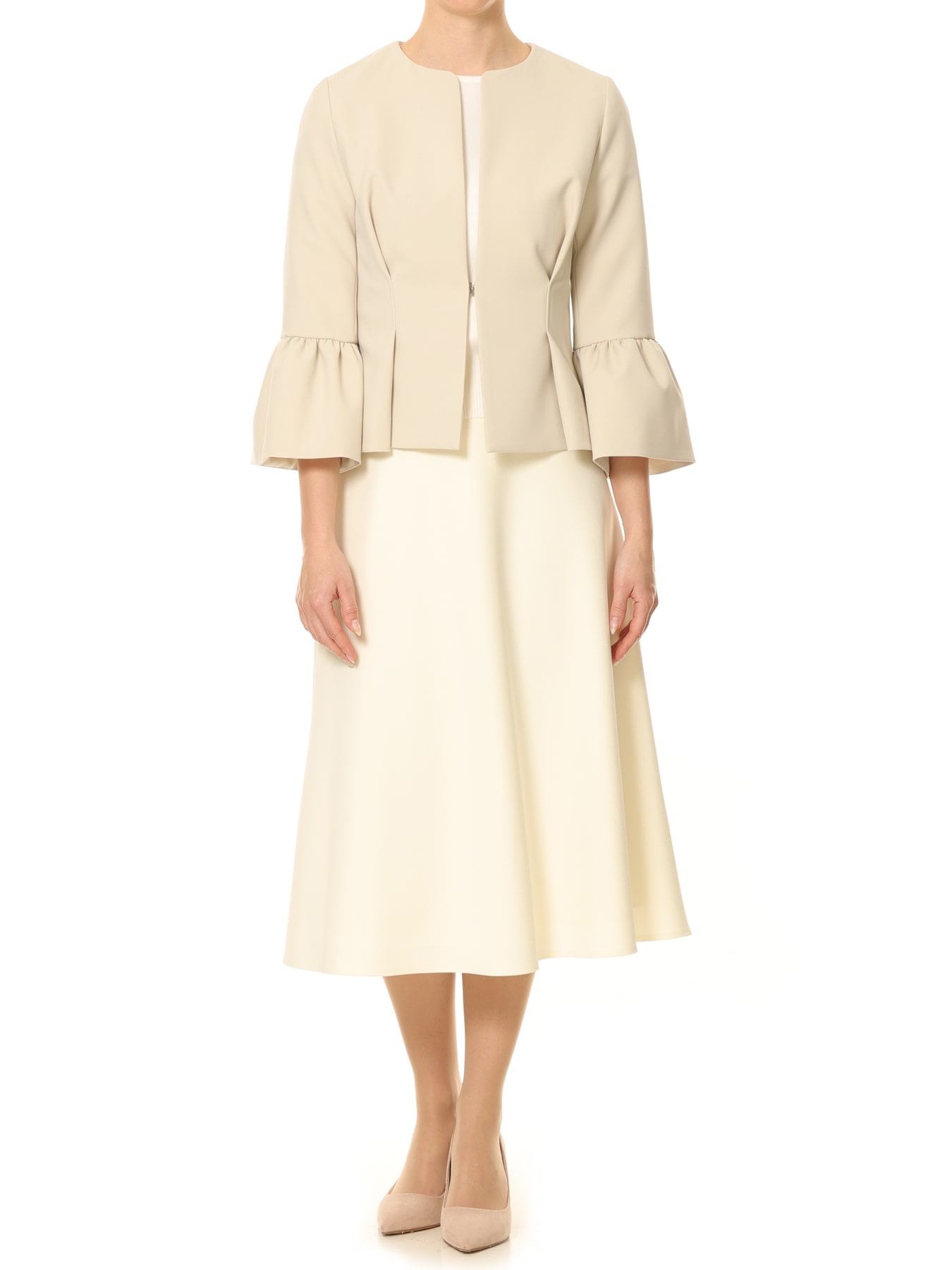 滑らかで上品な光沢感を持つ上質な風合いのダブルクロス素材を使用したノーカラージャケット。前後のウエスト部分にタックを施すことで立体的なシルエットが完成し、顔周りのノーカラーですっきりとバランスが取れた身頃のデザインです。スリーブ部分にはギャザーの切替を施すことで袖先がふわりと膨らみ、女性らしく柔らかな雰囲気をプラス。シンプルながらも華やかさを持ち合わせたジャケットはオフィス使いはもちろん、セレモニーなど特別な日にもお召いただける、周りと差がつく一着です。 ・裏地あり ・フロントホック開き ・スチーム可能。 ・ジャストフィット。通常サイズをお勧めします。 ・モデル身長171cm/バスト82cm/ウエスト60cm/ヒップ88cm/36サイズ着用 【お問い合わせ品番】 C142-005