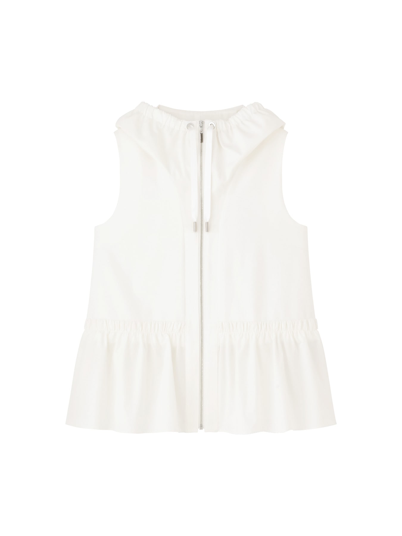 程よい厚みとハリ感のあるコットン×ナイロンベースの素材で仕立てた、エレガントな雰囲気を纏うジップアップジレ。身頃はすっきりとしたシルエットに仕上げながら、裾には薄手でハリのある素材を切り替えることで、立体的で美しいペプラムシルエットを実現しました。フロントのジップアップデザインがスタイリングに程よいモード感を添え、フード周りに寄せたギャザーが柔らかなニュアンスをプラス。カジュアルな要素を取り入れながらも、女性らしい上品さを感じさせる一着に仕上げています。シンプルなニットやカットソーをインナーに合わせることで、洗練された大人の装いが完成します。ボトムには、すっきりとしたテーパードパンツやワイドパンツを合わせて上品にまとめても、デニムやレギンスと合わせて軽やかな大人カジュアルスタイルに仕上げるのもおすすめ。 ・WHITEは透け感あり ・スチーム可能 ・ジャストフィット。通常サイズをおすすめします。 ・モデル身長171cm/バスト82cm/ウエスト60cm/ヒップ88cm/38サイズ着用 【お問い合わせ品番】 A747-007