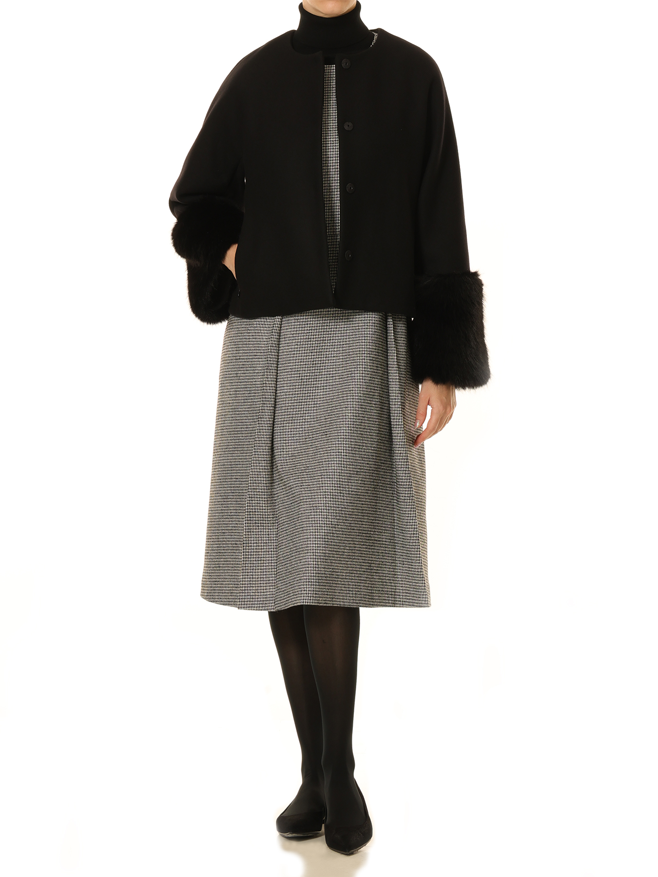ブランド:M-premierBLACK 素材:<表地>(LIGHT BEIGE)毛75% ナイロン25% (BLACK)毛72% ナイロン25% カシミヤ3% <ファー部分>ポリエステル100% <裏地>ポリエステル100% 【お問い合わせ品番】 LIGHT BEIGE:C246-011 BLACK:C246-012 [COLOR CODE] LIGHT BEIGE:032 BLACK:005