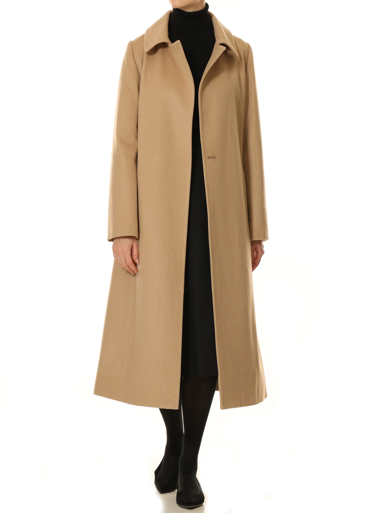 上質さが一目で伝わる、カシミヤ20%混のシャルムビーバー素材を贅沢に使用したロングコート。なめらかなタッチと上品な艶が纏うだけで洗練された雰囲気を生み出し、シンプルなデザインの中に気品ある存在感を宿します。身体をやさしく包み込む滑らかなフォルムと美しい落ち感が、どの角度から見てもエレガントな印象に仕上がる一着です。シンプルなステンカラー仕立てに、同素材のベルトを合わせたミニマルなデザインは、纏うだけで洗練された女性像を演出。ウエストを軽く絞ればメリハリのある美しいシルエットに、前を開けて着れば軽やかで上品なリラックス感が生まれます。オンシーンでは、タイトスカートやセンタープレスパンツと合わせることでクラシカルで凛としたスタイルに。ビジネスシーンのアウターとしても美しい佇まいを保ちます。休日には、ボリュームニットやワンピースにさらりと羽織るだけで、大人の余裕を感じさせるリュクスなカジュアルスタイルが完成。特別な日には、ワンピースとヒールを合わせてフォーマルな装いにも自然と馴染み、華やかさを引き立てます。長く愛せるクラシックさと、今年らしい洗練を兼ね備えた、ワードローブの主役にふさわしいコートです。 ・裏地あり ・ポケットあり ・フロントボタンは左襟下とウエスト内側にひとつずつ。 ・ややゆとりのあるフィット。通常サイズをお勧めします。 ・重量約1290g 【お問い合わせ品番】 C246-013