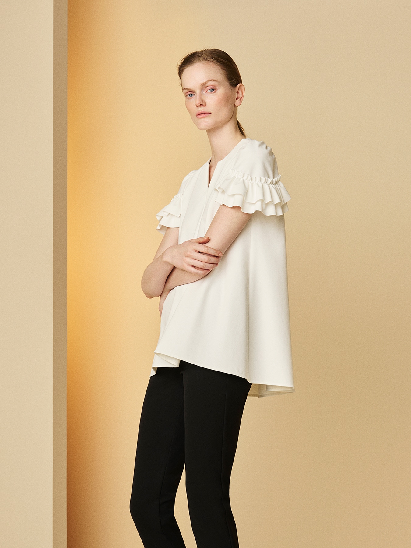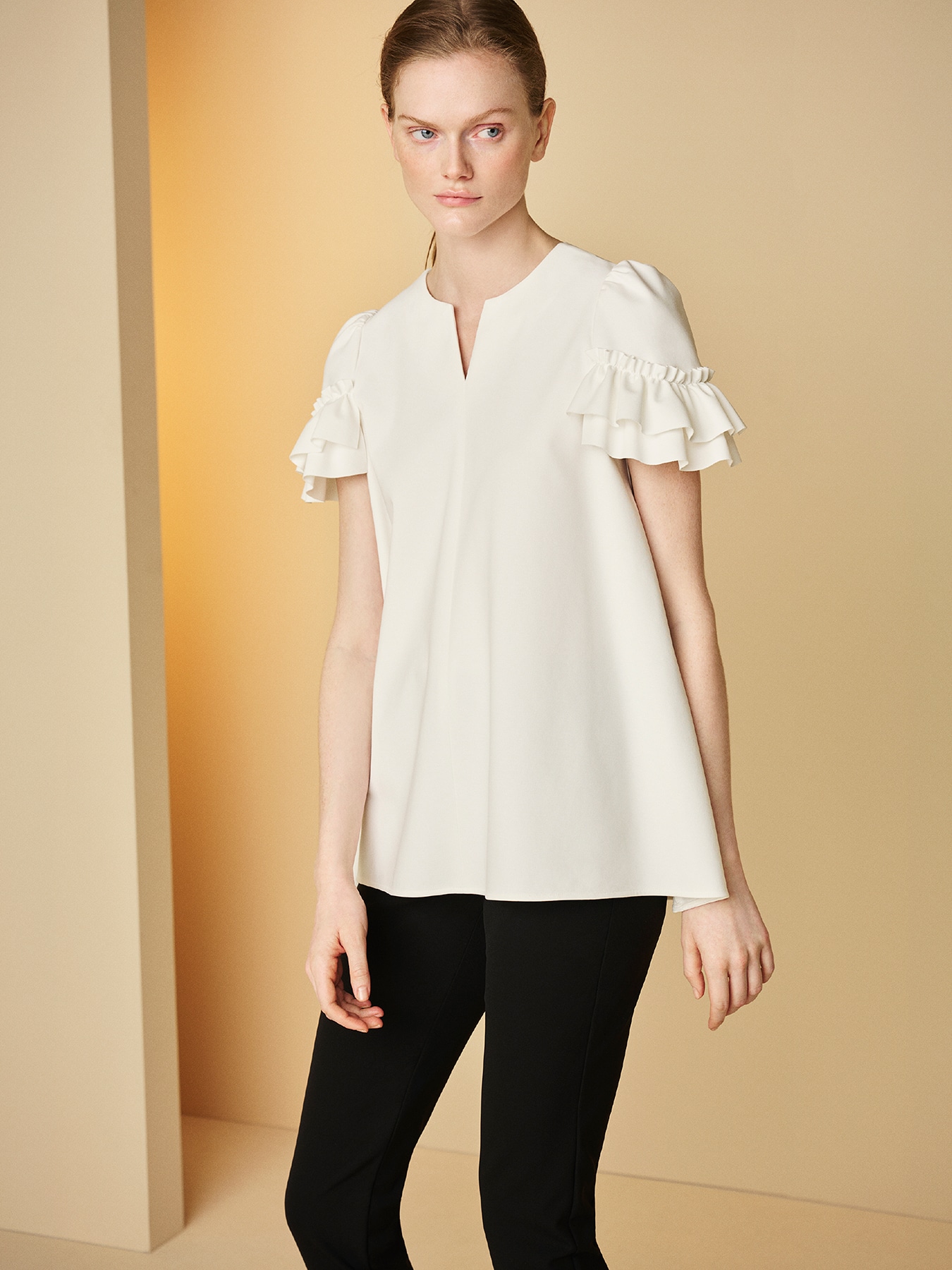 フリルスリーブキーネックフレアブラウス