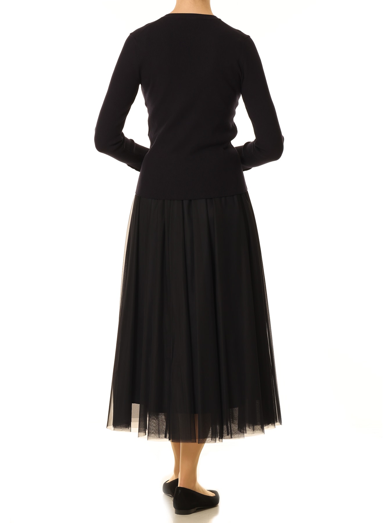 細かなチュールの編地が、抜け感と軽やかさを演出するロングスカート。ウエストにギャザーをたっぷり入れ、チュールを2枚重ねにすることで程よいボリューム感が生まれ、エレガントなスタイルが完成。裏地があるのでインナーの透けを気にせずお召しいただけます。ウエストのゴム仕様と伸縮性に優れた素材感によってストレスフリーな着心地が実現し、軽量でしわになりにくいのも嬉しいポイント。ワントーンコーディネートのアクセントに取り入れていただくのもお勧め。シンプルにトップスインしていただくのは勿論、ジャケットと合わせるなどレイヤードスタイルにも活躍します。合わせるアイテム次第でロングシーズンお召いただける優秀な一着です。 ・ご家庭で手洗い可能 ・裏地あり ・ウエストゴムあり ・スチーム可能 ・ジャストフィット。通常サイズをお勧めします。 ・32P・34PサイズはPETITEサイズです。 身長150cm前後の小柄な方にもジャストサイズで着て頂ける様にデザインされた商品です。 ・モデル身長173cm/バスト85cm/ウエスト62cm/ヒップ90cm/38サイズ着用 【お問い合わせ品番】 C446-003 NAVYの32Pサイズ・34Pサイズのみ:C445-003 BLACKの32Pサイズのみ:C443-003