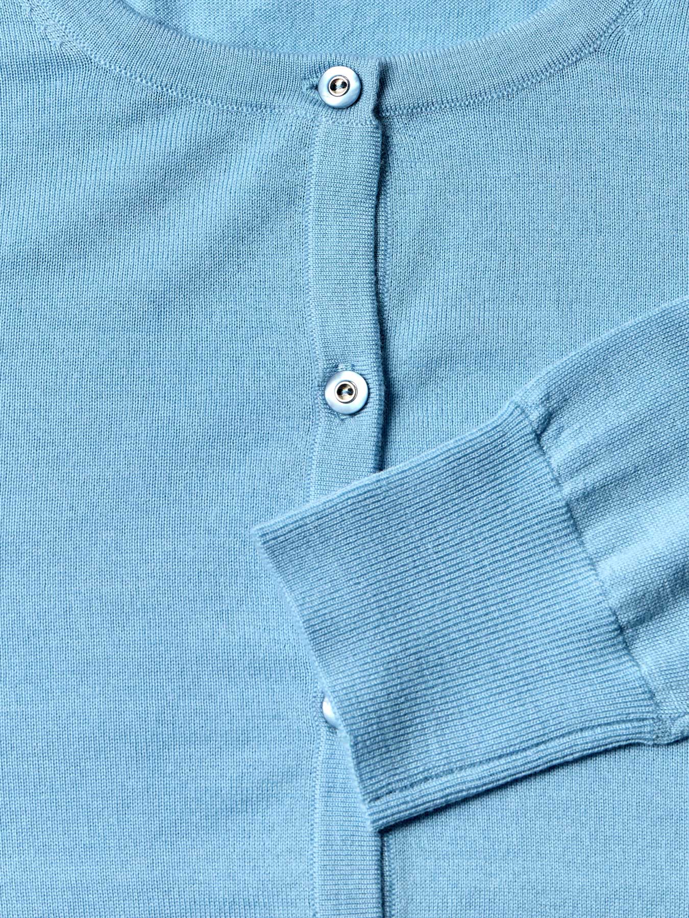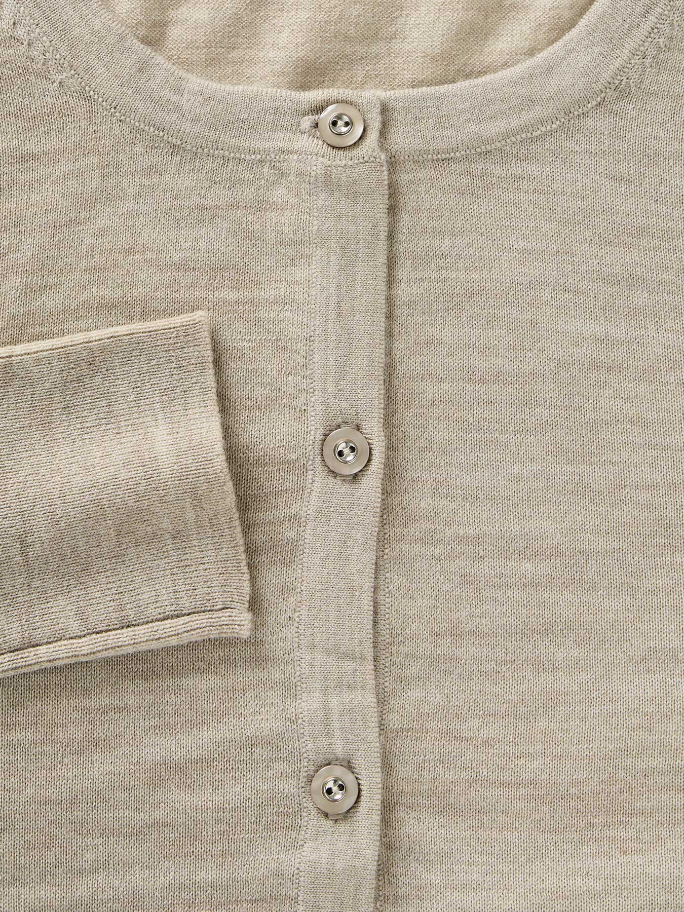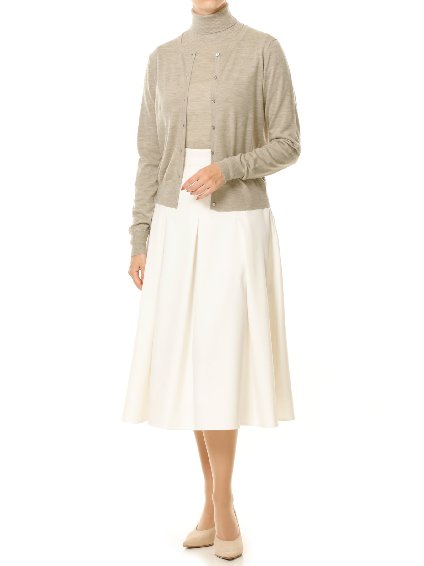 世界的に有名なラグジュアリーで高品質の素材を提供しているイタリアの紡績メーカー、CARIAGGI社のソフトで最高の肌触りが特徴的なANTILOPEウール素材を使用したカーディガン。毛糸を細かく編み上げたことで光沢感が美しく仕上がる最高級のニット素材で仕上げたカーディガンは、大人の女性らしい品格溢れる印象へと導いてくれます。フロントの同色のクリアボタンがアクセントポイントに。カーディガンとしてワンピースなどに羽織っていただくのは勿論、ボタンを留めてトップス感覚でお召いただくのもお勧め。裾や袖口をきゅっと絞り少し丸みを持たせたシルエットが全体のバランスを取り、ボトムを選ばずお召いただけます。しっとりとした薄手の生地感なので長いシーズン活躍させていただける優秀アイテムです。 ・淡色は透け感あり ・ジャストフィット。通常サイズをお勧めします。 ・モデル身長171cm/バスト82cm/ウエスト60cm/ヒップ88cm/36サイズ着用 【お問い合わせ品番】 C741-605