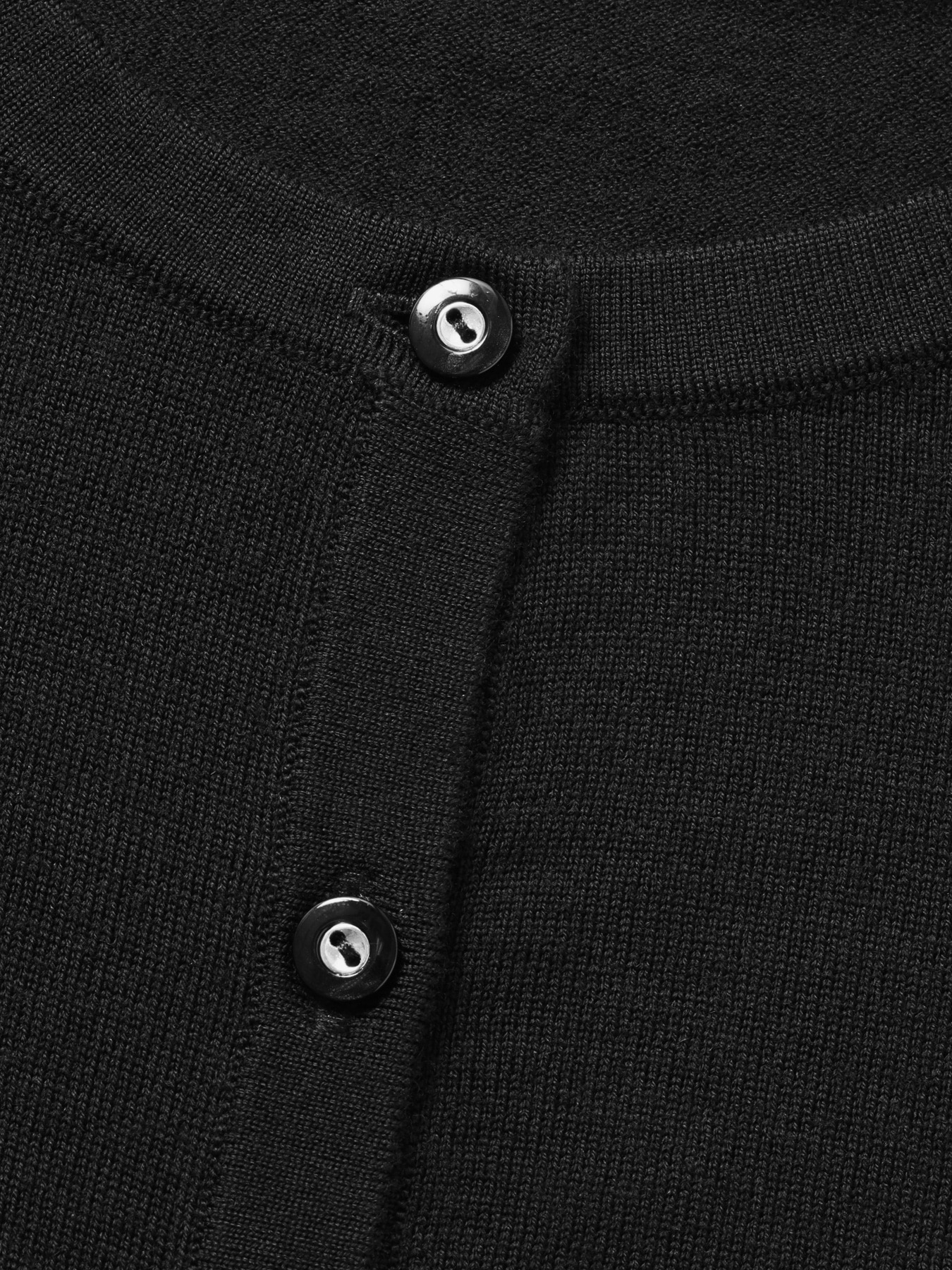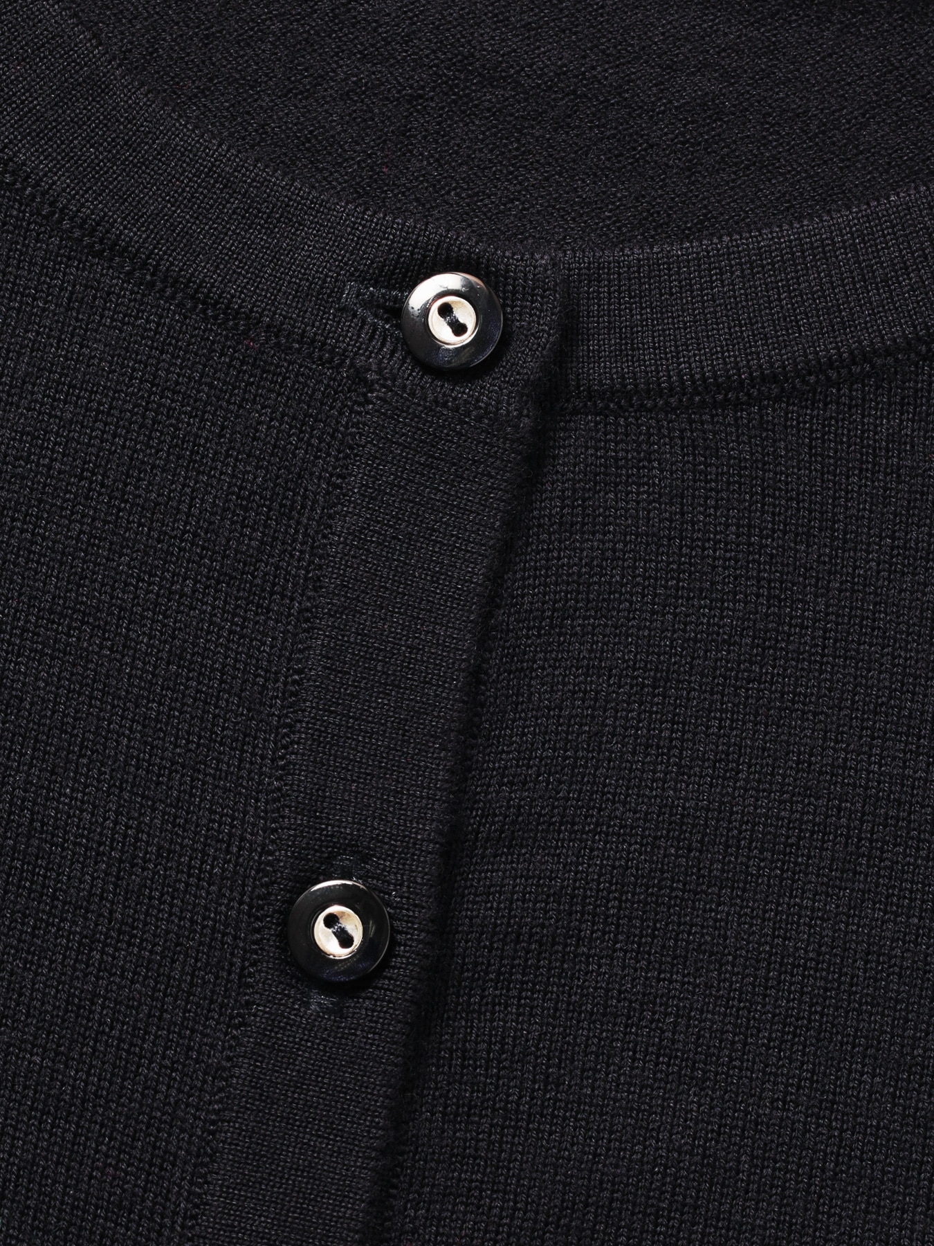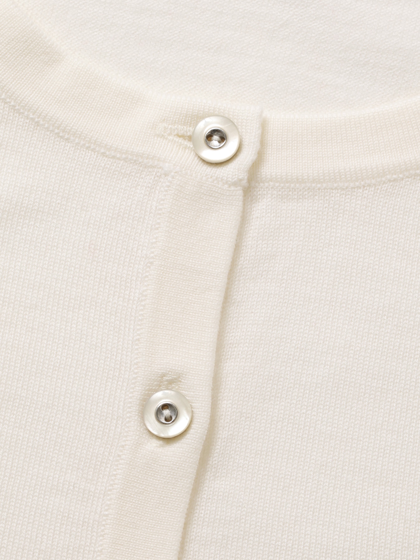 ウールをメインに使用した薄手のハイゲージニットが、上品な佇まいを演出するクルーネックカーディガン。シンプルで洗練されたデザインながら、滑らかな編み地が大人の女性らしいエレガンスを引き立て、季節をまたいで活躍する万能さも魅力です。単品使いはもちろん、半袖タートルネックニットプルオーバー(C746-008)とセットアップで合わせれば、より統一感のあるクラシカルなスタイルに。スカートにもパンツにもすっと馴染む一枚は、日常の着こなしを端正に整えてくれるワードローブの定番としておすすめです。 ・WHITEは透け感あり ・ジャストフィット。通常サイズをお勧めします。 【お問い合わせ品番】 C746-007