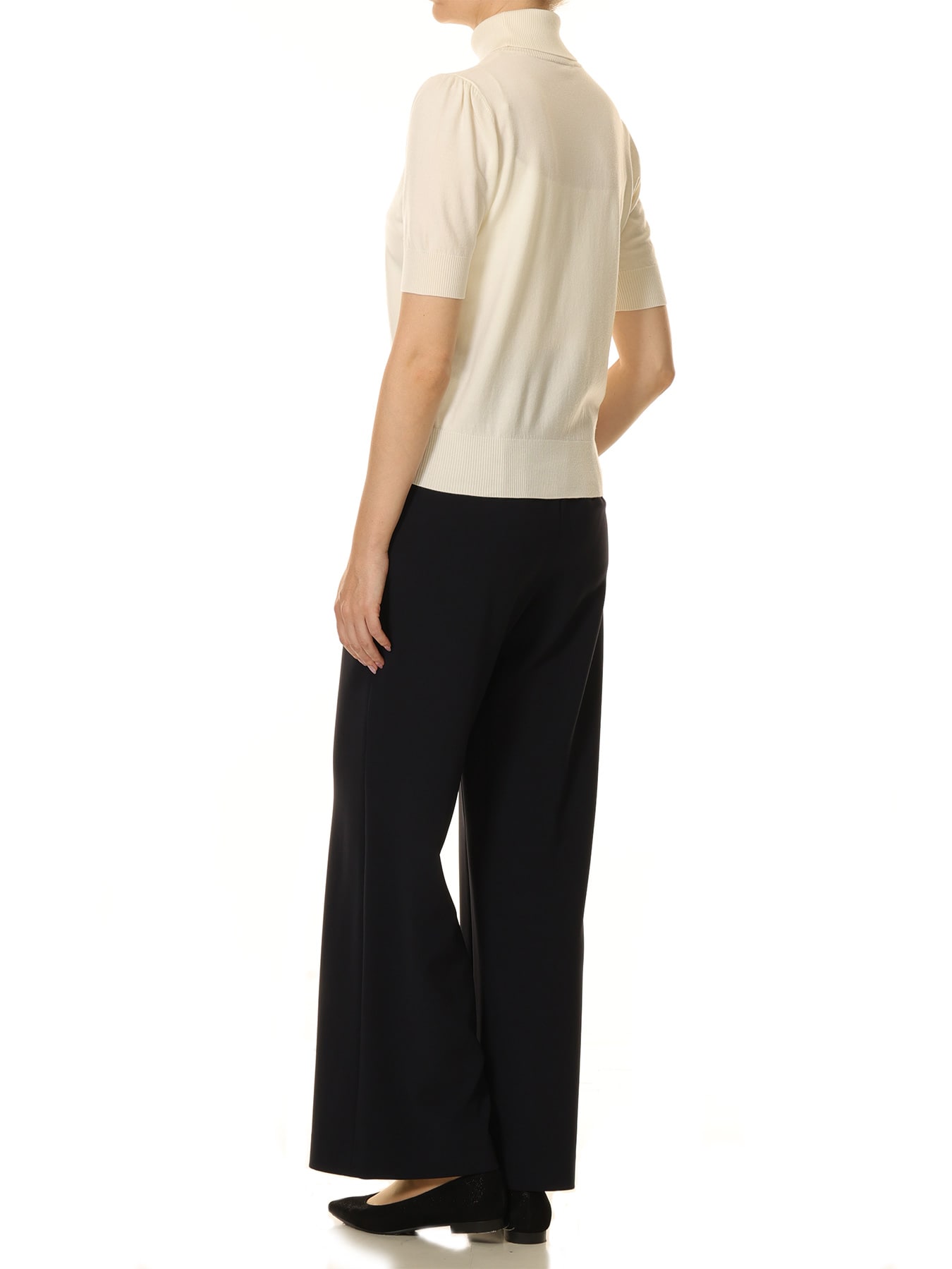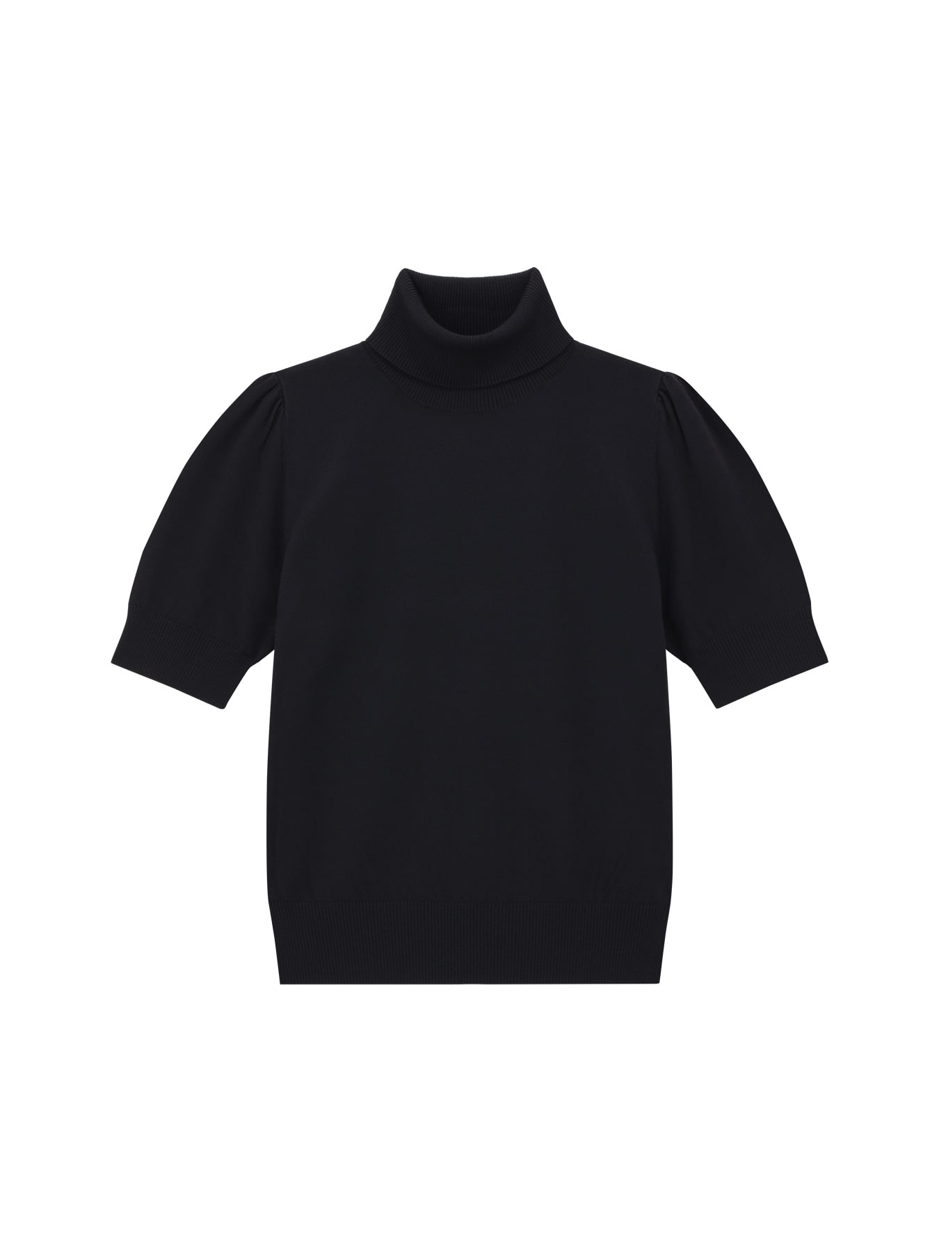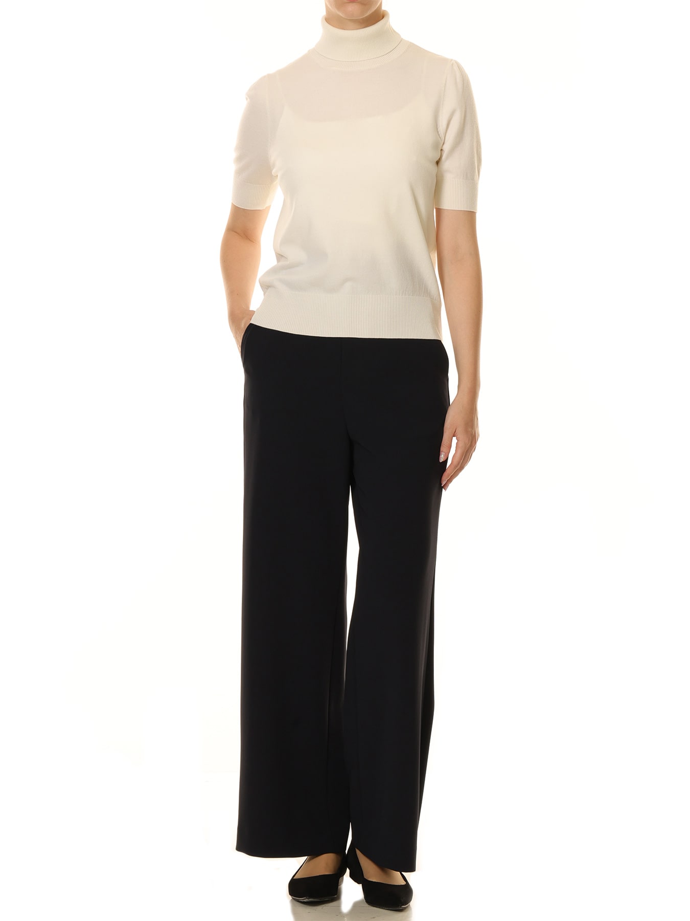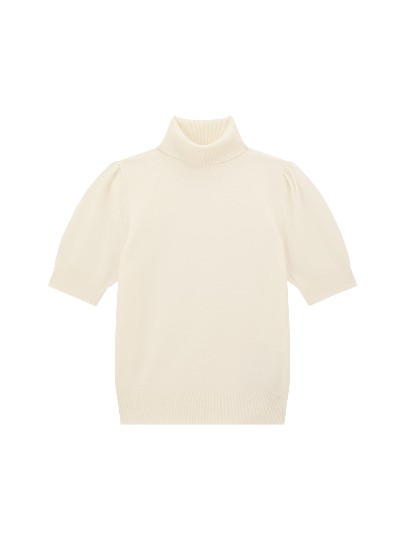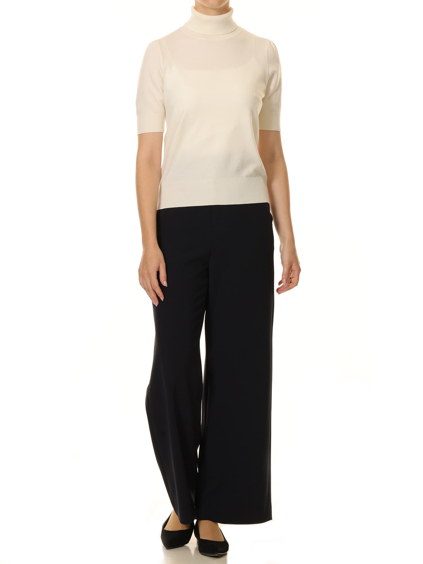 ウールをメインに使用したしなやかな質感が魅力の半袖タートルネックニット。薄手ながらも暖かく、秋口から春先まで長いシーズン活躍する一枚です。ややコンパクトなシルエットとほどよいタートルネックが首元をすっきりと見せ、上品でエレガントな印象に仕上げてくれます。クルーネックウールニットカーディガン(C746-007)とセットアップで着用すれば、統一感のある洗練されたスタイリングが完成。単品使いでもジャケットのインナーとして、またスカートと合わせたフェミニンな着こなしなど、幅広いコーディネートに取り入れられる万能ニットです。 ・WHITEは透け感あり ・ジャストフィット。通常サイズをお勧めします。 【お問い合わせ品番】 C746-008