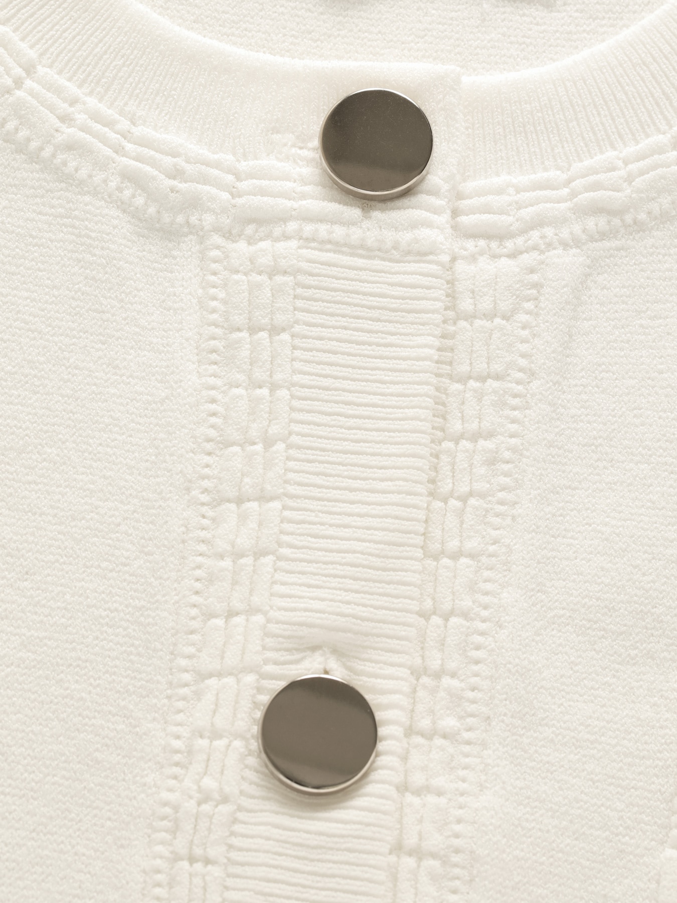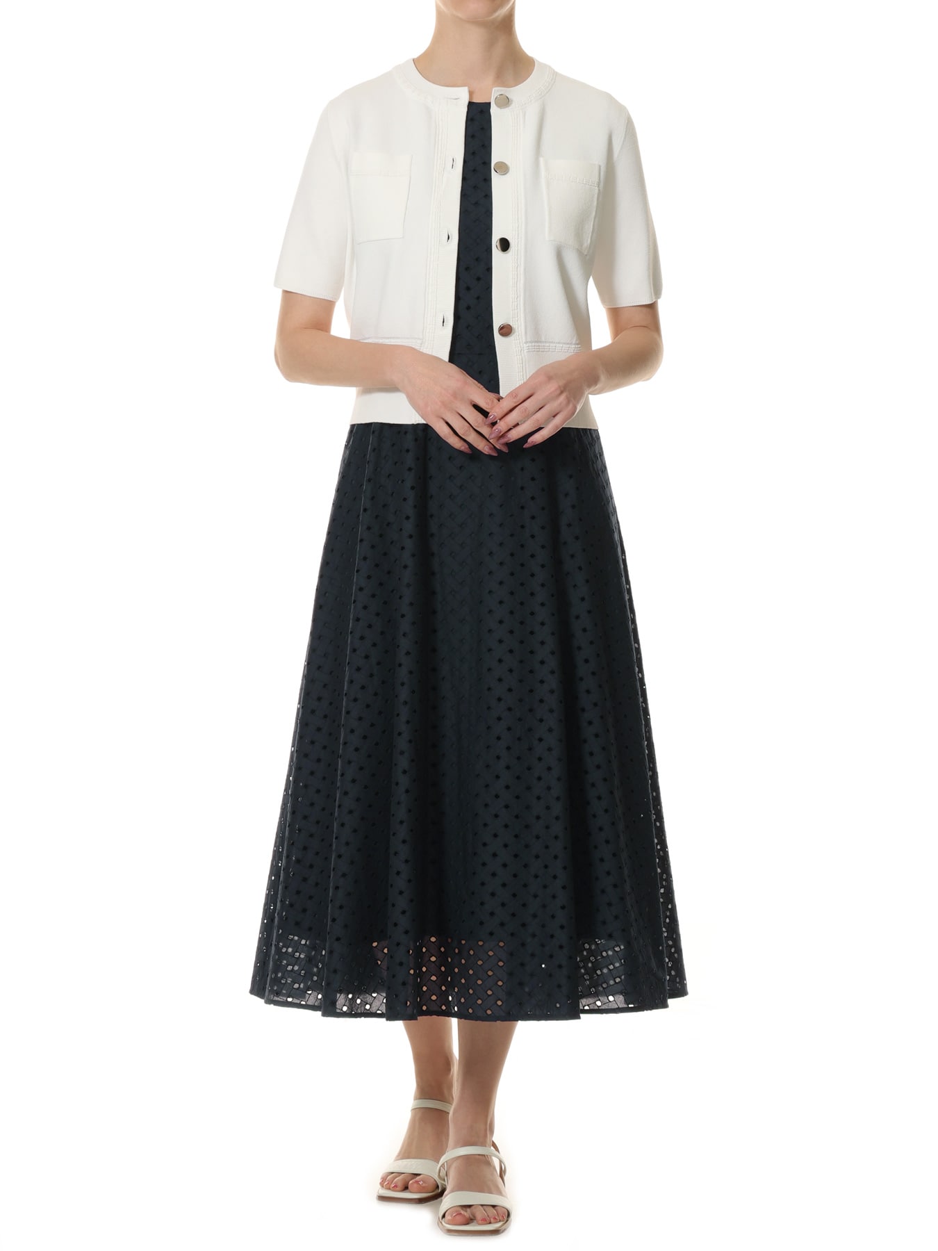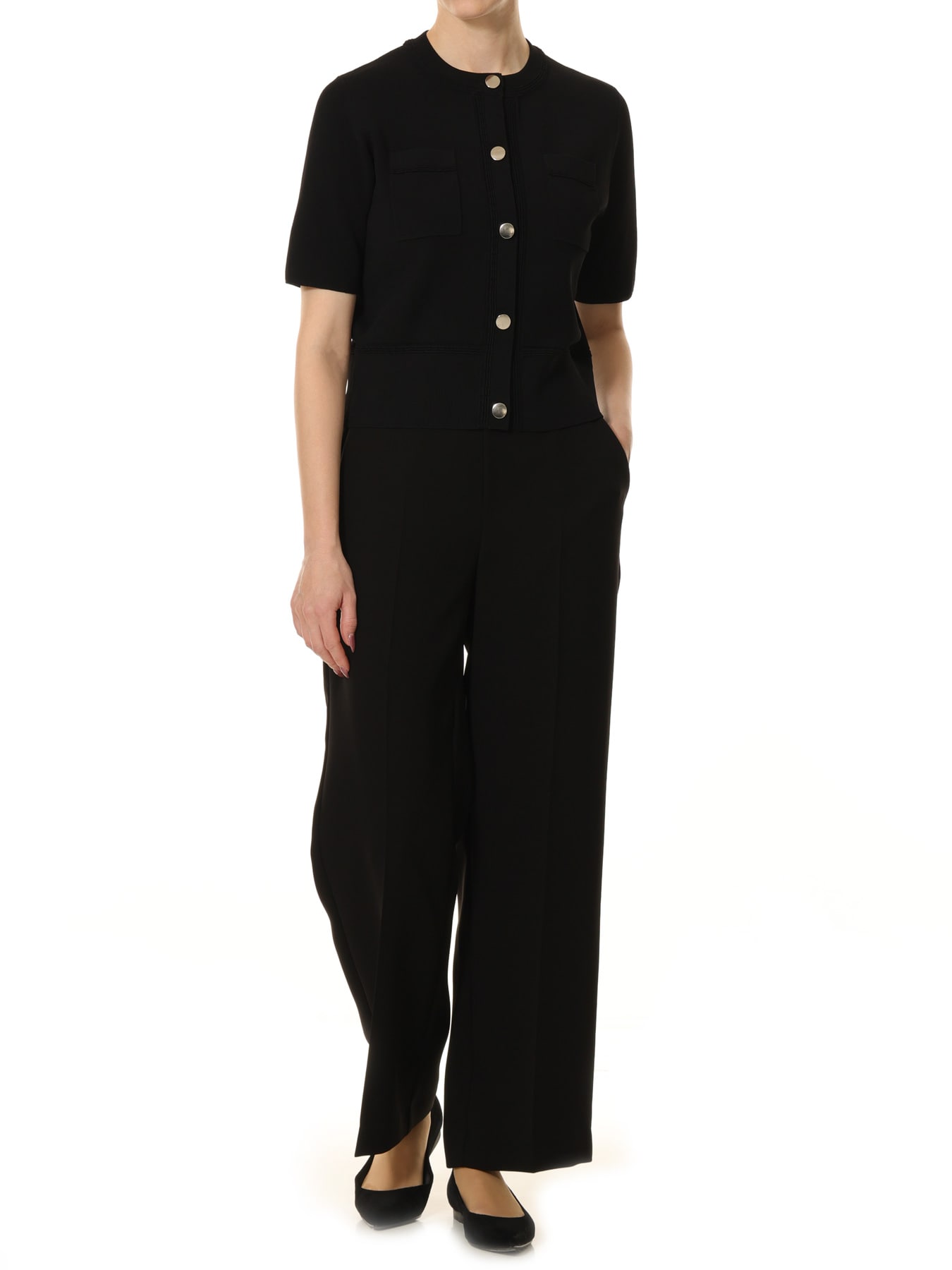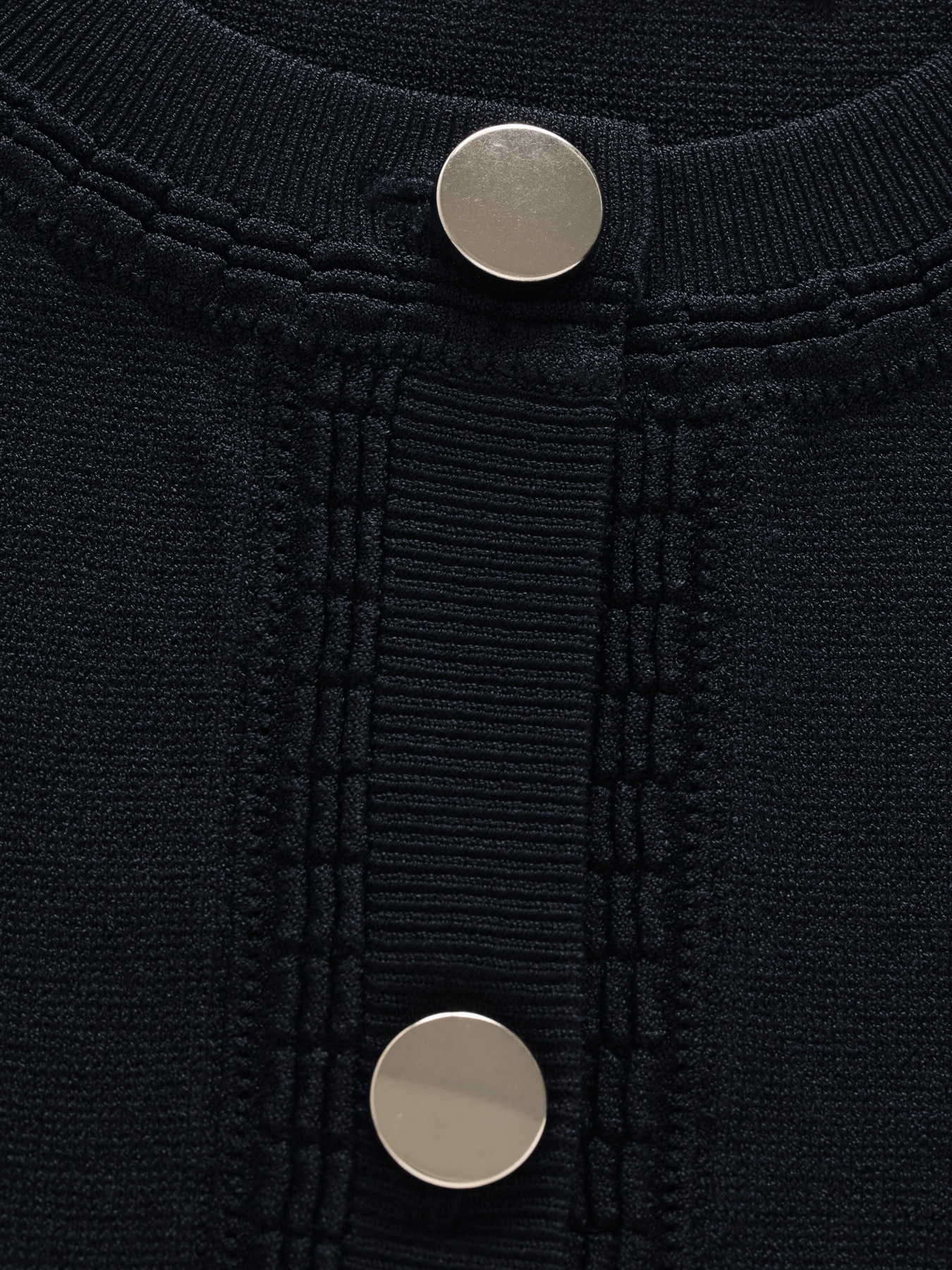 レーヨンベースのしなやかなニット素材で仕立てたカーディガンは、さらりとした肌触りと柔らかな着心地が魅力の一枚。ご家庭で手洗い可能に加え、UVカット機能も備えており、デイリーに取り入れやすい実用性の高さも嬉しいポイントです。フロントにあしらわれた艶やかなメタルボタンと、さりげなくアクセントを添えるポケットデザインが、シンプルな中にエレガントな表情をプラス。コンパクトなシルエットが上品な印象を引き立て、幅広いスタイリングに活躍します。オンスタイルには、タックパンツやタイトスカートと合わせて、きちんと感のある洗練された装いに。ボタンを留めてプルオーバーのように着こなすことで、より端正な印象に仕上がります。オフスタイルには、フレアスカートやデニムと合わせて、程よく力の抜けた大人のカジュアルスタイルに。軽やかな羽織りとしても活躍し、季節の変わり目にも重宝する一着です。 ・ご家庭で手洗いが可能 ・UVカット加工 ・淡色は透け感あり ・スチーム可能 ・ジャストフィット。通常サイズをおすすめします。 ・モデル身長171cm/バスト82cm/ウエスト60cm/ヒップ88cm/38サイズ着用 【お問い合わせ品番】 C747-001
