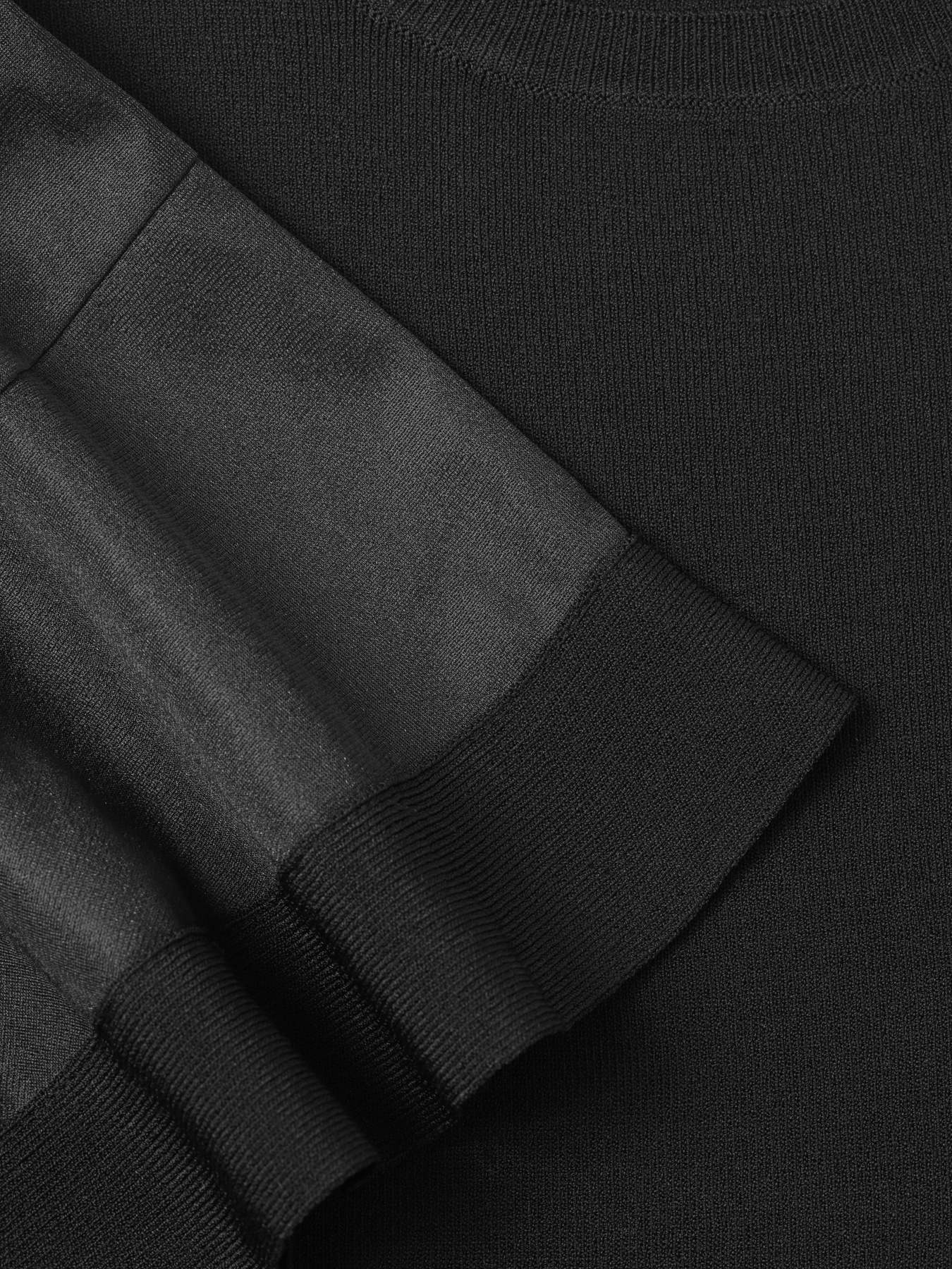 なめらかな質感が魅力のレーヨンベースのニット素材で仕立てた、エレガントなニットプルオーバー。しなやかに身体になじむ柔らかな編地が、上品で洗練された印象を演出します。身頃はシンプルでミニマルなデザインに仕上げながら、袖にはシアー素材を組み合わせることで軽やかな表情をプラス。さらにフレアシルエットに広がる袖が動くたびに美しいニュアンスを生み出し、女性らしい華やぎをさりげなく引き立てます。異素材のコントラストが奥行きのあるスタイルを叶え、一枚で着映えする存在感のある一着です。デイリーシーンでは、ワイドパンツやテーパードパンツと合わせて、程よくリラックス感のある上品カジュアルなスタイルに。シンプルなボトムと合わせることで、袖のフレアデザインが際立ち、洗練された印象に仕上がります。通勤やきちんとしたシーンには、センタープレスパンツやタイトスカートを合わせて、すっきりとしたエレガントな装いに。シーンを問わず幅広く活躍する、大人のための上品なニットプルオーバーです。 ・ご家庭で手洗い可能 ・スチーム可能 ・袖は透け感あり ・ジャストフィット。通常サイズをお勧めします。 ・モデル身長171cm/バスト82cm/ウエスト60cm/ヒップ88cm/38サイズ着用 【お問い合わせ品番】 C747-002