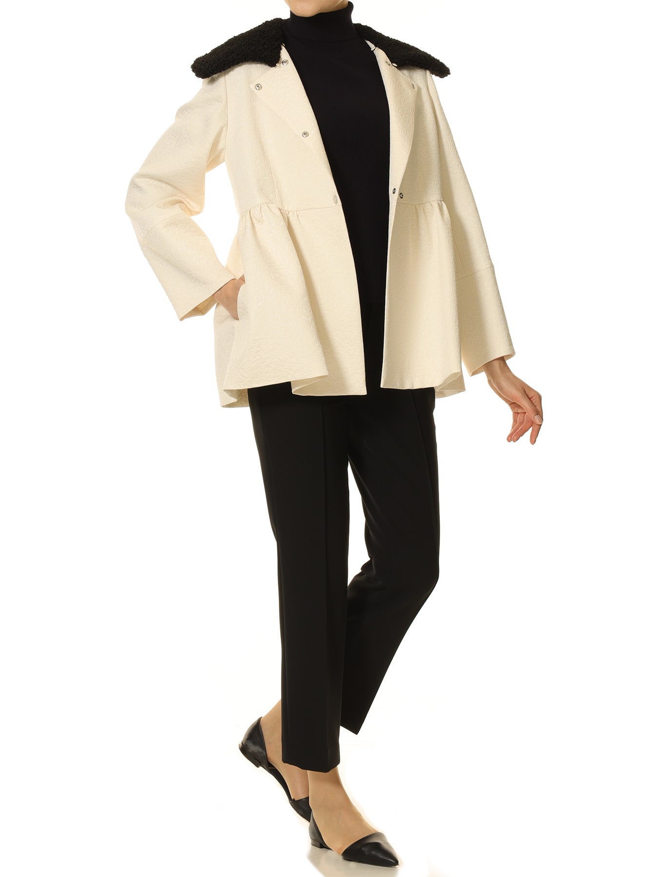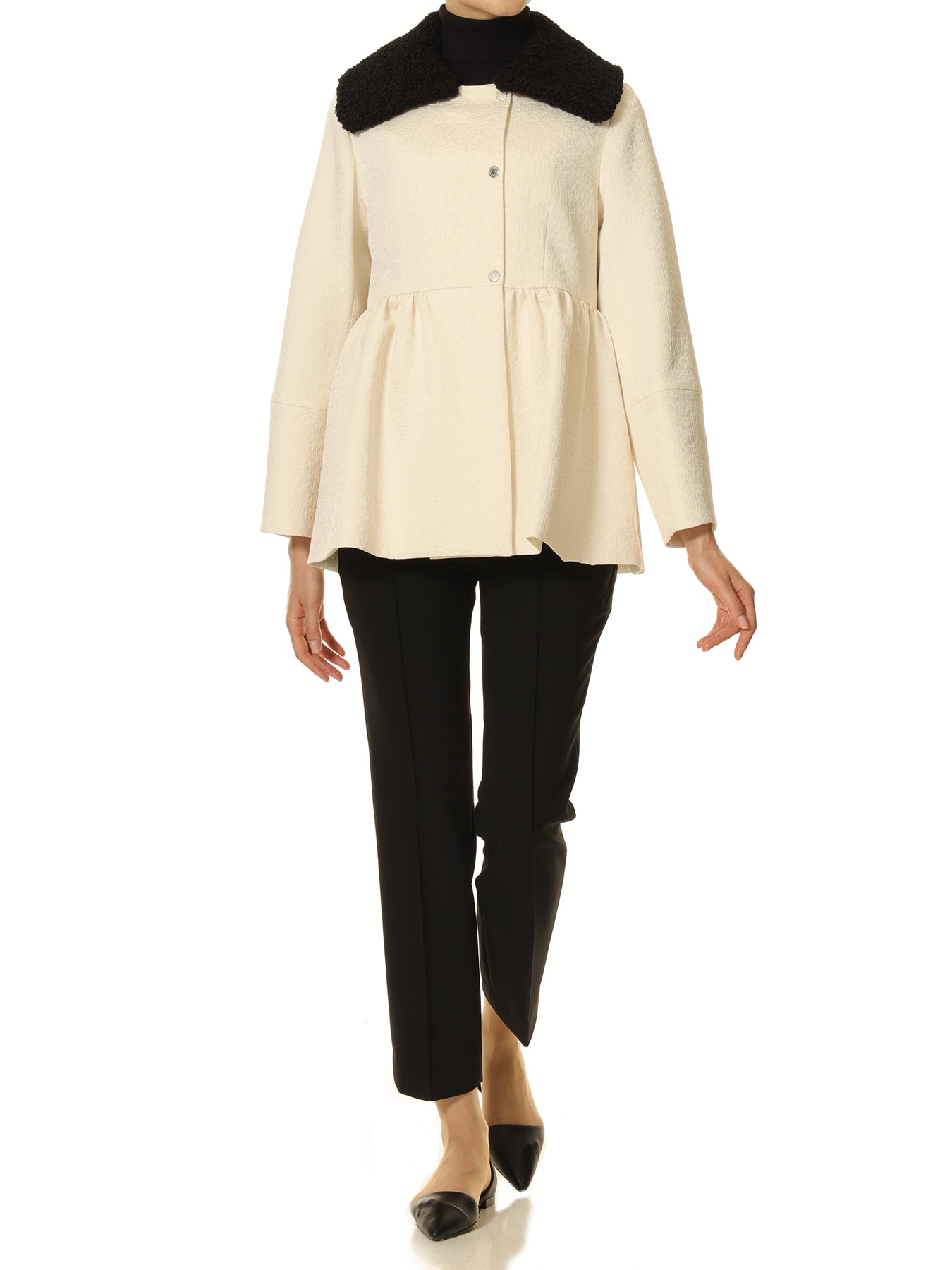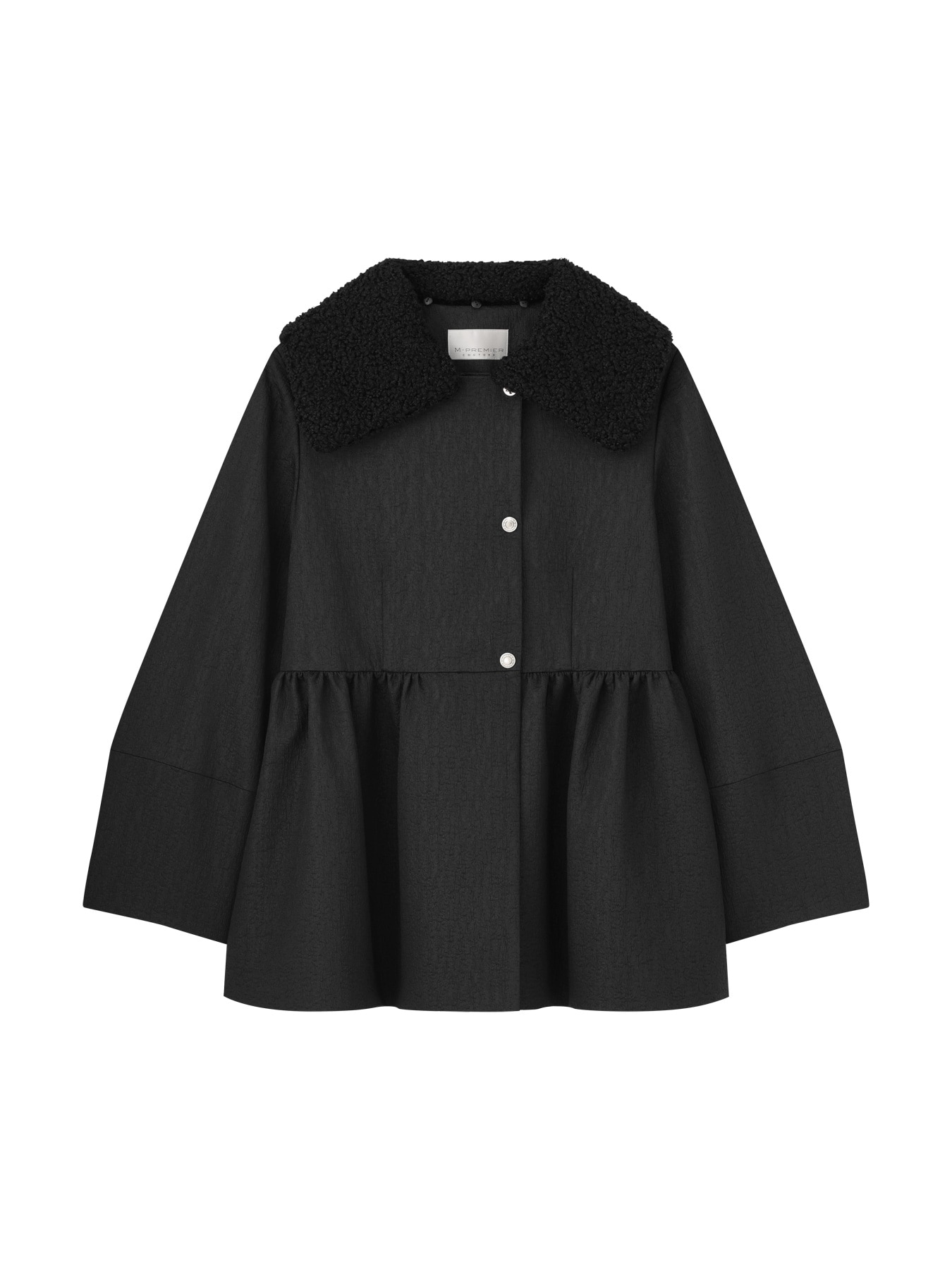 ジャガードボアカラーペプラムコート
