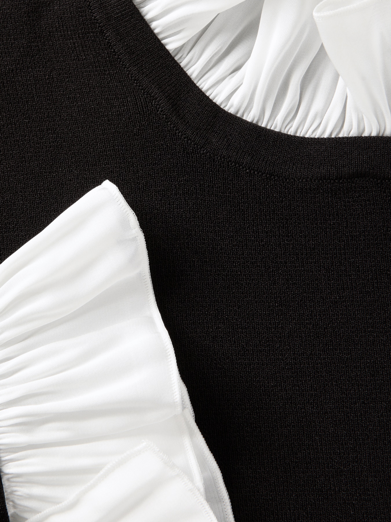 ブランド:M-PREMIER COUTURE 素材:<本体>レーヨン75% ナイロン25% <別布部分>ポリエステル100% 【お問い合わせ品番】 F738-602 [COLOR CODE] MIX:099 BLACK:005