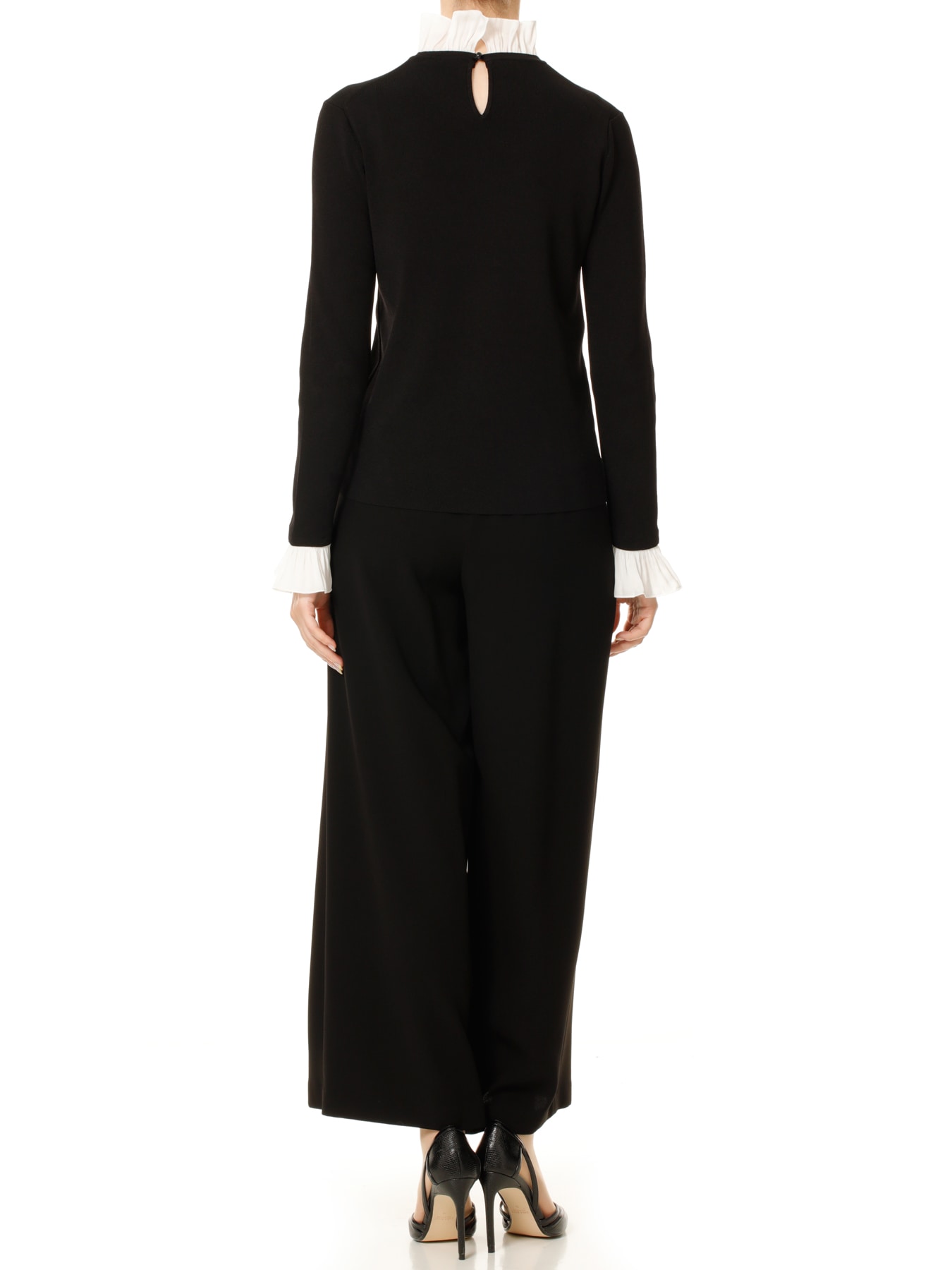 襟と袖口に施された取り外し可能のプリーツデザインが、エレガントで華やかな雰囲気を添えてくれるニットプルオーバー。バックスタイルはスラッシュ開きがポイントで、布帛のプリーツパーツを取り外してシンプルなニットとして2WAYで着まわしていただける優秀アイテムです。すっきりとコンパクトなシルエットのニットなので、ボリュームのあるスカートと合わせてメリハリを持たせたり、すっきりとパンツと合わせていただくのもお勧めです。 ・襟、袖口取り外し可能プリーツ付き ・ご家庭で手洗い可能。衿、袖別布プリーツパーツは取り外してそれぞれ単品洗いをお勧めします。 ・バックスラッシュ開き ・ジャストフィット。通常サイズをお勧めします。 【お問い合わせ品番】 F738-602