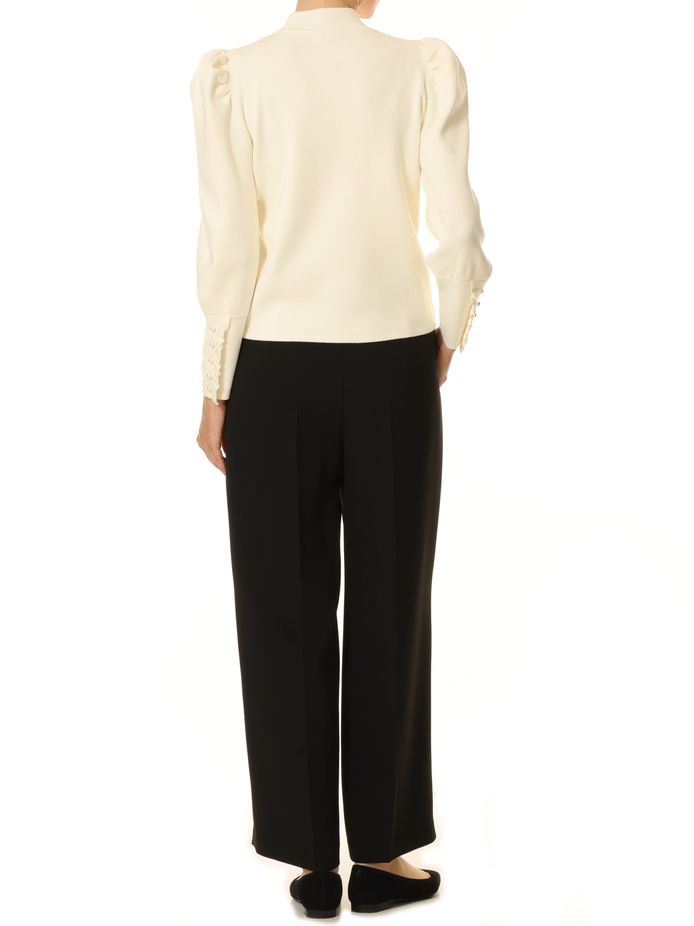 袖口に並んだパールボタンとフリル、膨らみのあるパフスリーブが女性らしさを強調させてくれるニットプルオーバー。ややゆとりのあるシルエットとハイネックによって抜け感が生まれ、パンツスタイルともバランスよくスタイリングいただけます。シンプルながらもパールボタンのアクセントにより上品なスタイルへと昇華させてくれるニットは、オフィススタイルにも重宝いただけます。 ・ご家庭で手洗い可能 ・OFF WHITEは透け感あり ・ボタン部分にアイロンをあてますと、傷が入る可能性がございますので、御注意ください。 ・ジャストフィット。通常サイズをおすすめします。 ・(CHARCOAL GRAY)モデル身長171cm/バスト82cm/ウエスト60cm/ヒップ88cm/36サイズ着用 ・(OFF WHITE)モデル身長173cm/バスト85cm/ウエスト62cm/ヒップ90cm/38サイズ着用 【お問い合わせ品番】 F743-007