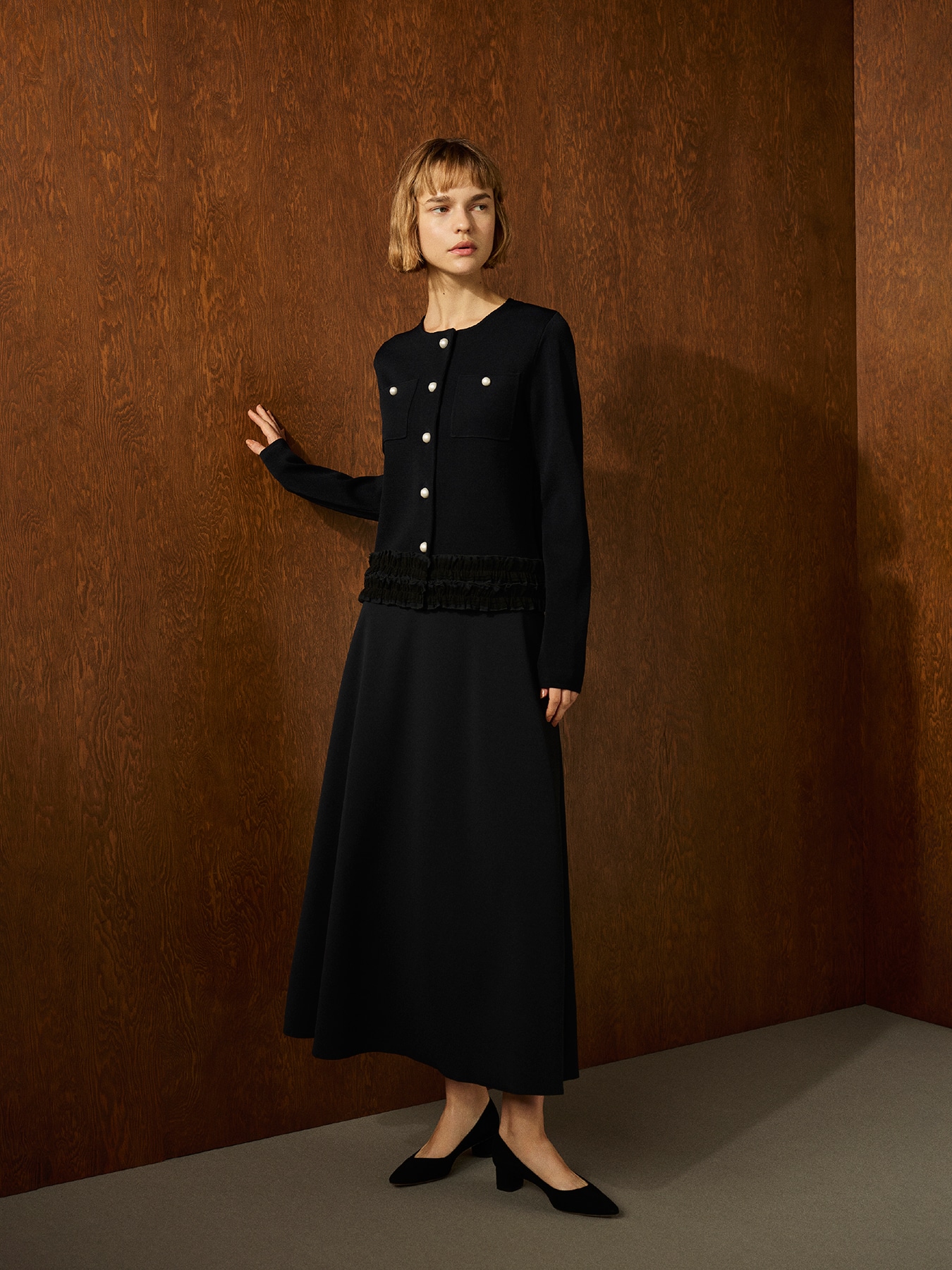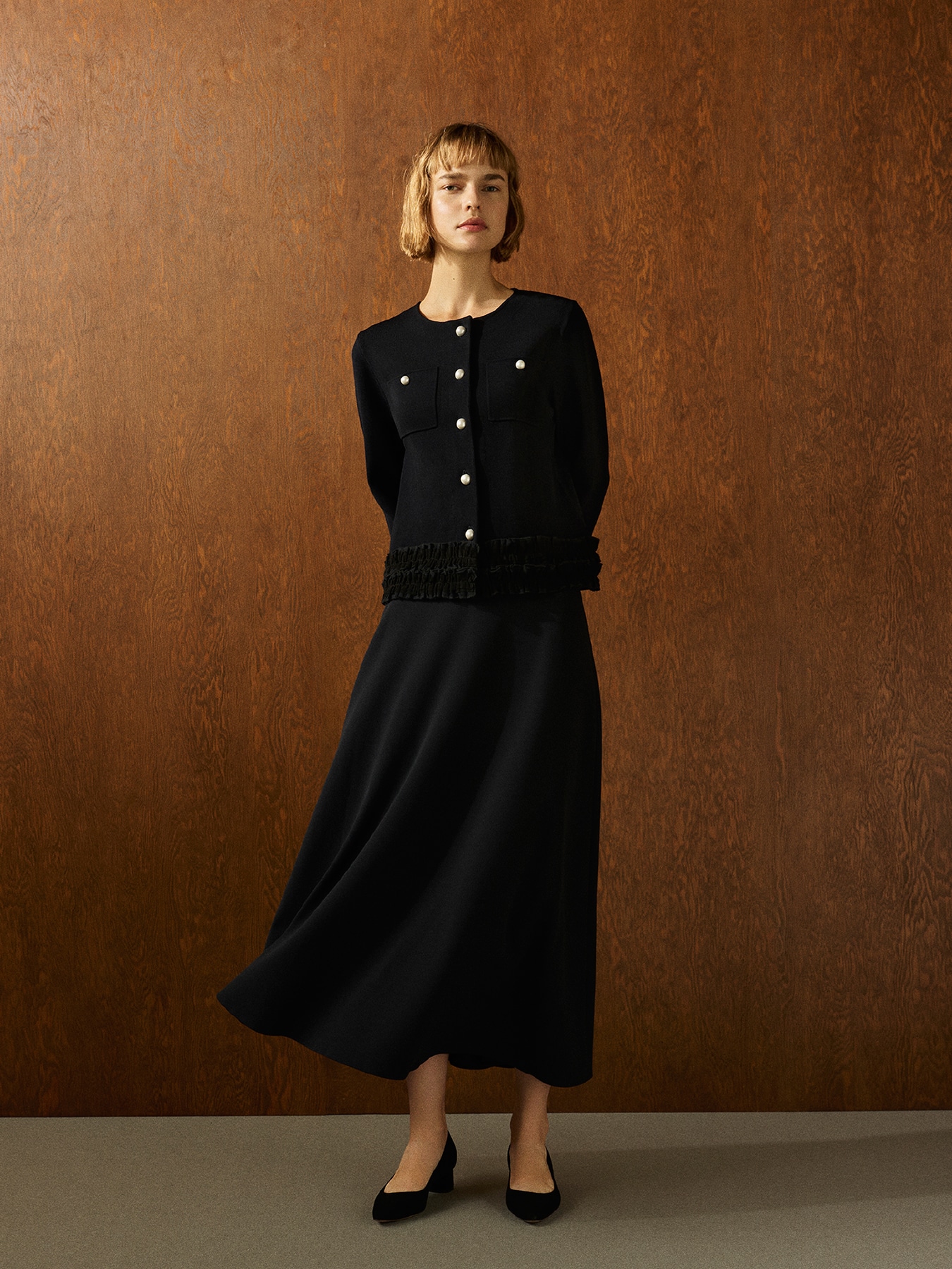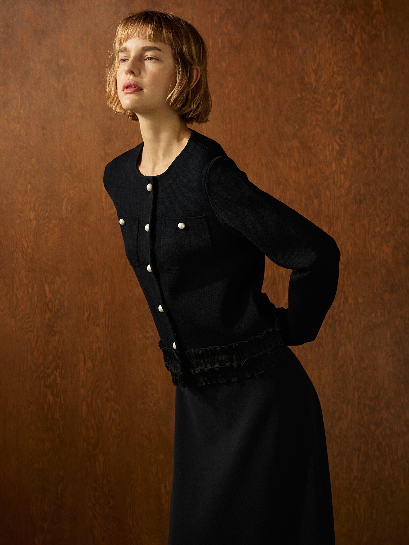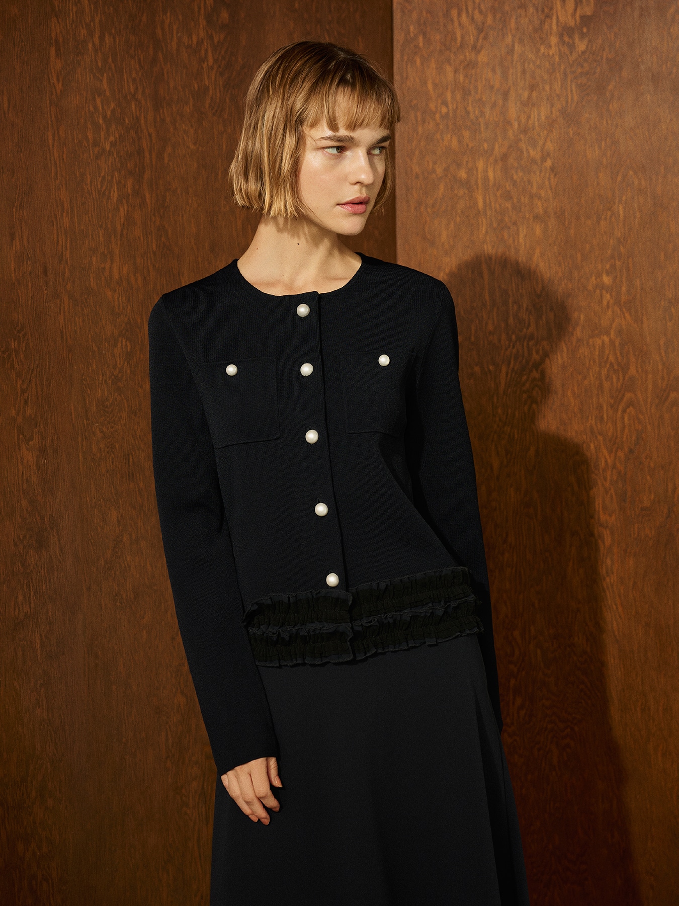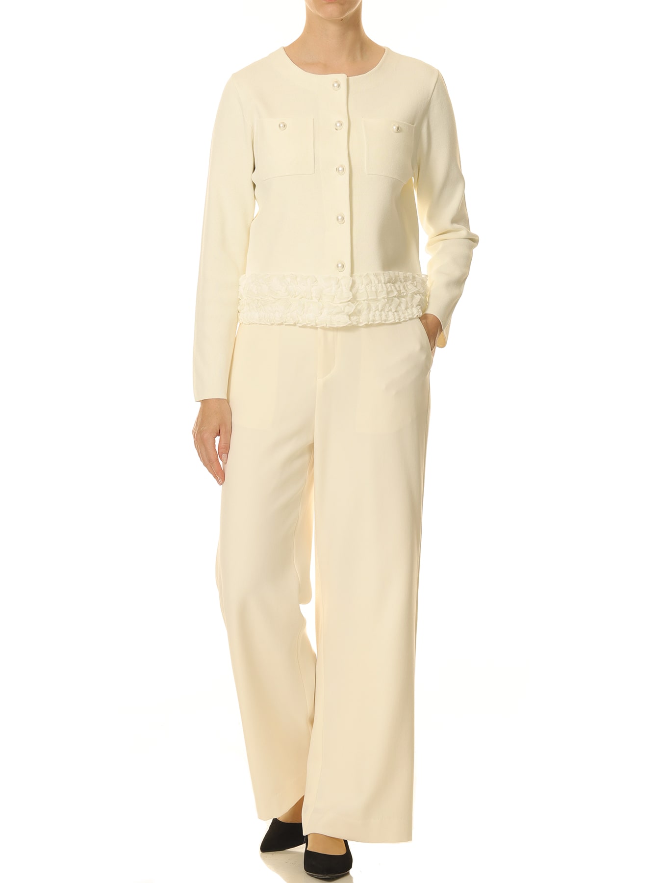 パールボタンフリルニットジャケット