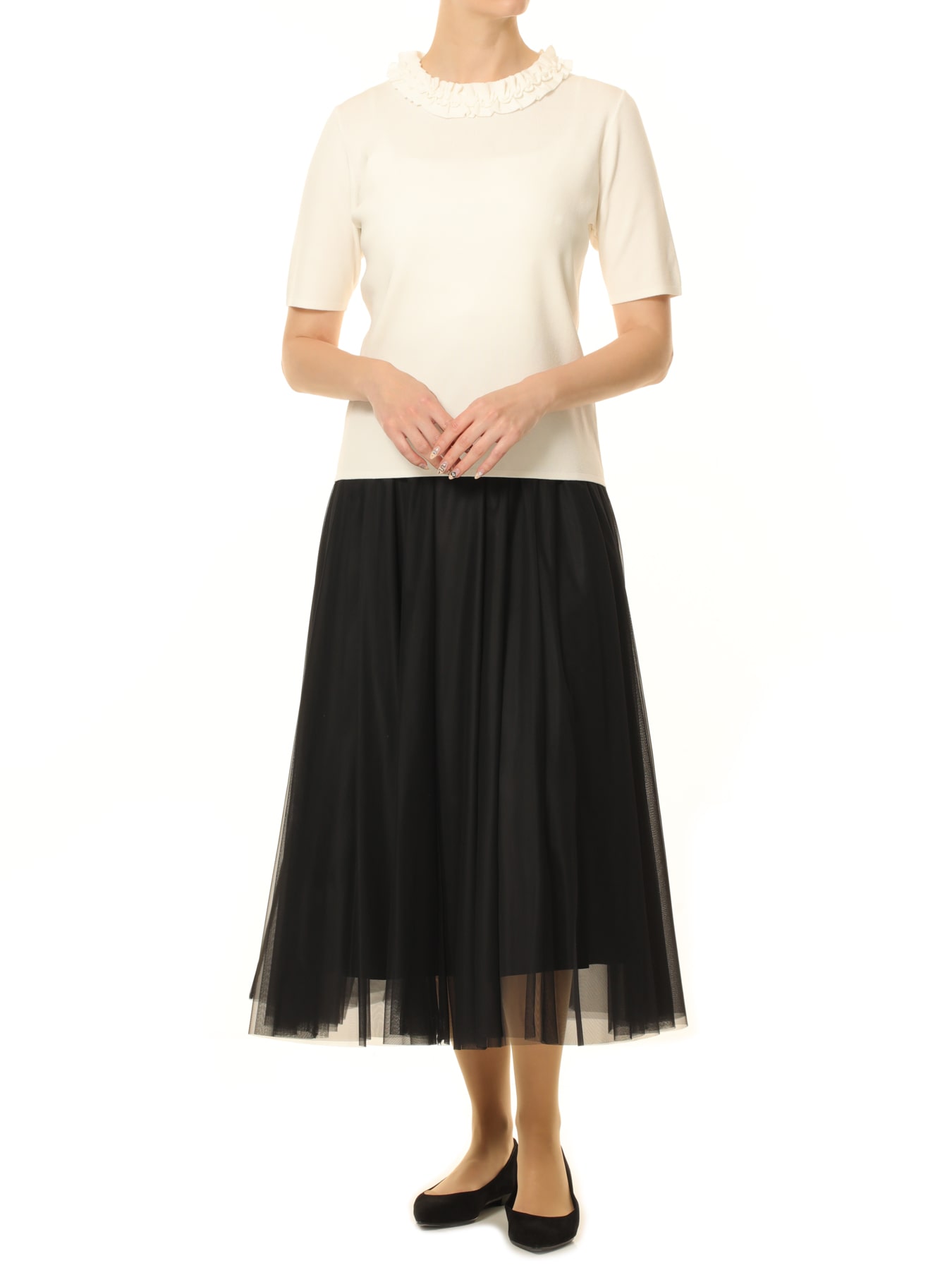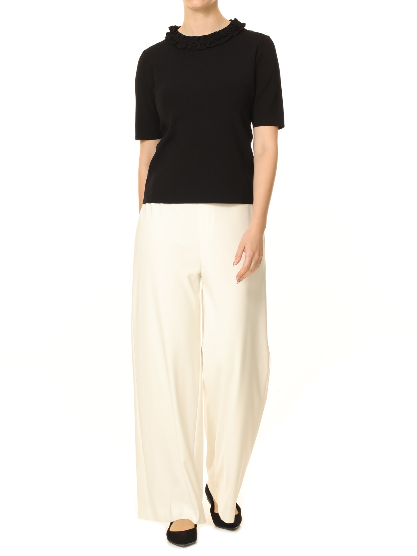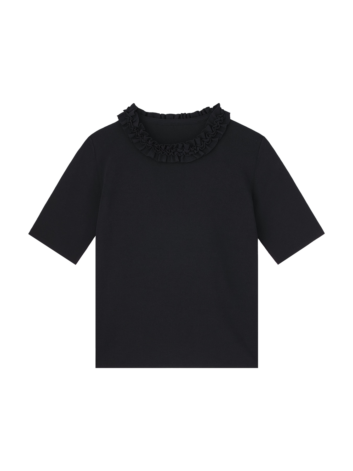 フリルネックハーフスリーブニットプルオーバー