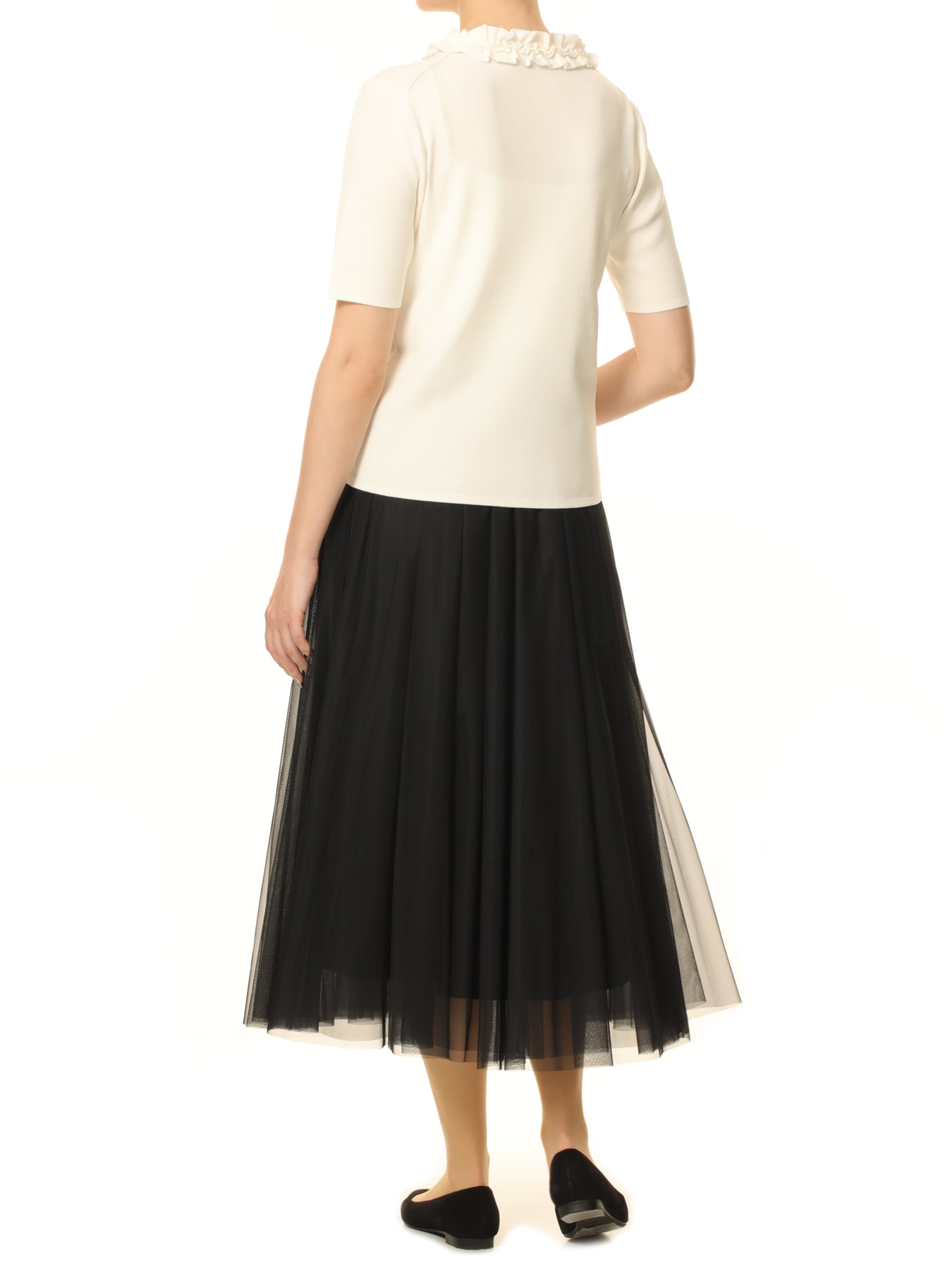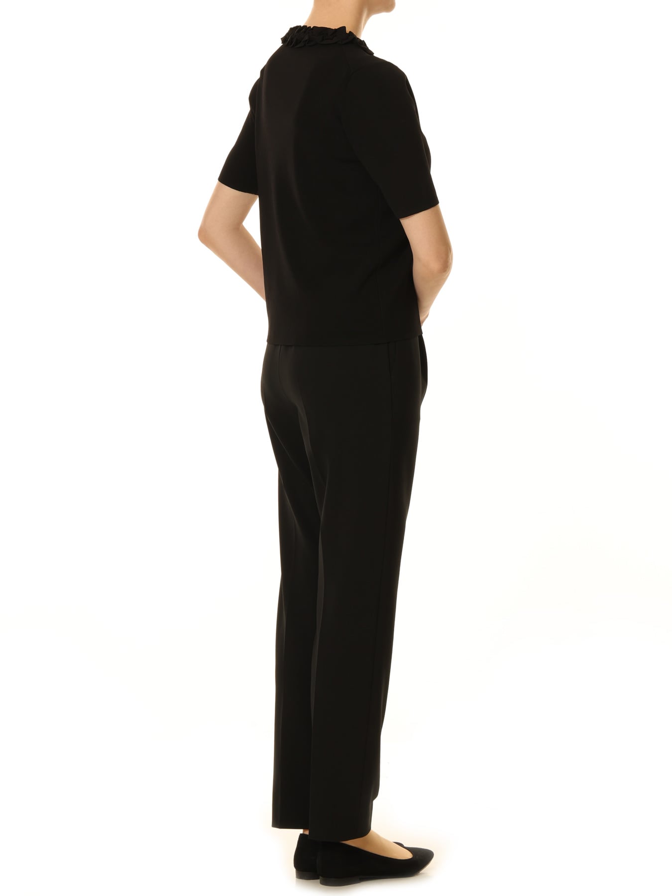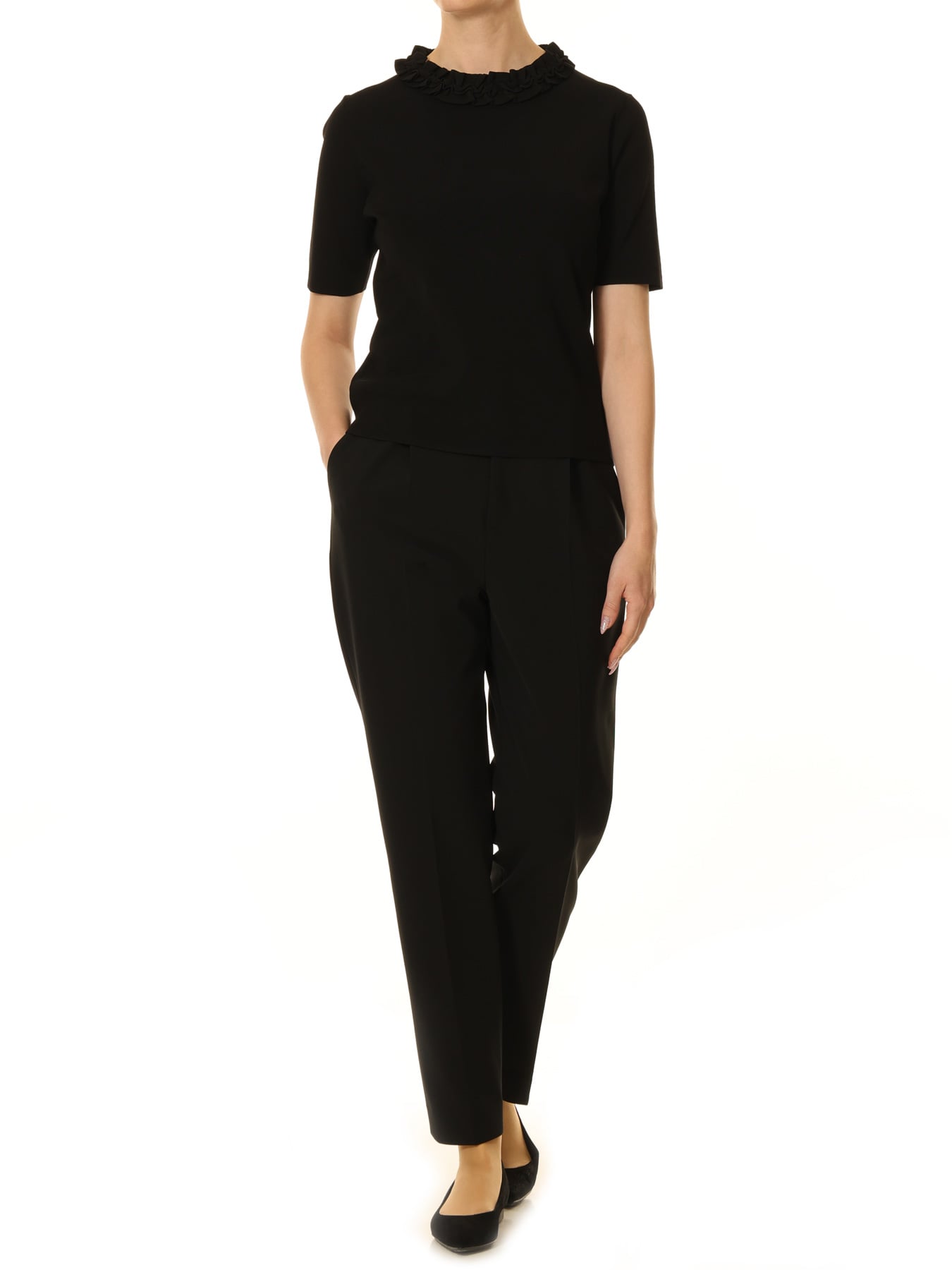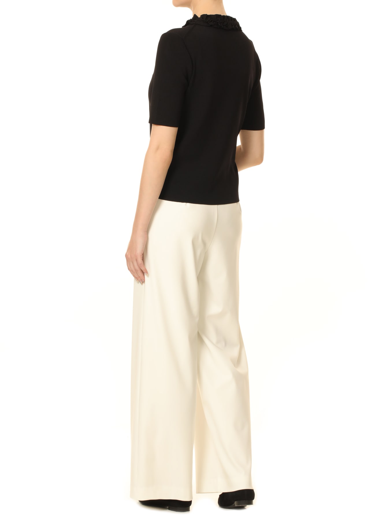 フリルネックハーフスリーブニットプルオーバー