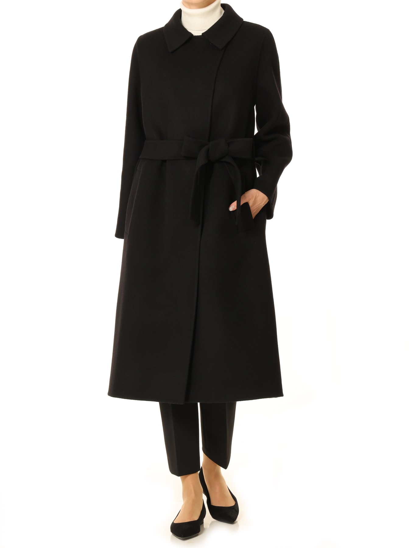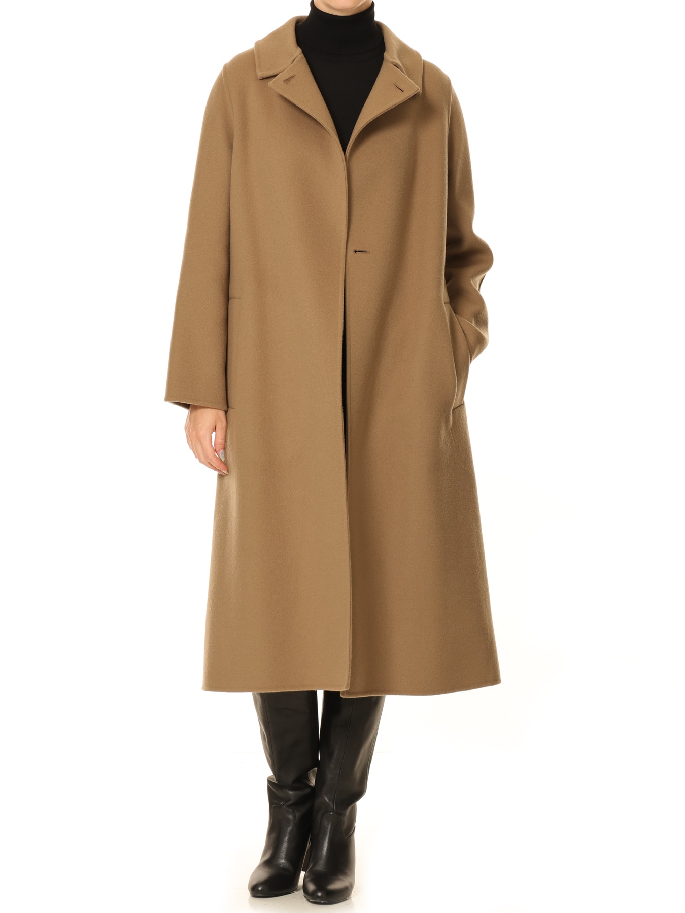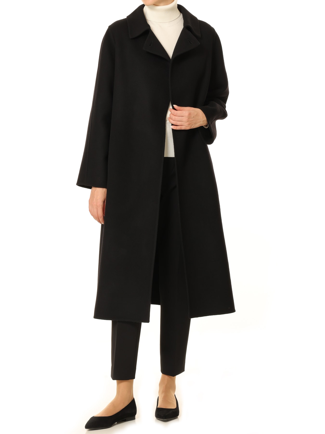 1943年の創業以来、イタリアをリードするテキスタイルメーカー、MANTECO(マンテコ)社のピュア・バージン・ウールのヘビーウェイトでリッチな素材を使用したロングコート。二重構造と綾織りで織られた生地を、染色された後、MANTECOの特徴である「BIFLP」仕上げで表面と裏面の両方を丹念に仕上げることでエレガントで密度の高い毛並みの美しい表面感が生まれ、ドレープ性のあるソフトな手触りの最高級の生地です。クラシカルなステンカラーが大人の女性らしい品格のある印象を与えてくれます。裏地の無いリバー仕立てなので、ロング丈でも重厚感が出ることなく、上質なオーラを纏います。フロントは襟端にのみボタンを施したデザインで、さっと羽織ったりベルトでマークするだけでもこなれた雰囲気が漂うスタイリングへと導きます。最高級の生地を使用したベーシックなデザインのコートはタイムレスに活躍し、一枚は持っておきたいアイテム。 ・同素材のベルトあり ・身頃は裏地なしのリバー縫製 ・袖にのみ裏地あり ・ポケットあり ・ややゆとりのあるフィット。通常サイズをお勧めします。 ・重量約1260g ・モデル身長173cm/バスト85cm/ウエスト62cm/ヒップ90cm/38サイズ着用 【お問い合わせ品番】 G243-001