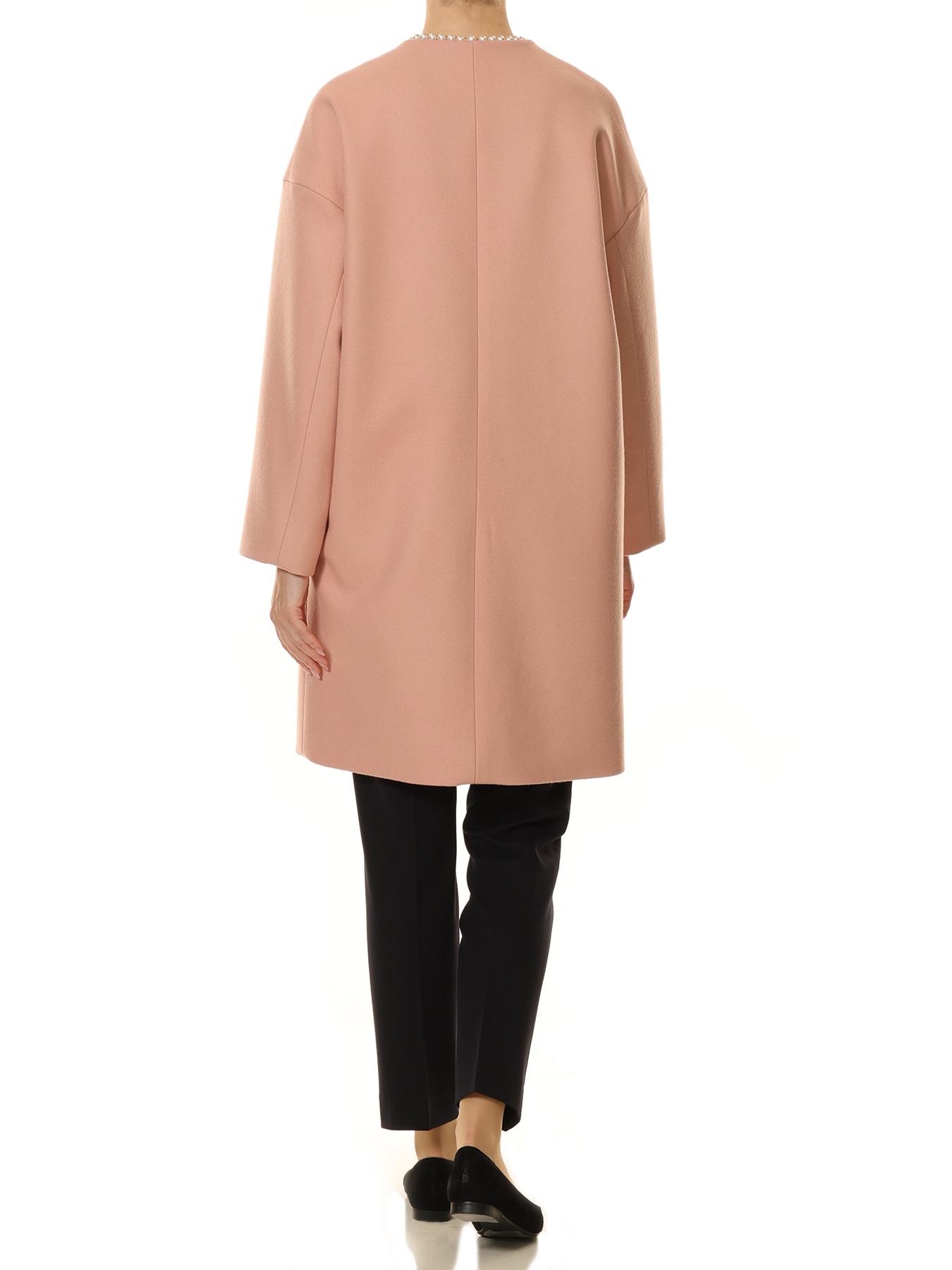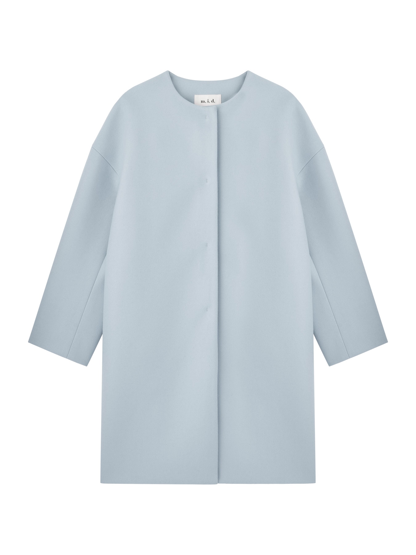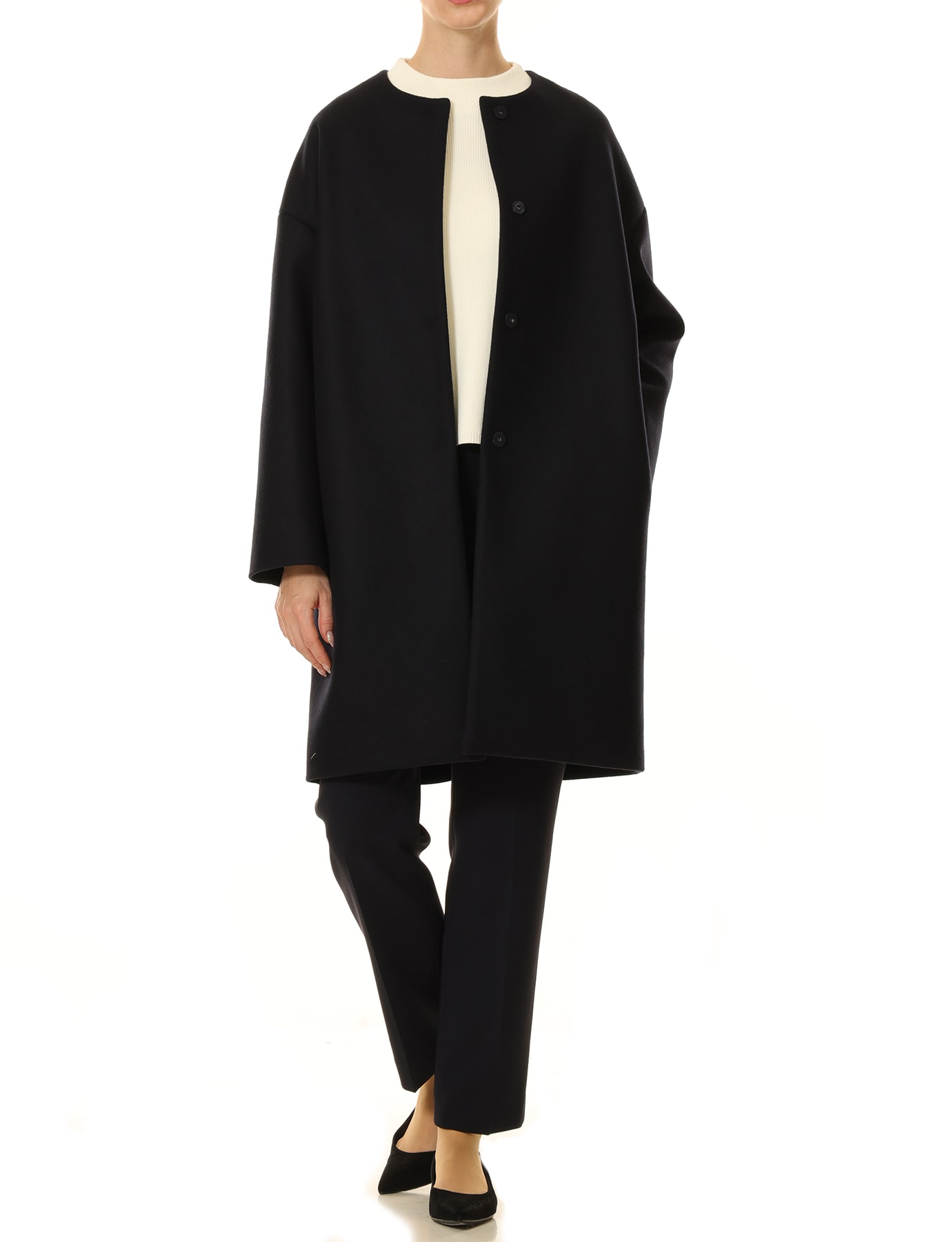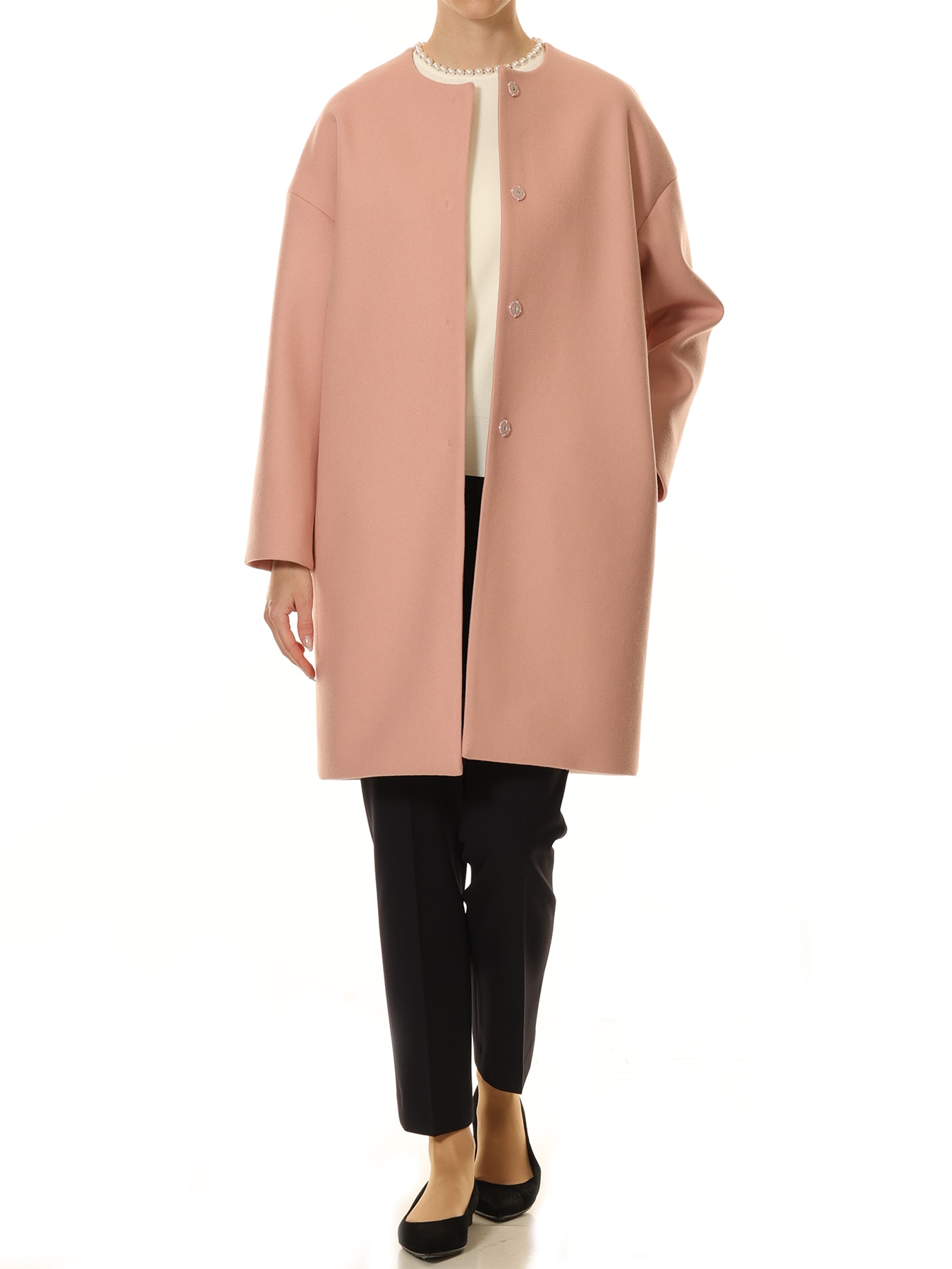 ウール100%のニューイングランドラムメルトン素材を贅沢に使用した、上質感あふれるミドル丈コート。柔らかな風合いとふくらみのある表情が、シンプルなデザインに洗練されたエレガンスを添えます。無駄のないミニマルな仕立ては、羽織るだけで美しいシルエットを描き、どんなスタイルにも自然に溶け込む万能さが魅力。ベーシックカラーに加え、優しいニュアンスを纏えるパステルカラーも取り揃え、気分やシーンに寄り添う一着です。ゆとりのあるシルエットとドロップショルダーによって抜け感も表現された一着は、オンの日は、細身のパンツやタイトスカートと合わせて凛とした品格を演出するスタイリングがおすすめ。すっきりとしたノーカラーデザインが、ブラウスやニットのディテールを引き立て、オフィスシーンでも好印象に。オフの日は、デニムやワイドパンツに合わせて柔らかく軽やかな雰囲気に仕上げると、大人の余裕を感じる洗練スタイルが完成します。特別なお出かけには、ワンピースの上からふんわりと纏うことで、華やかで女性らしいシルエットを叶え、冬の装いをより一層引き立ててくれるアイテムです。 ・裏地あり ・ポケットあり ・フロントスナップボタン開き ・ややゆとりのあるフィット。通常サイズをお勧めします。 ・重量約980g 【お問い合わせ品番】 G246-016