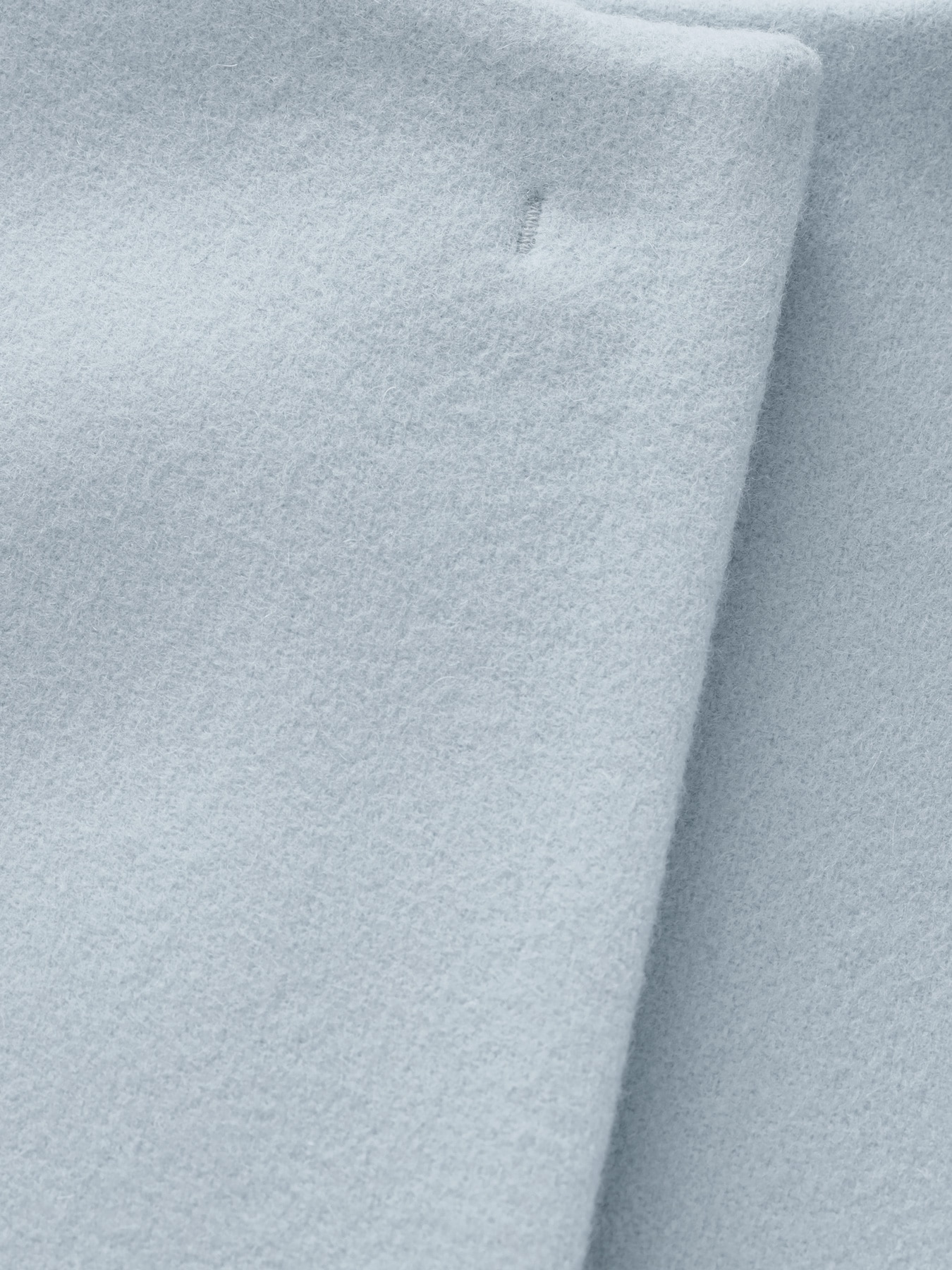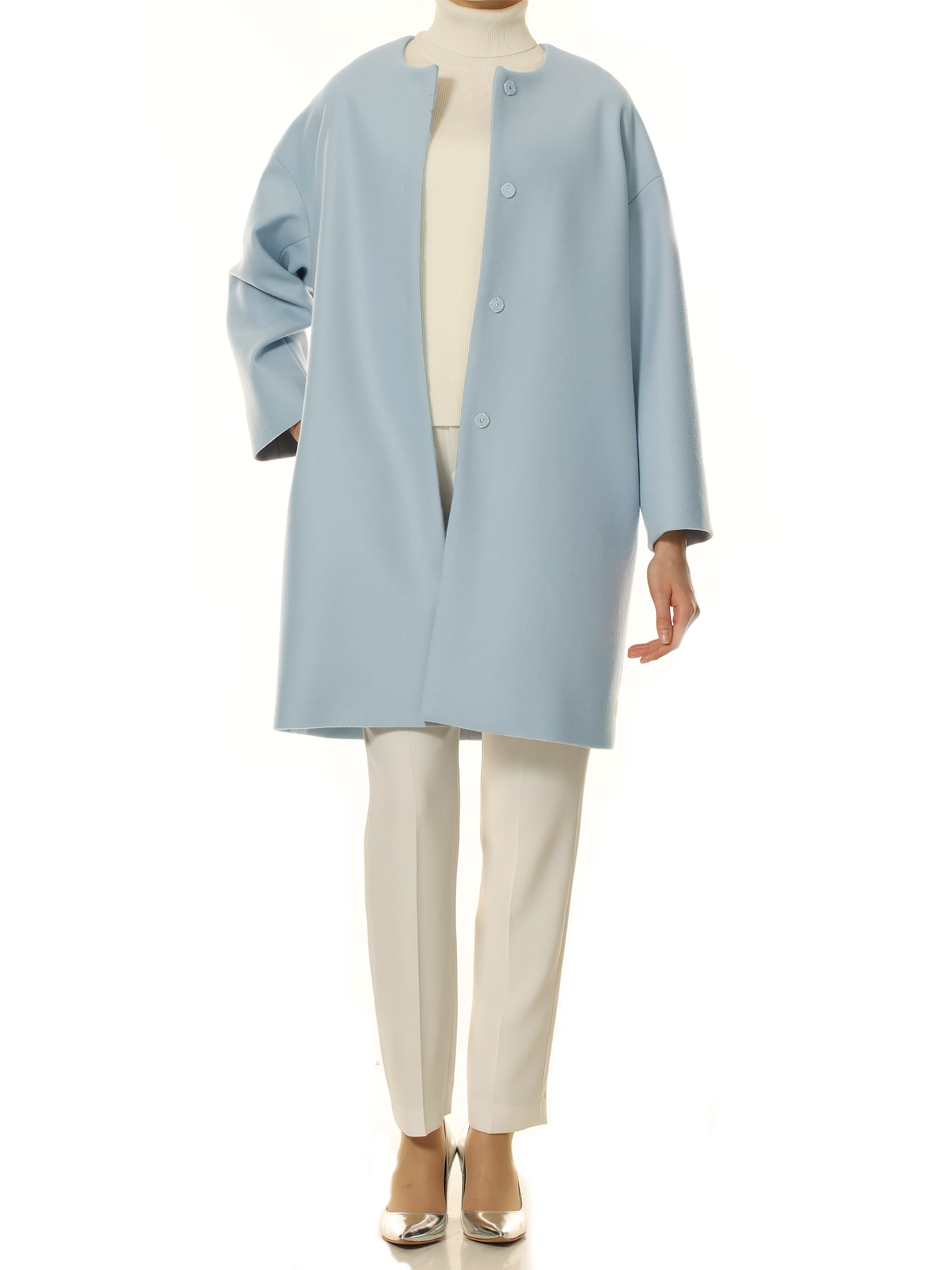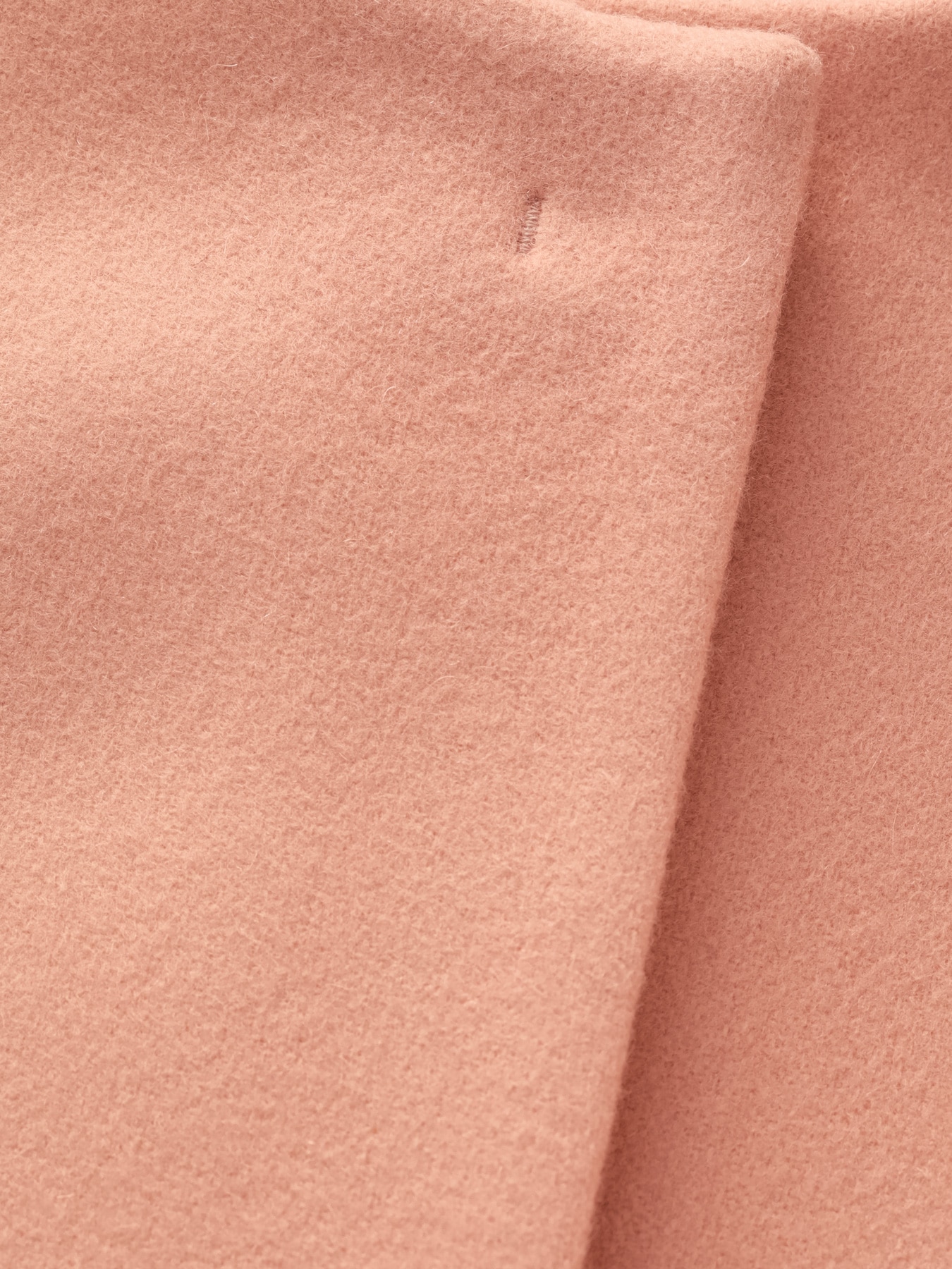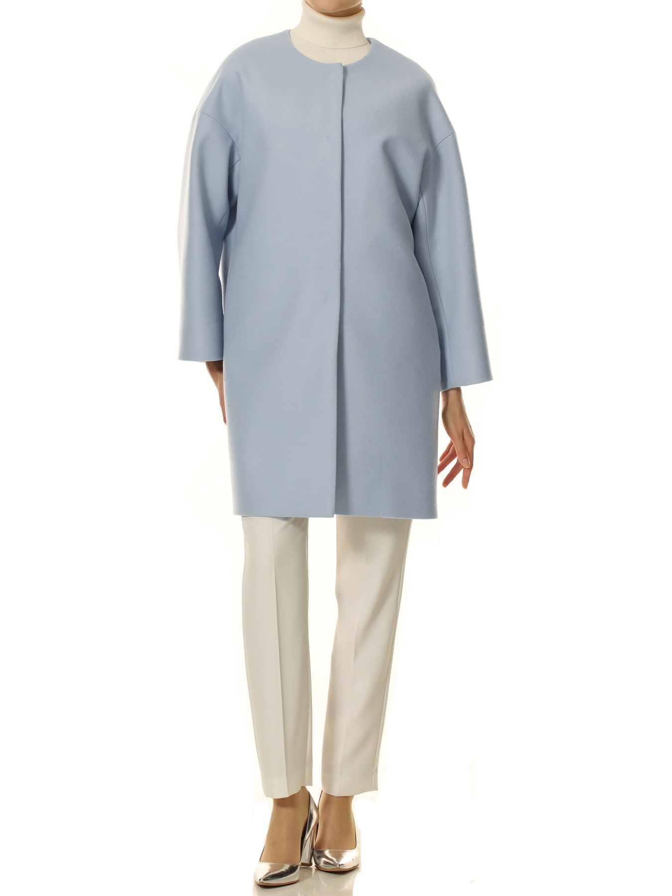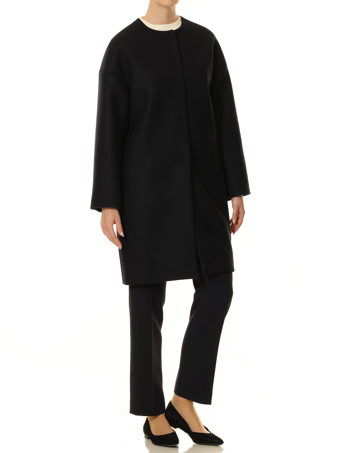 ウール100%のニューイングランドラムメルトン素材を贅沢に使用した、上質感あふれるミドル丈コート。柔らかな風合いとふくらみのある表情が、シンプルなデザインに洗練されたエレガンスを添えます。無駄のないミニマルな仕立ては、羽織るだけで美しいシルエットを描き、どんなスタイルにも自然に溶け込む万能さが魅力。ベーシックカラーに加え、優しいニュアンスを纏えるパステルカラーも取り揃え、気分やシーンに寄り添う一着です。ゆとりのあるシルエットとドロップショルダーによって抜け感も表現された一着は、オンの日は、細身のパンツやタイトスカートと合わせて凛とした品格を演出するスタイリングがおすすめ。すっきりとしたノーカラーデザインが、ブラウスやニットのディテールを引き立て、オフィスシーンでも好印象に。オフの日は、デニムやワイドパンツに合わせて柔らかく軽やかな雰囲気に仕上げると、大人の余裕を感じる洗練スタイルが完成します。特別なお出かけには、ワンピースの上からふんわりと纏うことで、華やかで女性らしいシルエットを叶え、冬の装いをより一層引き立ててくれるアイテムです。 ・裏地あり ・ポケットあり ・フロントスナップボタン開き ・ややゆとりのあるフィット。通常サイズをお勧めします。 ・重量約980g 【お問い合わせ品番】 G246-016