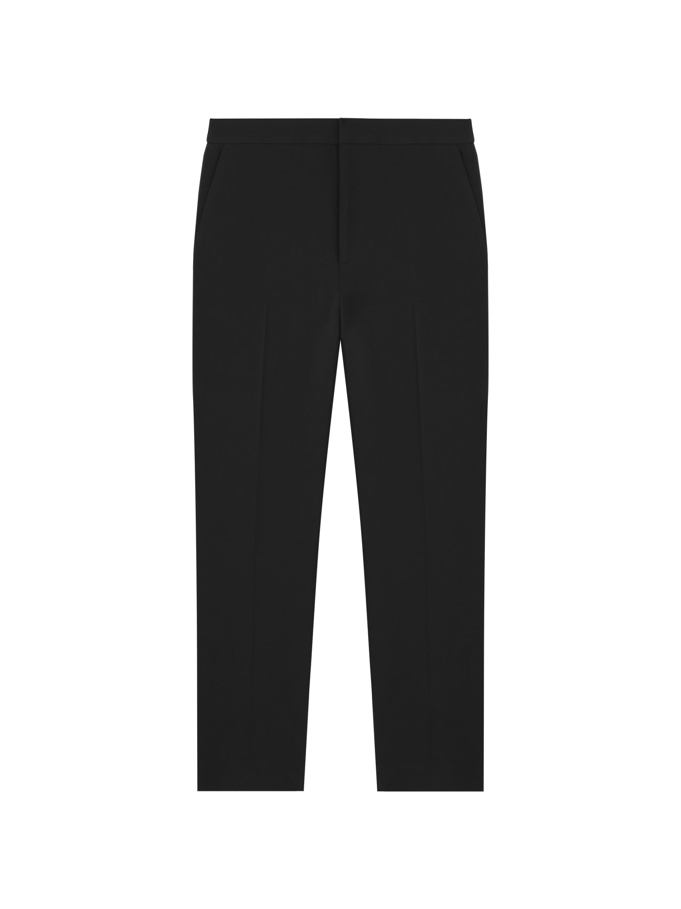 程よいハリ感と滑らかな落ち感を兼ね備えたダブルクロス素材を使用した、エレガントな印象のテーパードパンツ。無駄のないシルエットが脚のラインを美しく見せ、スタイルアップ効果も叶えます。同素材のダブルクロスペプラムブラウス(G546-006)と合わせれば、統一感のあるセットアップスタイルとしてフォーマルな場面にもおすすめ。単品使いでも、ブラウスやニットを合わせることで上品で洗練された着こなしが完成します。 ・ご家庭で手洗い可能 ・バックコンシールファスナー開き ・スチーム可能 ・ジャストフィット。通常サイズをお勧めします。 【お問い合わせ品番】 G546-006