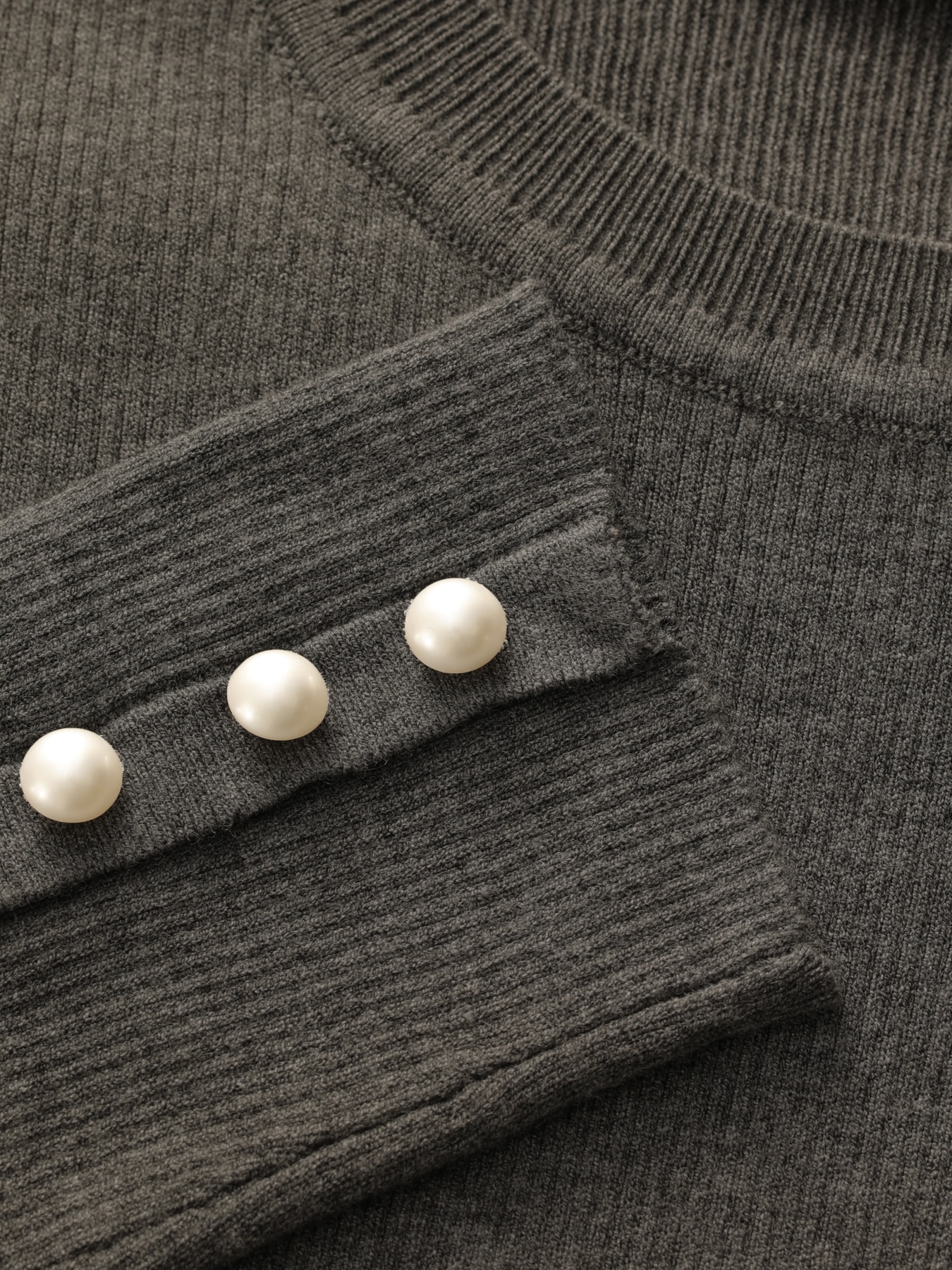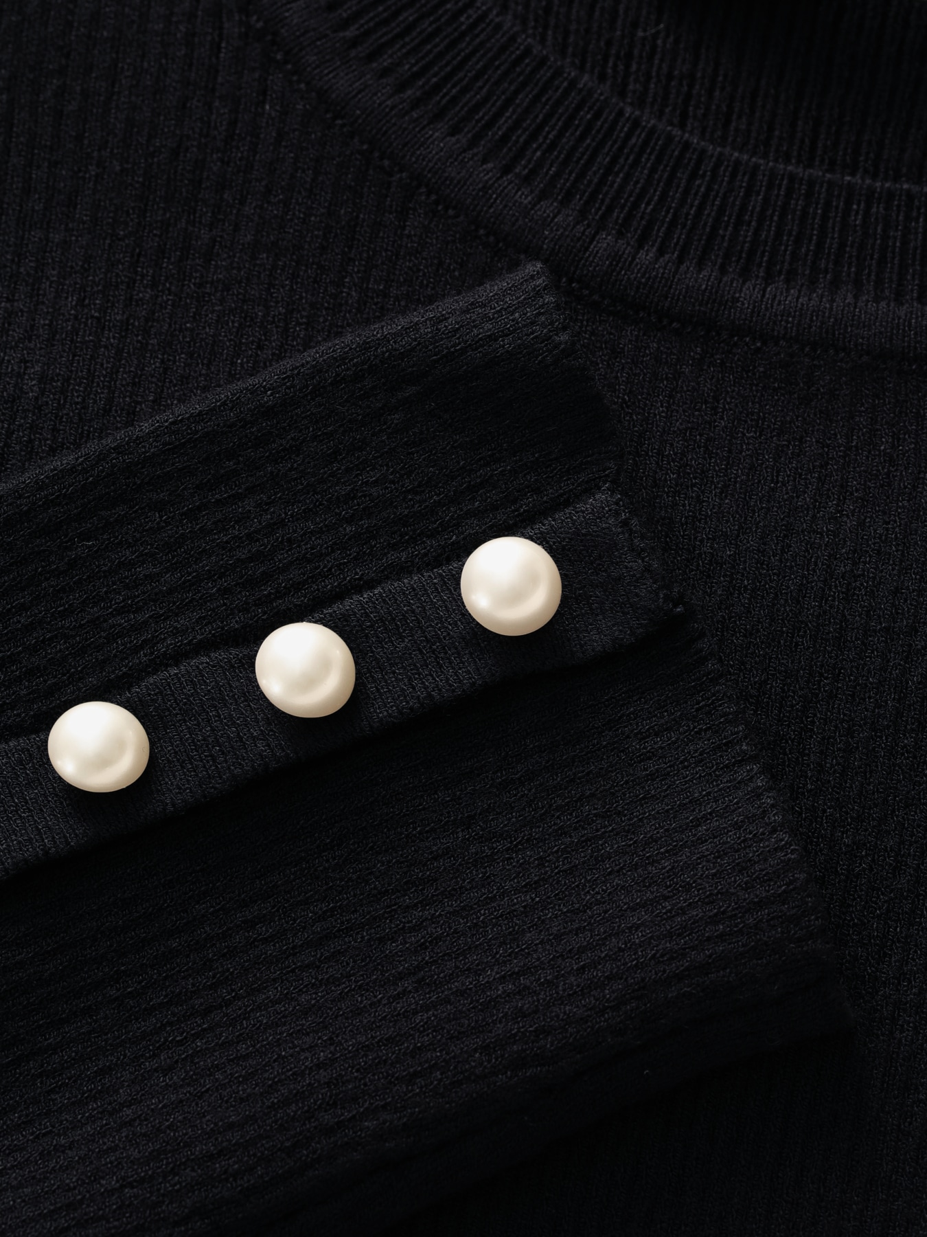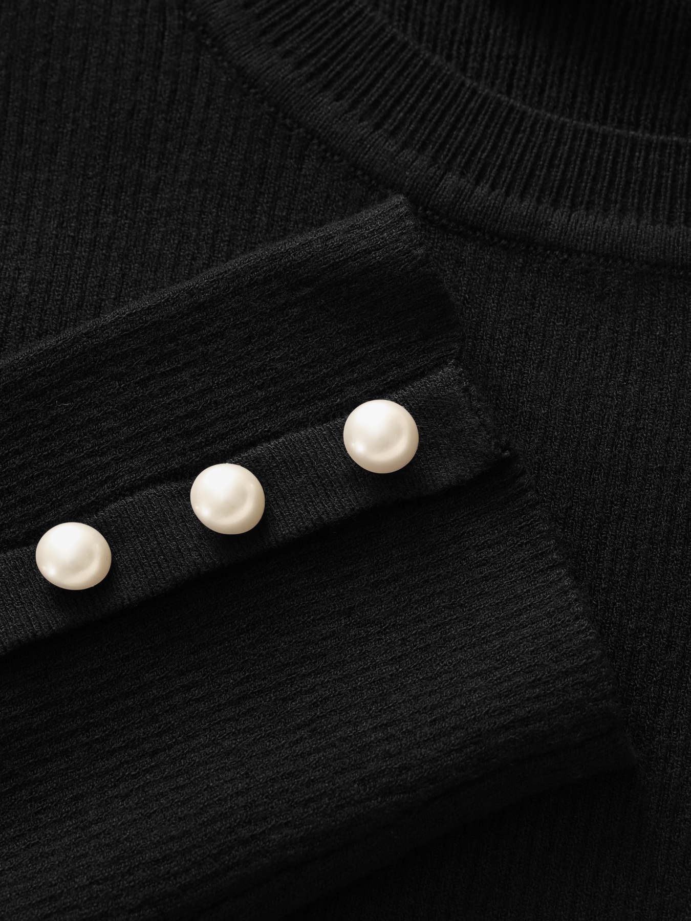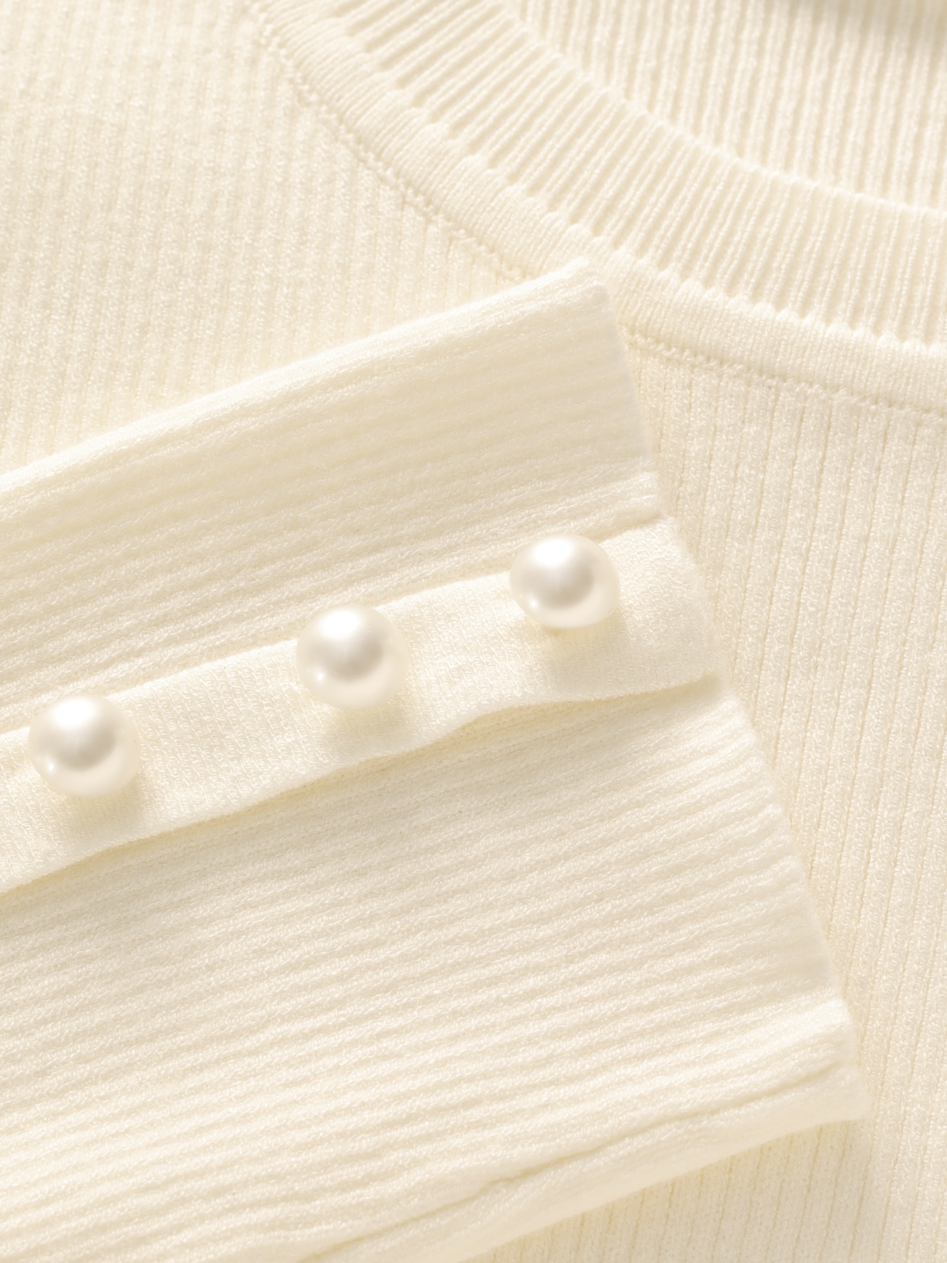 程よいフィット感でボディラインを美しく引き立てるリブニットプルオーバー。シンプルなシルエットに、袖口に並んだパールボタンが華やかなアクセントを添え、上品で洗練された印象を演出します。パンツに合わせれば、すっきりとしたモダンなスタイルに。スカートと合わせれば、フェミニンかつエレガントな着こなしが完成します。オンオフ問わず幅広く活躍し、アクセサリー感覚で装いを格上げしてくれる万能な一枚です。 ・ご家庭で手洗いが可能 ・WHITEは透け感あり ・スチーム可能 ・ジャストフィット。通常サイズをお勧めします。 【お問い合わせ品番】 G746-001