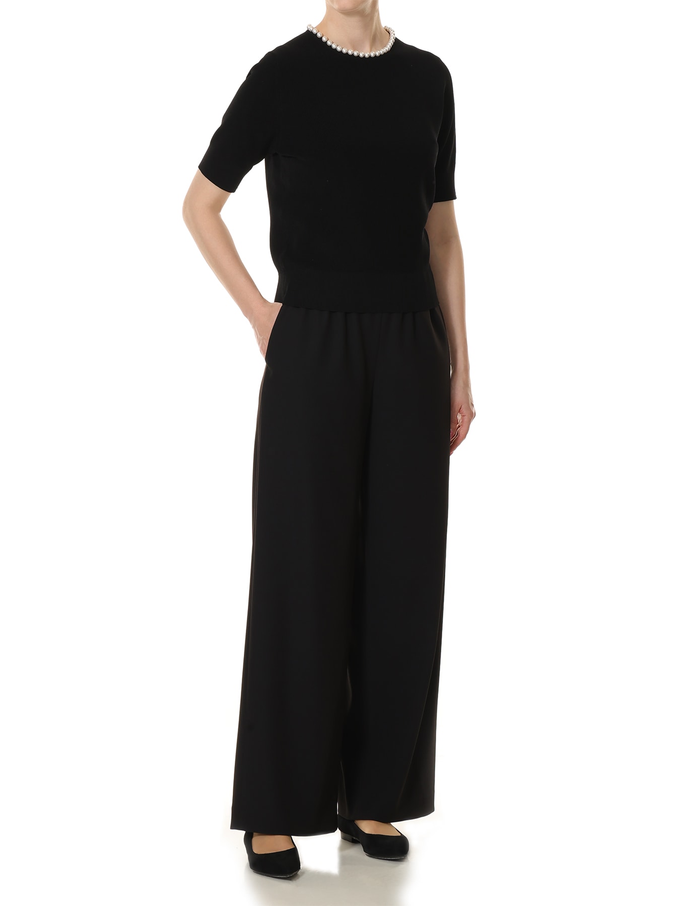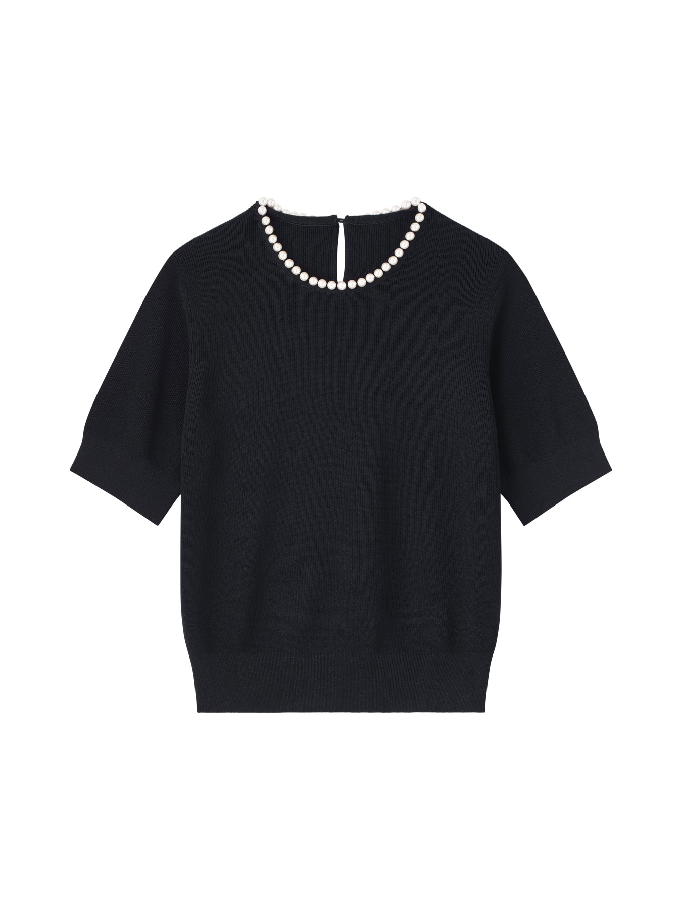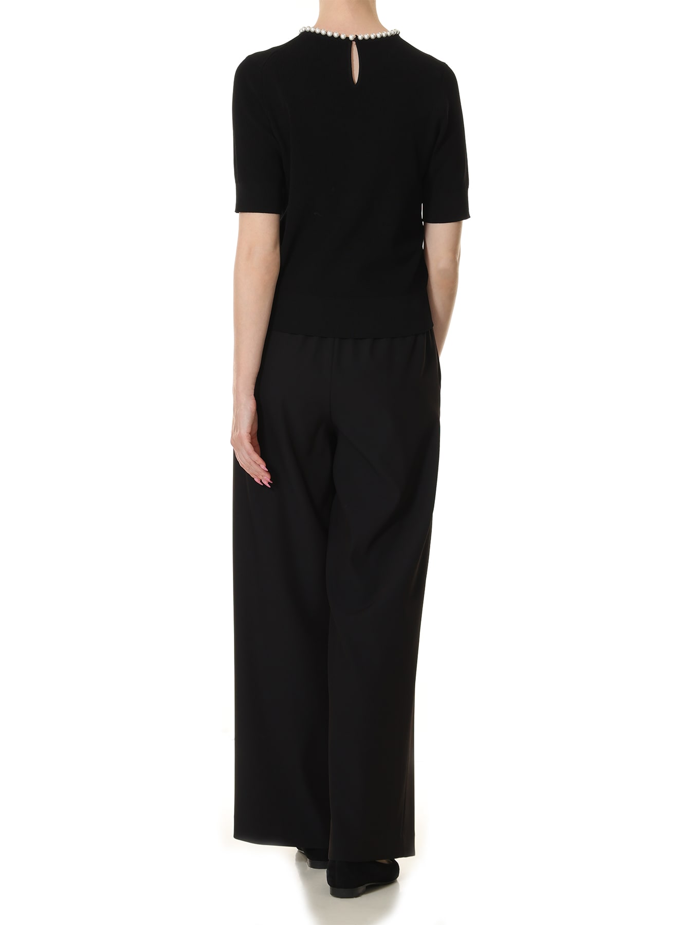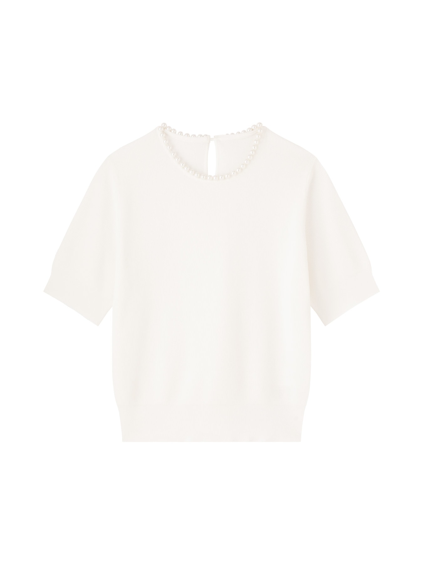 上品なパールディテールが目を引く、エレガントなニットプルオーバー。襟ぐりにあしらわれたパールが顔まわりを華やかに演出し、アクセサリーいらずで洗練された印象に導きます。コンパクトすぎない程よいシルエットで身体のラインを拾いすぎず、自然に美しく整える一枚です。滑らかで着心地の良いニット素材が、きちんと感とリラックス感をバランスよく両立します。スカートスタイルでは、フレアスカートと合わせることでフェミニンでやわらかな印象に、タイトスカートならきちんと感のある上品なオフィススタイルに仕上がります。パンツスタイルでは、センタープレスパンツと合わせて洗練されたきれいめな装いに、ワイドパンツを合わせることで程よい抜け感のある大人のリラックススタイルに仕上がります。テーパードパンツならバランスよくまとまり、オンシーンも取り入れやすいスタイリングが完成します。一枚で着映えしながら、合わせるボトムによって表情を変える、幅広いシーンで活躍する万能トップスです。 ・ご家庭で手洗いが可能 ・後ろ襟ぐりボタン開き ・WHITEは透け感あり ・スチーム可能 ・ボタン部分にアイロンをあてますと、傷が入る可能性がございますので、ご注意ください。 ・ジャストフィット。通常サイズをおすすめします。 ・モデル身長171cm/バスト82cm/ウエスト60cm/ヒップ88cm/38サイズ着用 【お問い合わせ品番】 G747-003