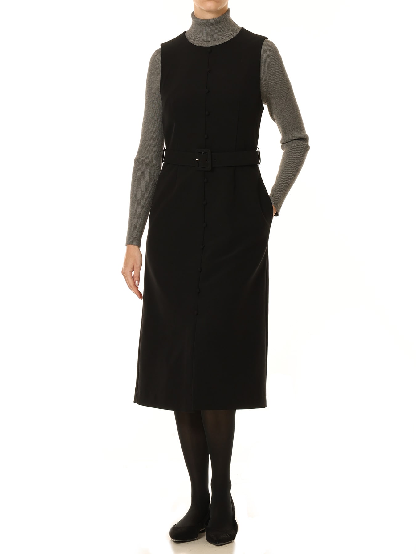 なめらかなダブルクロス素材が描く上品な落ち感に、共布ベルトとフロントに並んだクルミボタンがクラシカルな華やぎを添えるワンピース。身体のラインを拾いすぎない端正なシルエットでありながら、センター裾にスリットを入れることで足さばきが良く、エレガントさと実用性を両立した一枚です。タートルネックやブラウスを重ねたレイヤードも映えるデザインなので、季節に合わせたアレンジも自在。オンシーンではジャケットを羽織って品格のある装いに、休日はニットとのレイヤードで程よい抜け感をプラスした大人のカジュアルにも。品の良さを保ちながら幅広いシーンで活躍する万能なアイテムです。 ・ご家庭で手洗い可能 ・ベルトは取り外しが可能 ・裏地あり ・ポケットあり ・バックコンシールファスナー開き ・ジャストフィット。通常サイズをおすすめします。 【お問い合わせ品番】 G946-002