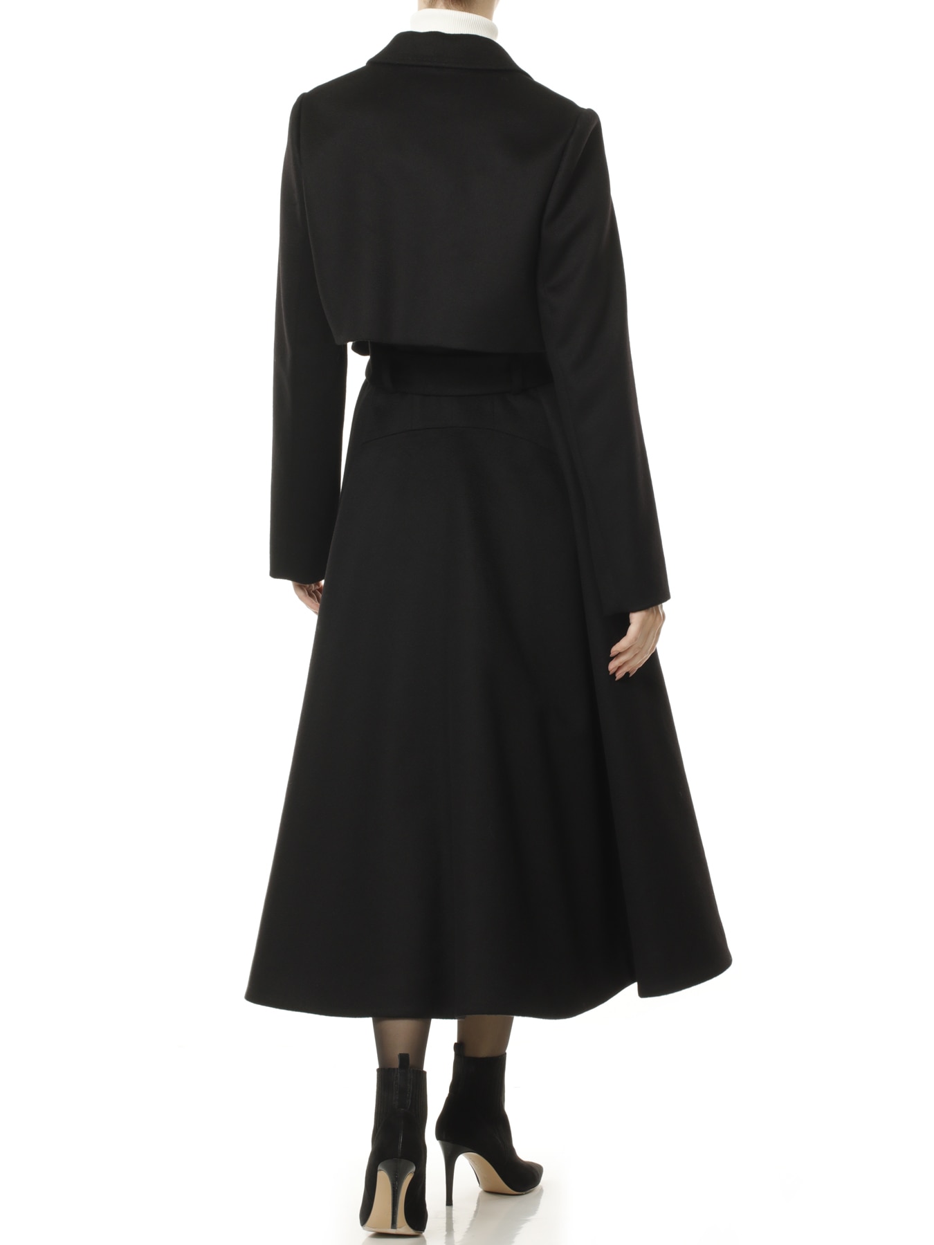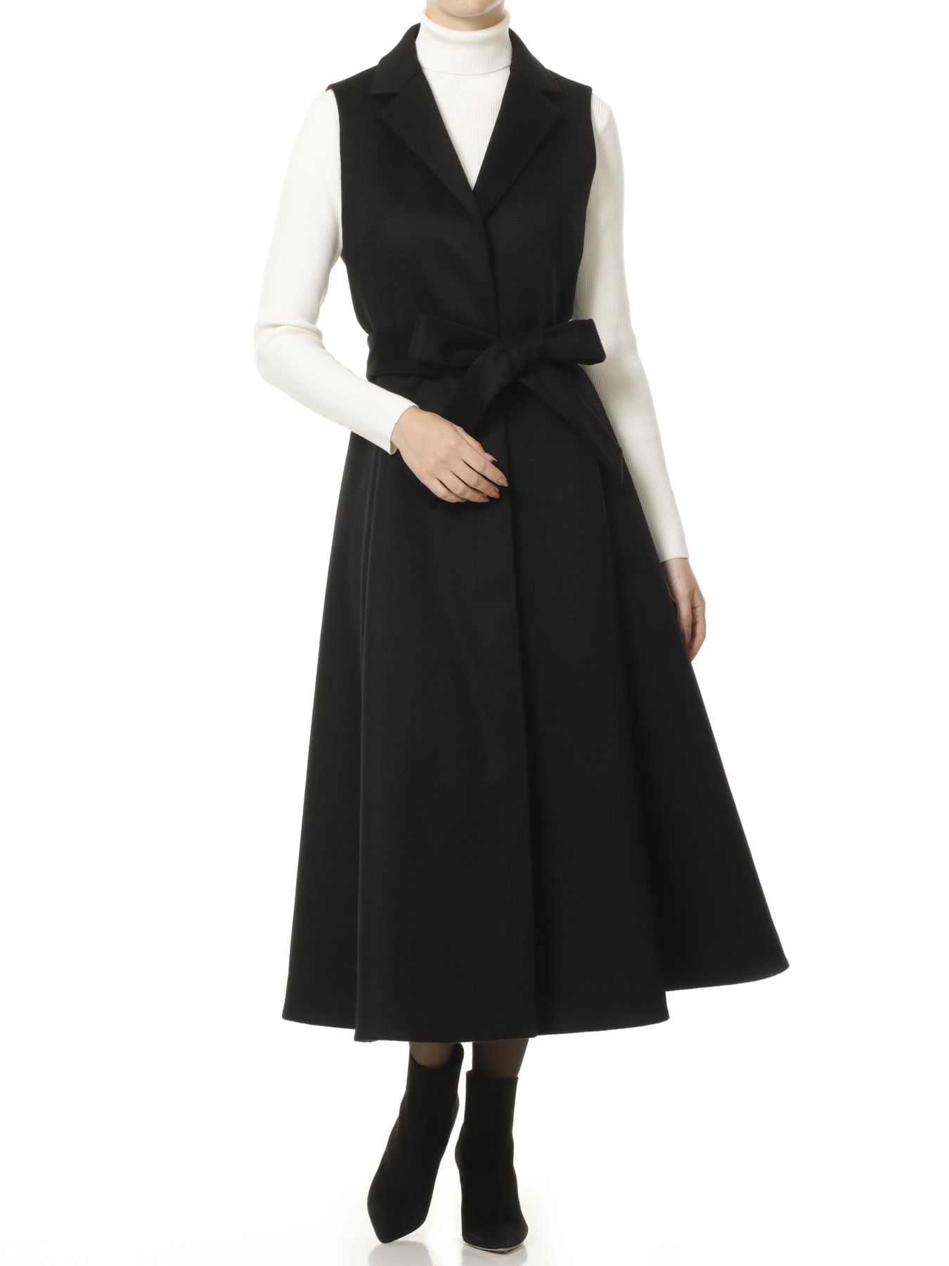 カシミヤを中心とした高級テキスタイルの名門として有名な、イタリアのLUIGI COLOMBO (ルイジ・コロンボ)社のカシミヤ100%の生地を使用したコート。柔らかくしっとりと滑らかな肌触りと美しい光沢をもつ特別感に溢れた一着です。ウエストベルトで作り出すAラインのシルエットは360度どこからみても美しい佇まいが完成します。クラシカルな印象のヨークデザインとハンドステッチを施したり、ボタンにはロゴをあしらったりと細かなディティールにもこだわり、ブラックでも重くならず女性らしさを醸し出してくれます。ジレとしても使用できる2WAYのデザインでスタイリングの幅が広がり、長いシーズンご着用頂けます。 ・ポケットなし ・フロントボタン開き ・裏地付き ・約1430g ・ジャストフィット。通常サイズをおすすめします。 【お問い合わせ品番】 R243-001