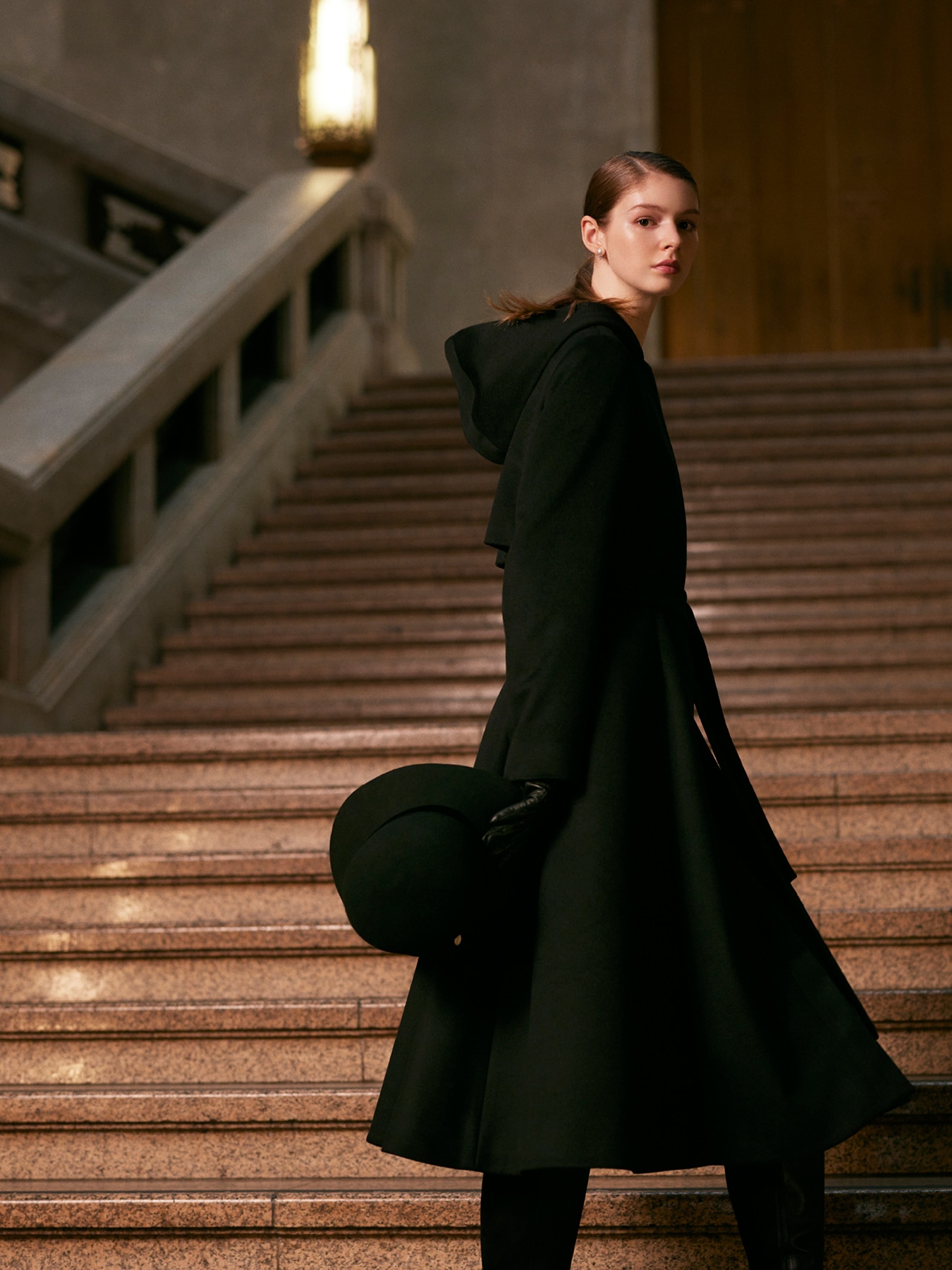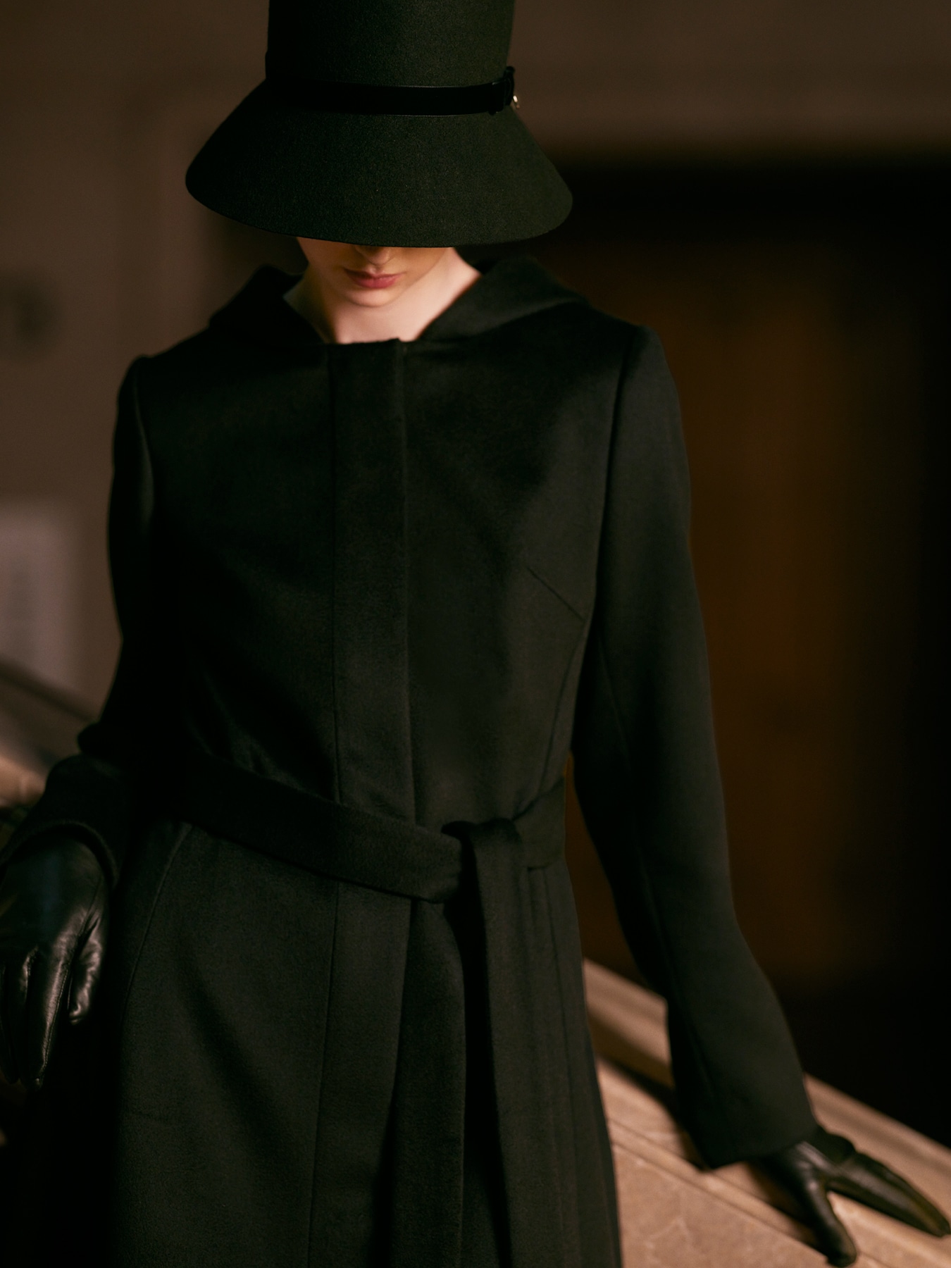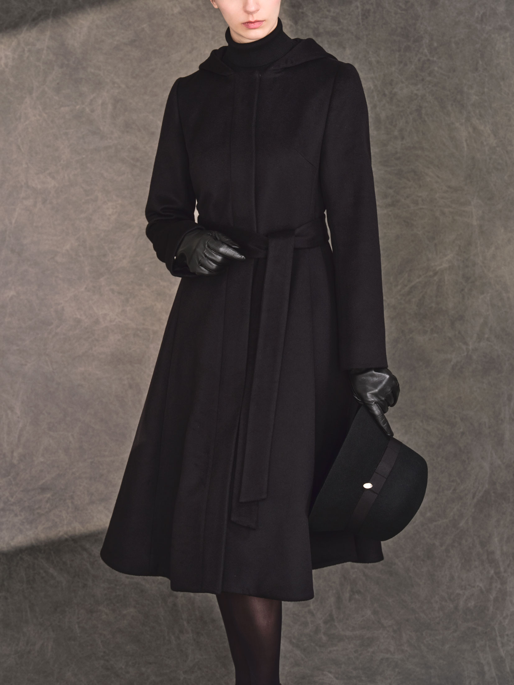 柔らかくしっとりと滑らかな肌触りと美しい光沢をもつカシミヤ100%の生地を使用した特別感に溢れたロングコート。メリハリをつけてくれるウエストベルトとヒップ上部に切替を施すことにより立体的なシルエットを表現してくれ、360度どこからみても美しい佇まいが完成します。肩回りを暖かく包んでくれるボリュームのあるフードと背中部分のトレンチ風ディティールが視線を上にあげてくれ、ロング丈でもバランスがとりやすい一着。またジップアップタイプなのでフロントを開けて羽織った時には縦のラインが強調され、すっきりと洗練された着こなしが完成します。タイムレスに愛用いただける上質なブラックコートは大人の女性なら一着は揃えておきたいアイテムです。 ・ポケットなし ・フロントファスナー開き ・裏地付き ・約1450g ・ジャストフィット。通常サイズをおすすめします。 【お問い合わせ品番】 R243-003