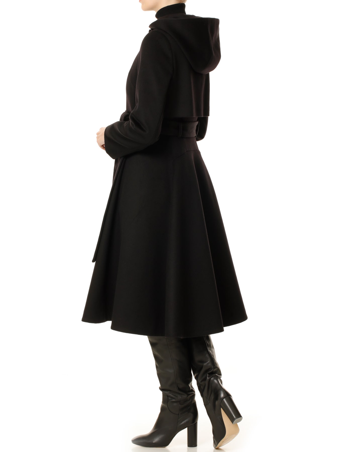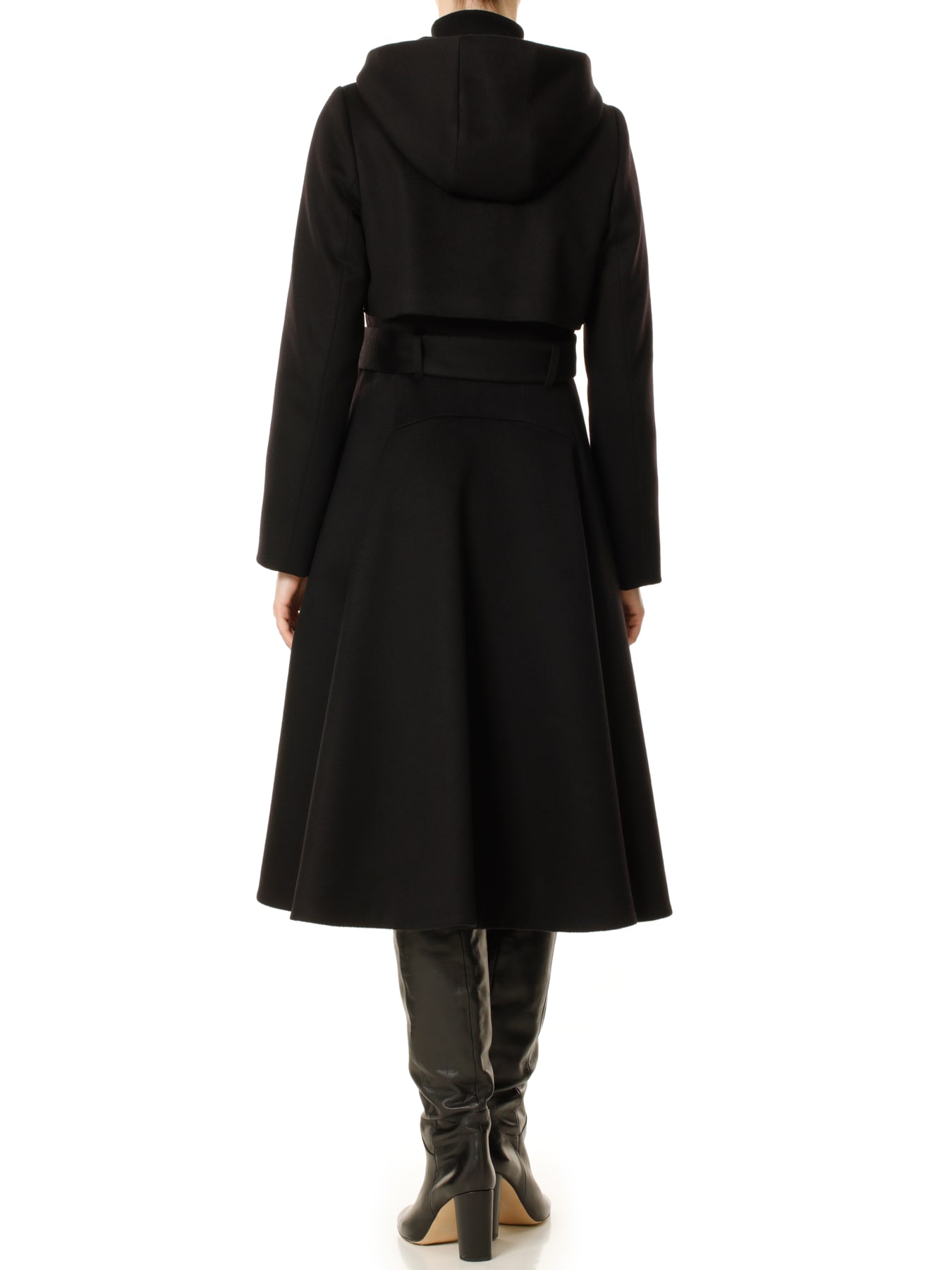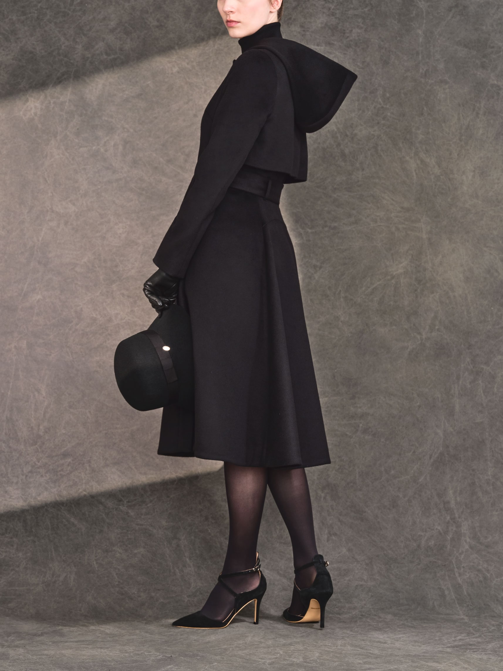 柔らかくしっとりと滑らかな肌触りと美しい光沢をもつカシミヤ100%の生地を使用した特別感に溢れたロングコート。メリハリをつけてくれるウエストベルトとヒップ上部に切替を施すことにより立体的なシルエットを表現してくれ、360度どこからみても美しい佇まいが完成します。肩回りを暖かく包んでくれるボリュームのあるフードと背中部分のトレンチ風ディティールが視線を上にあげてくれ、ロング丈でもバランスがとりやすい一着。またジップアップタイプなのでフロントを開けて羽織った時には縦のラインが強調され、すっきりと洗練された着こなしが完成します。タイムレスに愛用いただける上質なブラックコートは大人の女性なら一着は揃えておきたいアイテムです。 ・ポケットなし ・フロントファスナー開き ・裏地付き ・約1450g ・ジャストフィット。通常サイズをおすすめします。 【お問い合わせ品番】 R243-003