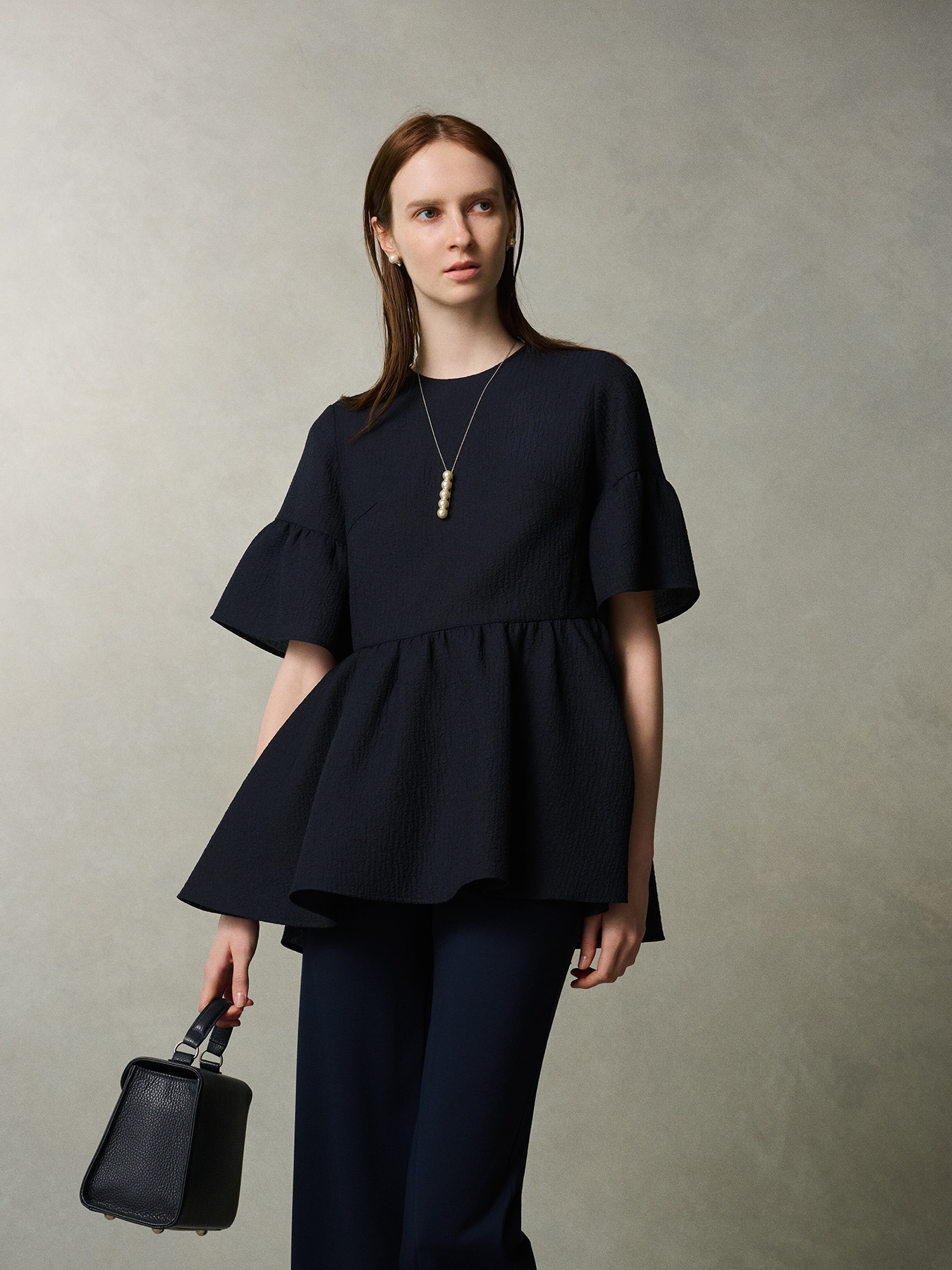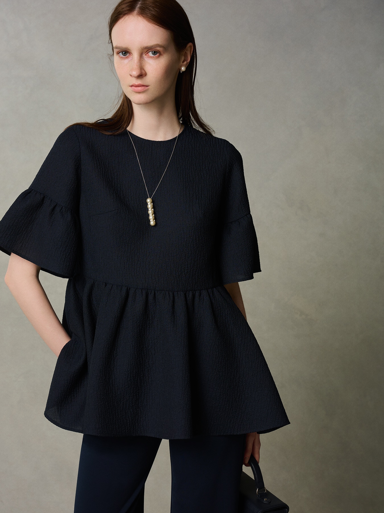 直線のバーに並べられた5つのパールが煌めくネックレス。程良くボリュームがあるのでシンプルなアイテムに合わせるだけで華やかなポイントとなります。長さを調節していただけるデザインなのでスタイリングによってバランスを変えてお召し頂けるところが魅力のひとつです。 ・チェーンはスライダーで調節可能 ・AVENIRETOILEロゴプレート付き 【お問い合わせ品番】 S048-001