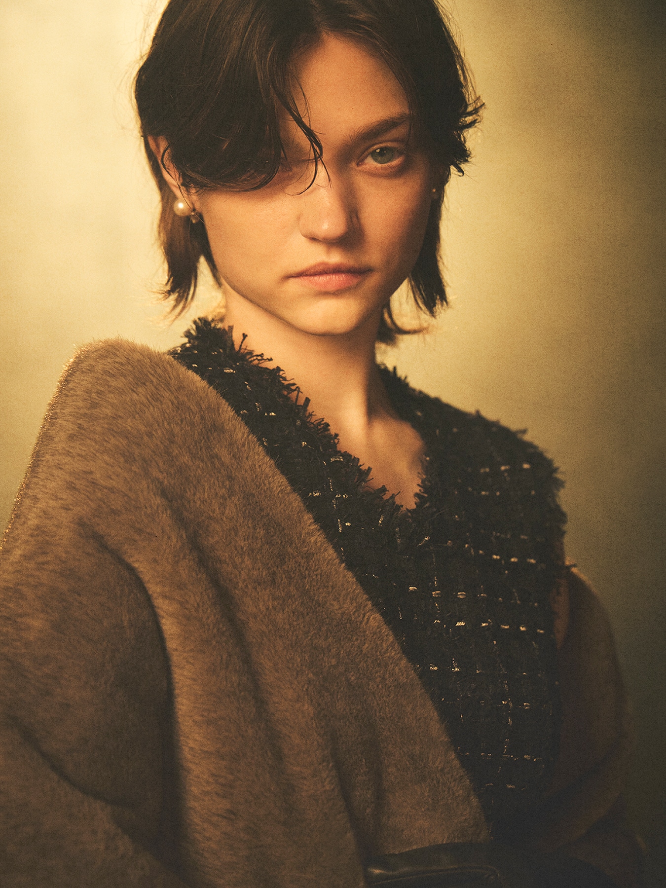ふんわりとした手触りが魅力のエコファーを贅沢に使用した、ボリューム感たっぷりの大判ストール。纏うだけでコーディネートを格上げしてくれる存在感があり、肩に羽織ると優雅なドレープを描き、華やかな印象を演出します。フロントの輪に通してすっきりとまとめたり、さらりと肩に掛けてラフに羽織ったりと、シーンに合わせたスタイリングを楽しめるデザインも魅力です。シンプルなドレスやワンピースに合わせれば、パーティーシーンやディナーなど特別な場にふさわしいエレガントな装いに。コートやパンツスタイルに重ねれば、デイリーコーデに洗練された華やぎを添えてくれます。オンオフ問わず幅広く活躍する、冬のワードローブにプラスしたい一枚です。 ・エコファー使用 【お問い合わせ品番】 S046-005