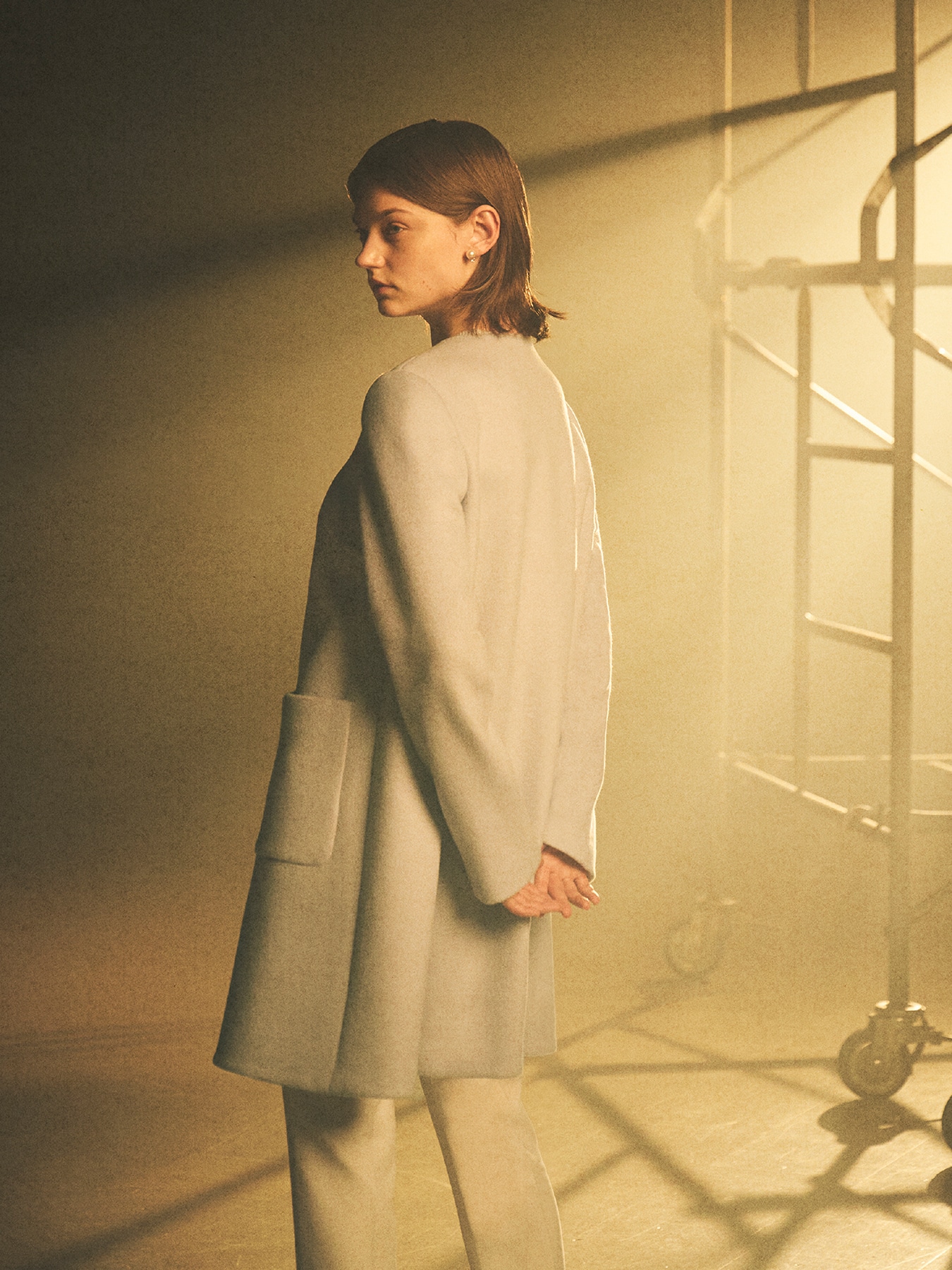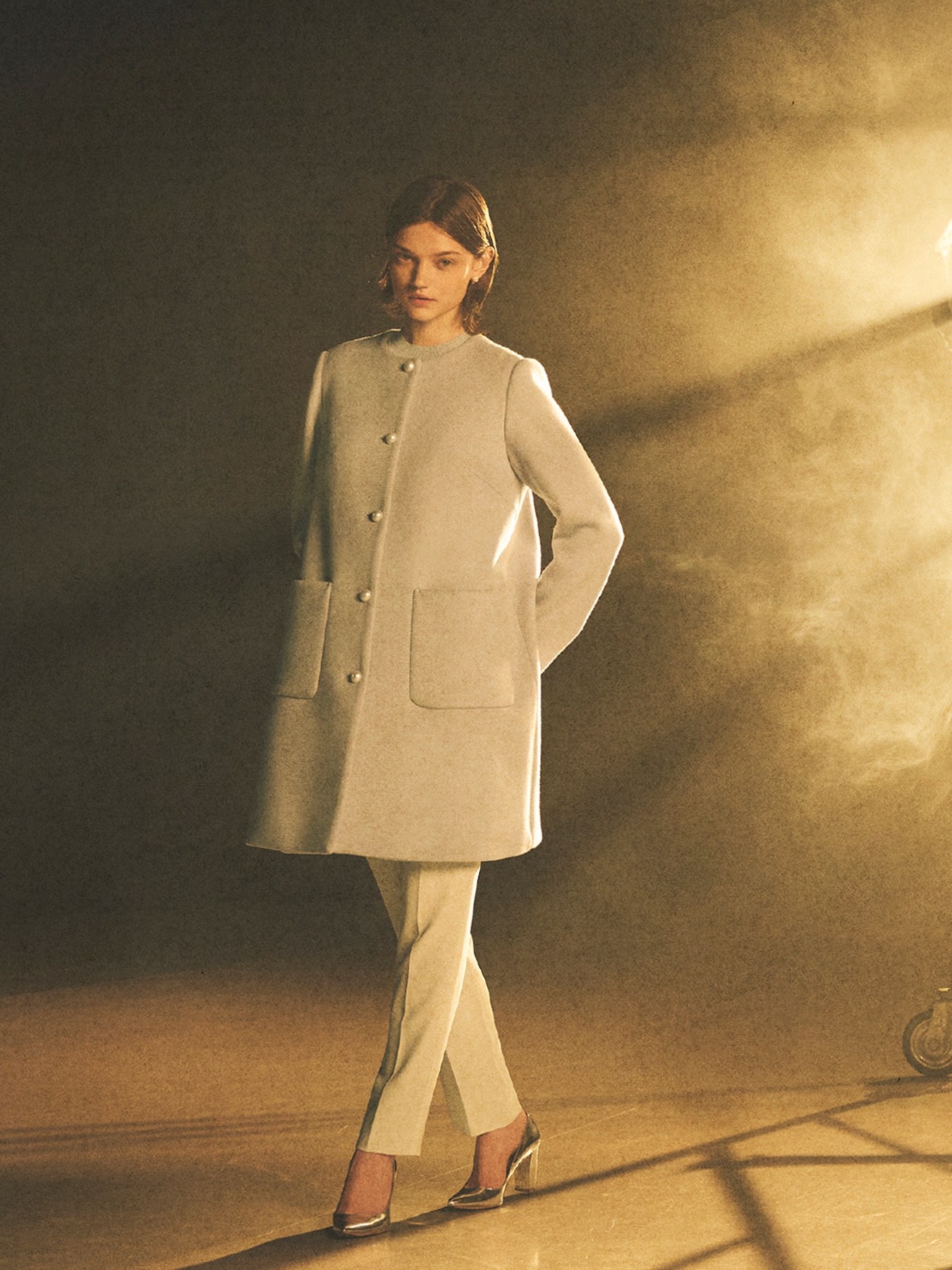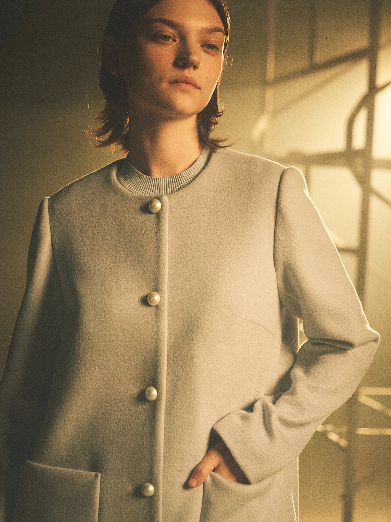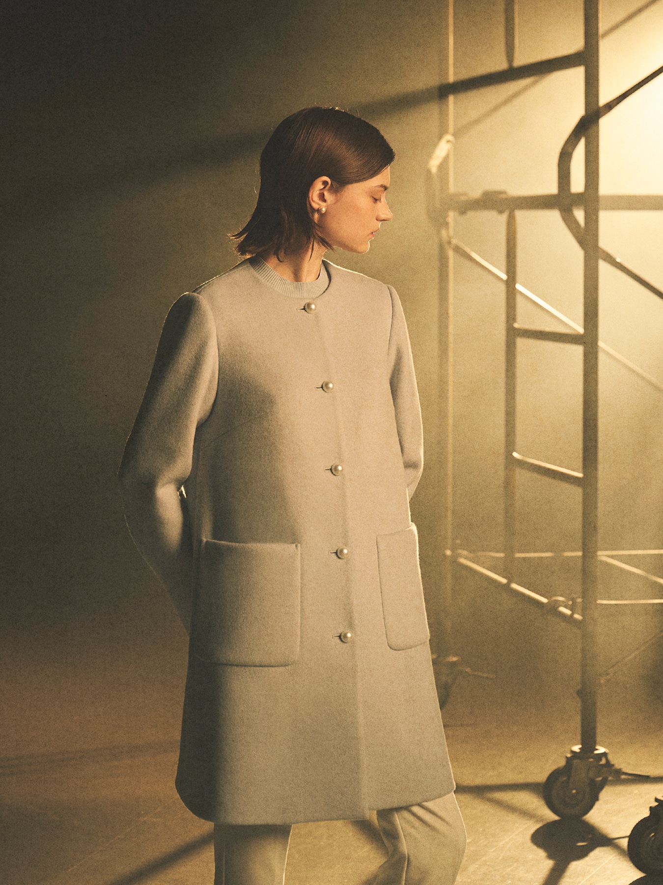 着こなしにしなやかで上質な印象を与えてくれる最高品質を誇るSuper170'sウールビーバー素材を使用し、一枚でラグジュアリーなスタイルを完成させてくれるミドル丈のコート。ふんわりとした膨らみと柔らかな風合いが、纏うだけで洗練された印象を与えてくれます。フロントに施された大き目のパールボタンにはAVENIRETOILEのロゴマークの刻印を入れることで高級感漂い、エレガントさを際立たせるアクセントに。アウトポケットのディテールも都会的な抜け感をプラスしています。ノーカラーデザインなので、ファーアイテムやストールを合わせたアレンジもしやすく、季節感や華やぎをプラスするスタイリングが楽しめるのも魅力。パンツスタイルに合わせれば、スタイリッシュで上品な大人の着こなしに。センタープレスパンツと合わせた通勤スタイルから、ワイドパンツと合わせたリラックス感のあるオフスタイルまで、幅広いシーンで活躍する一枚です。 ・裏地あり ・アウトポケットあり ・内ポケット1つあり ・フロントボタン開き ・スチーム可能 ・重量約1120g ・パールボタン部分にアイロンをあてますと、傷が入る可能性がございますので、ご注意ください。 ・ややゆとりのあるフィット。通常サイズをおすすめします。 【お問い合わせ品番】 S246-013
