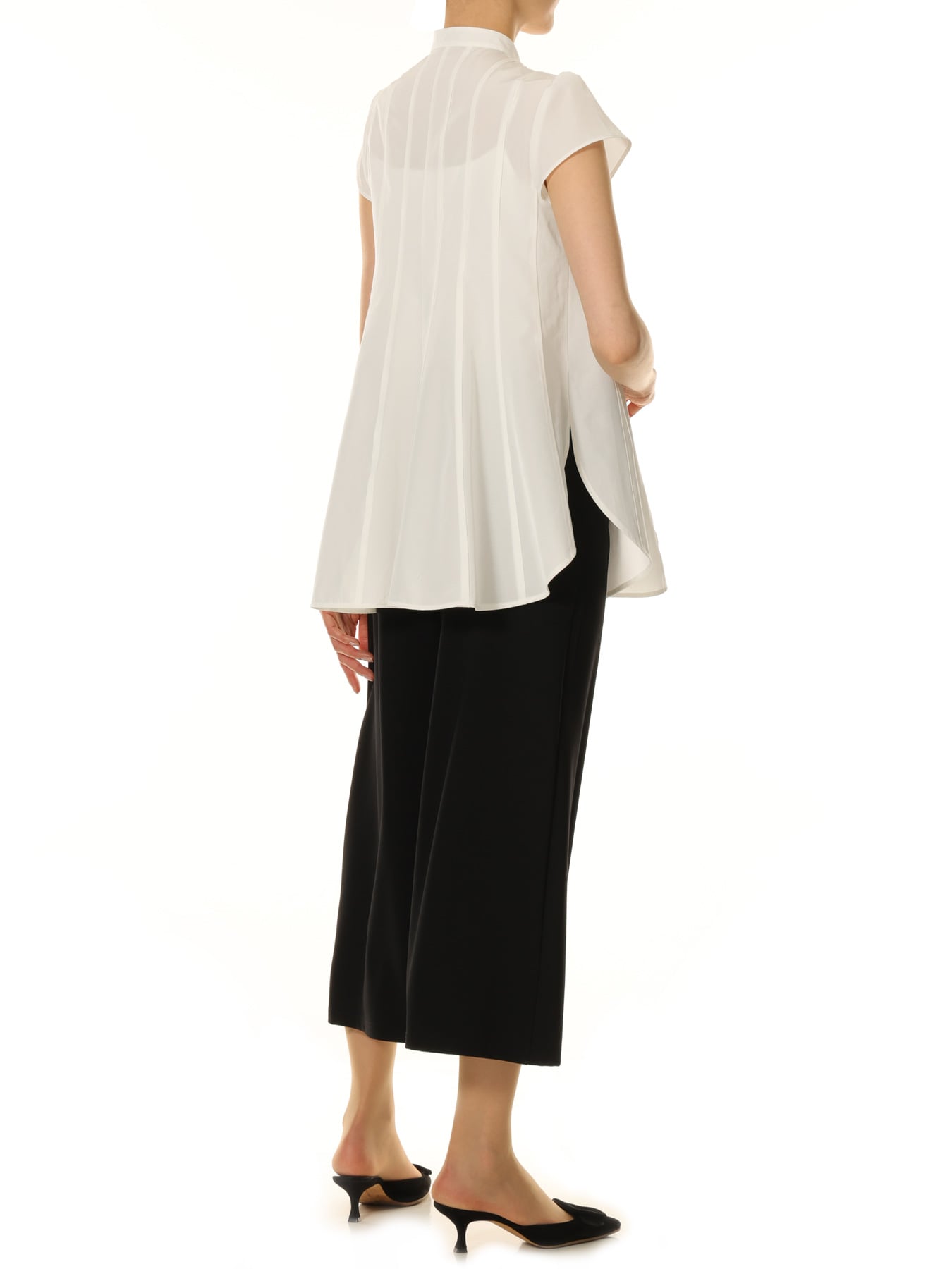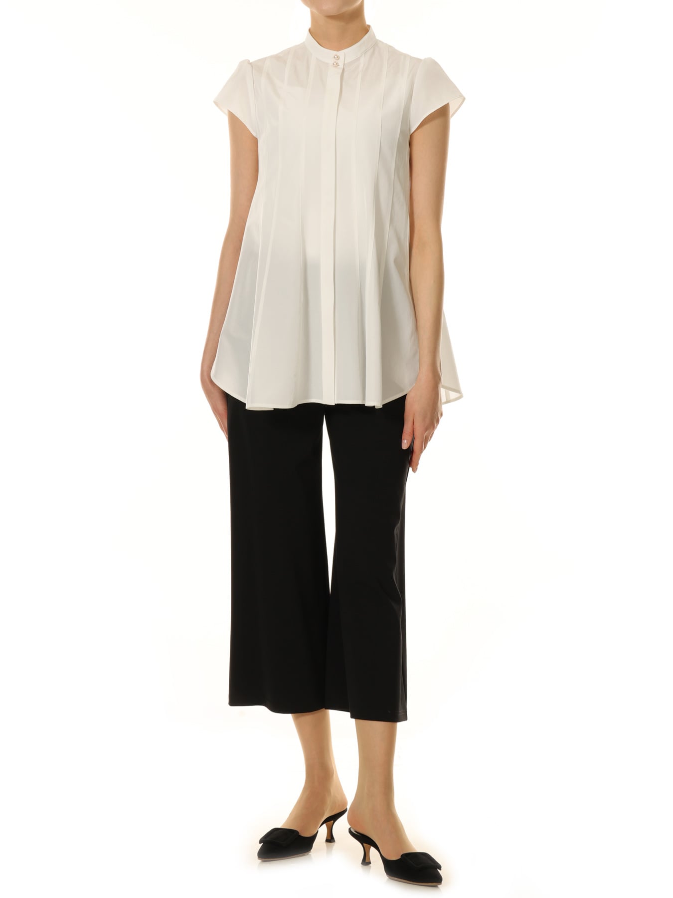 ピンタックデザインキャップスリーブブラウス