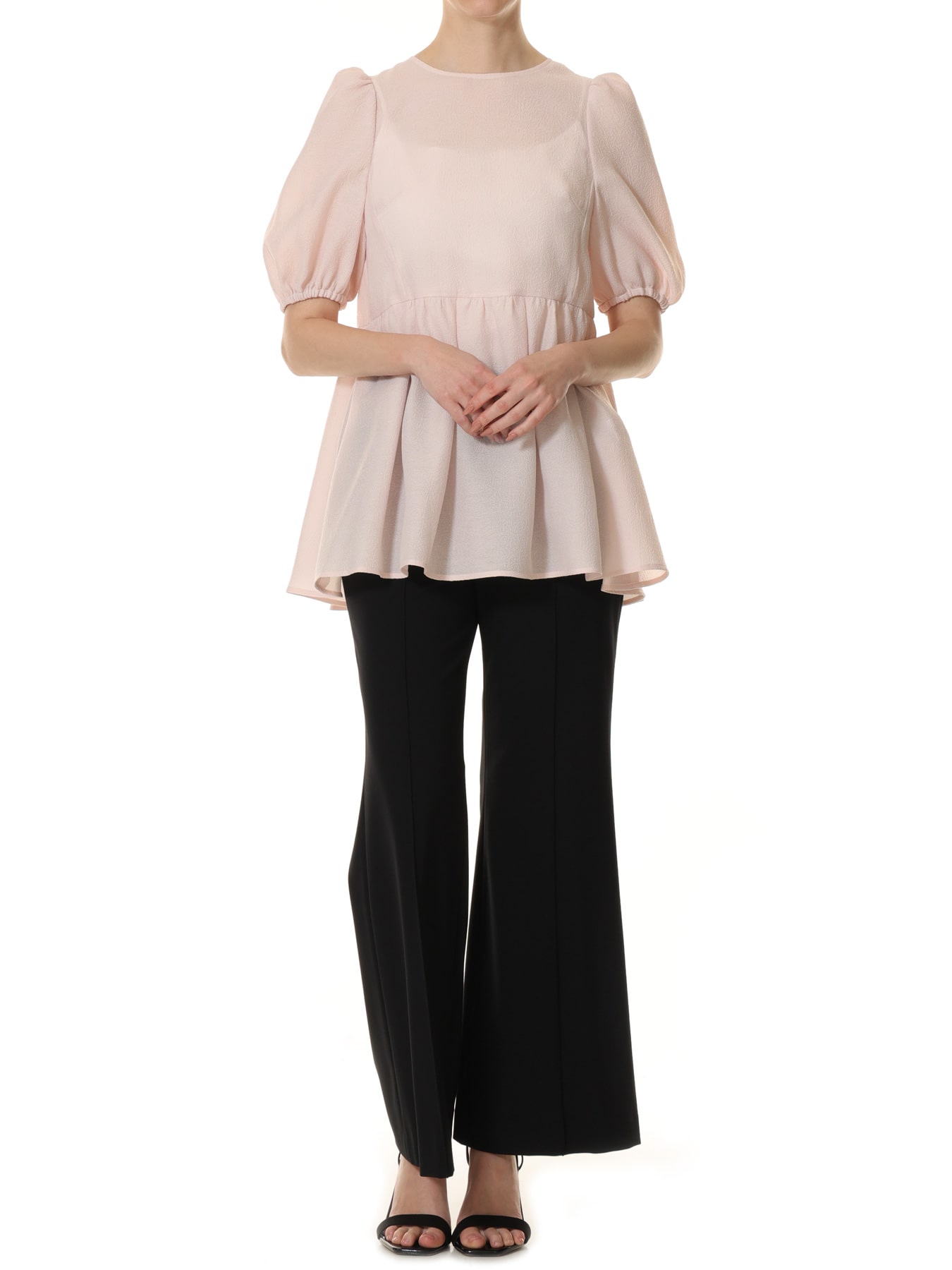 柔らかな肌触りの細かなジャガード素材によって立体感が生まれ柔らかなオーラを振りまくブラウス。切替部分寄せられたインバーテッドタックデザインと、ギャザーによりふわりと膨らみ華やかさを纏います。腰回りをさりげなくカバーしながらもエレガントに魅せてくれるペプラムシルエットは、シンプルなパンツやレギンスに合わせるだけで上品なスタイルが完成します。 ・バックコンシールファスナー開き ・ジャストフィット。通常サイズをおすすめします。 ・スチーム可能ですが、過度なスチームを当てることにより、水分を多く含んでしまうと縮みや波打ちが発生しやすくなりますのでご注意ください。 ・モデル身長171cm/バスト82cm/ウエスト60cm/ヒップ88cm/38サイズ着用 【お問い合わせ品番】 S347-016