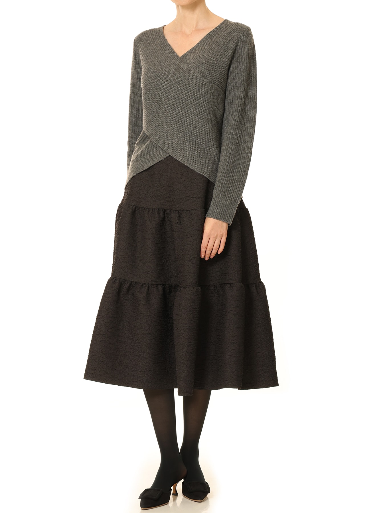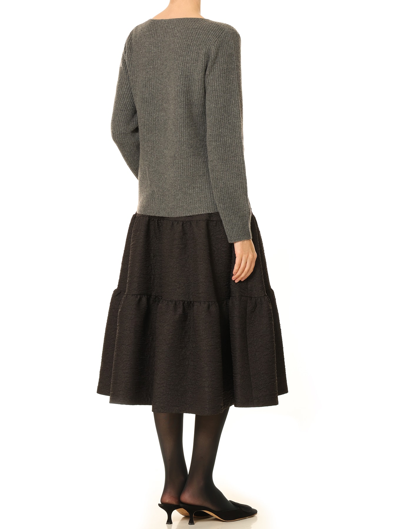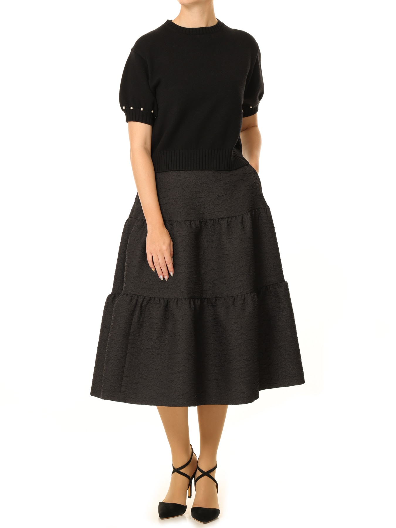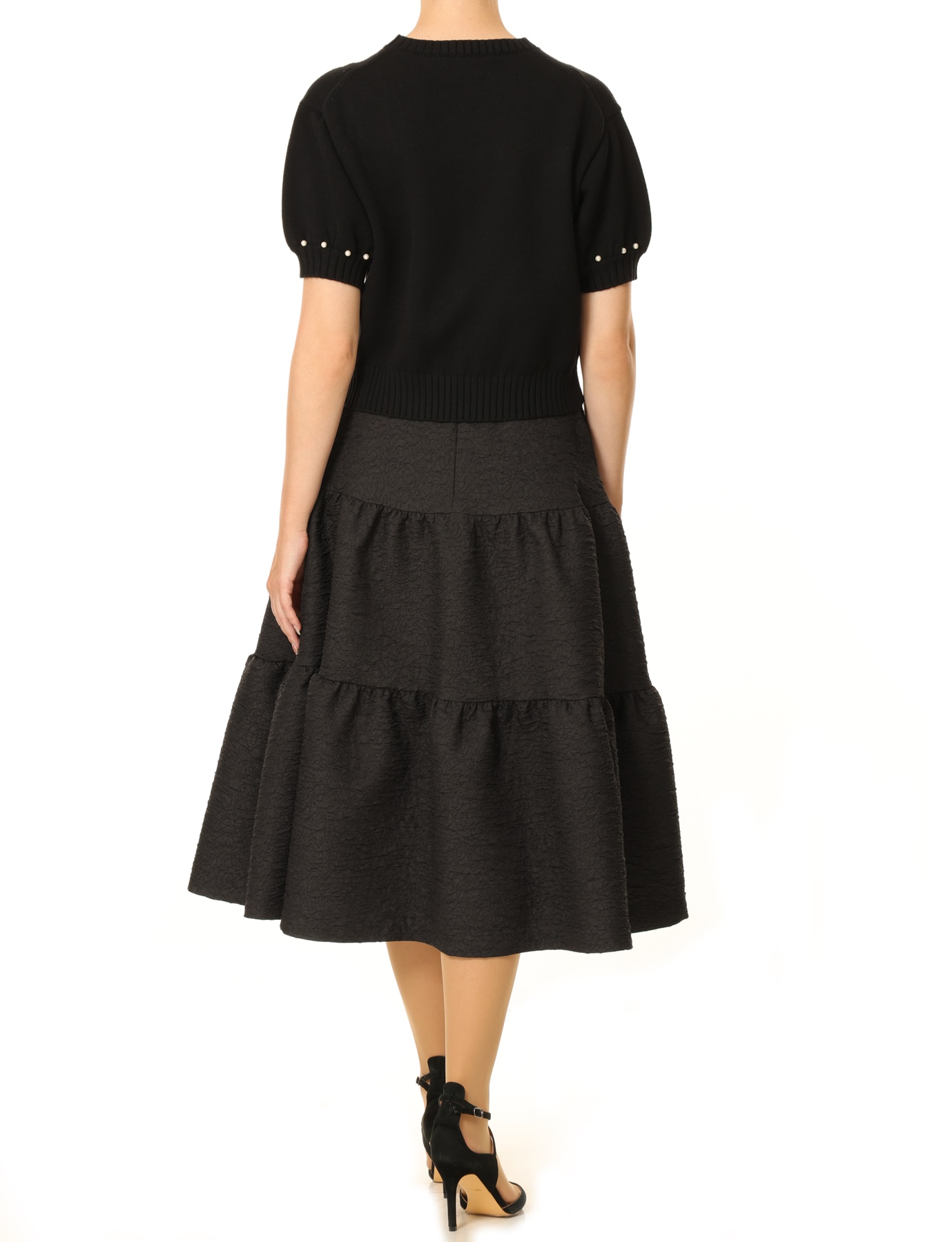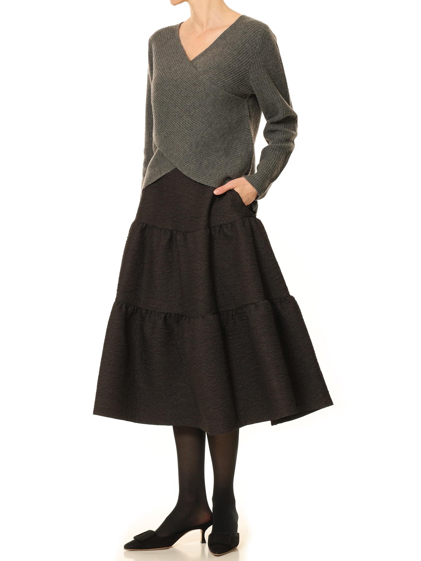美しくエレガントな雰囲気を纏う上質なジャガード生地を贅沢に使用したフレアスカート。程よくハリ感のあるジャガード生地は、ボリュームのあるギャザー切替デザインでも立体的に膨らみ、軽やかな印象を与えてくれます。ウエスト周りはすっきり、裾に向かって大きく広がる女性らしいシルエットが魅力的な一枚です。一枚でスタイリングに華やかさを添えてくれる上質なスカートは、セレモニーシーンやお食事会など様々なシーンに重宝いただけます。 ・裏地あり ・ポケットあり ・バック中心ファスナー開き ・ジャストフィット。通常サイズをおすすめします。 ・モデル身長171cm/バスト82cm/ウエスト60cm/ヒップ88cm/36サイズ着用 【お問い合わせ品番】 S443-015