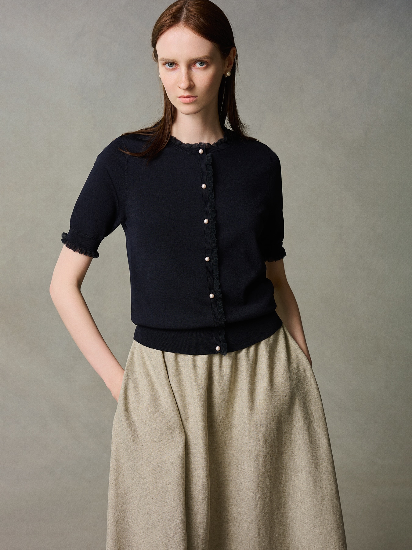 リネン見えするシーズンムードに溢れた素材で仕立てたフレアスカート。天然素材のような自然なムラ感が生み出すナチュラルな表情が魅力で、軽やかさと上品さを兼ね備えた一着です。リネンのようなドライタッチの風合いが春夏シーズンに心地よく、さらりとした軽い着心地で快適にお召しいただけます。シンプルながらも美しく広がるフレアシルエットが、歩くたびに優雅な動きを生み出し、女性らしいエレガントな印象を演出。ウエストは総ゴム仕様にすることでリラックス感のある穿き心地を叶えながらも、すっきりとしたデザインで上品な佇まいに仕上げました。オンシーンでは、コンパクトなニットやブラウスを合わせることで、きちんと感のあるエレガントなスタイルに。シンプルなデザインだからこそトップスを選ばず、ジャケットを羽織ればオフィスにも相応しい端正なコーディネートが完成します。オフの日には、カットソーやリラックス感のあるニットと合わせて、程よく力の抜けた大人のカジュアルスタイルに。サンダルやフラットシューズを合わせれば、軽やかな素材感を活かした春夏らしい装いをお楽しみいただけます。上品さと快適さを兼ね備え、デイリーからお出かけまで幅広いシーンで活躍する一枚です。 ・ご家庭で手洗い可能 ・スチーム可能 ・裏地あり ・ポケットあり ・ウエスト総ゴム ・ジャストフィット。通常サイズをお勧めします。 ・モデル身長171cm/バスト82cm/ウエスト60cm/ヒップ88cm/38サイズ着用 【お問い合わせ品番】 S447-013
