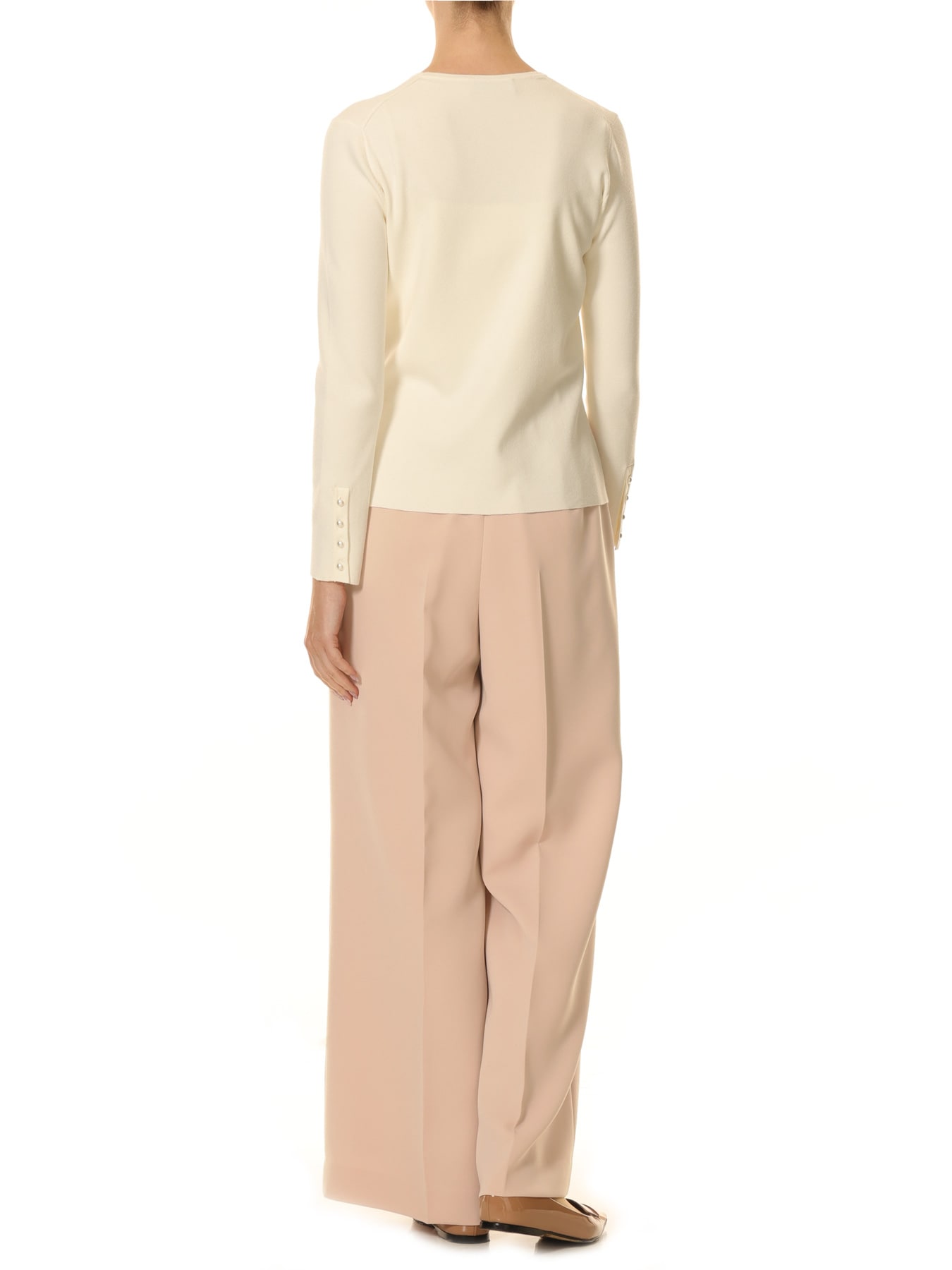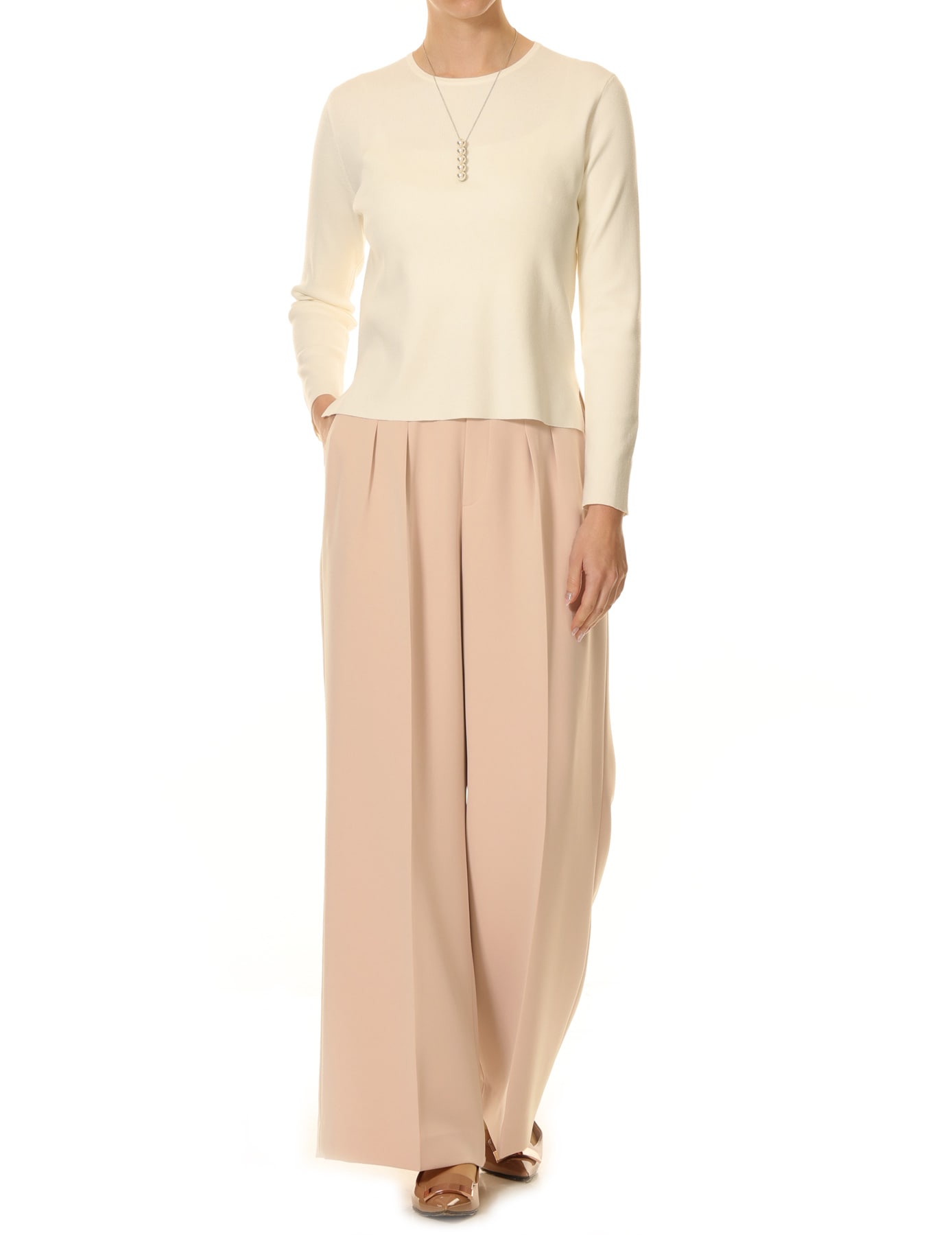 程よい落ち感とドライな質感が魅力のダブルクロス生地を使用したセンタープレスのワイドパンツ。フロントはツータックデザインにすることでトップスインしてもポイントになりながら立体感が生まれ、メリハリのあるスタイルをお楽しみいただけます。ウエストは後ろ部分のみをゴムにすることで正面からはすっきりとした印象に。レッグラインを拾わないストレートワイドシルエットなのでスタイルアップ効果も期待できます。ベーシックなBLACKとほのかな柔らかさを添えてくれるPINK BEIGEの展開で、色違いで揃えてもオンオフに重宝して頂けます。 ・ご家庭で手洗いが可能 ・裏地付き ・淡色は透け感あり ・バックウエストにゴム入り ・スチーム可能ですが、過度なスチームを当てることにより、水分を多く含んでしまうと縮みや波打ちが発生しやすくなりますのでご注意ください。 ・ジャストフィット。通常サイズをおすすめします。 ・モデル身長171cm/バスト82cm/ウエスト60cm/ヒップ88cm/36サイズ着用 【お問い合わせ品番】 S545-002